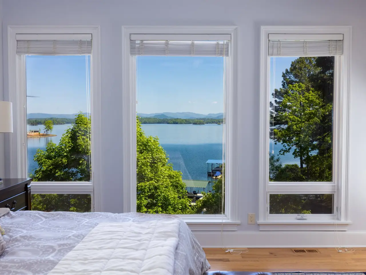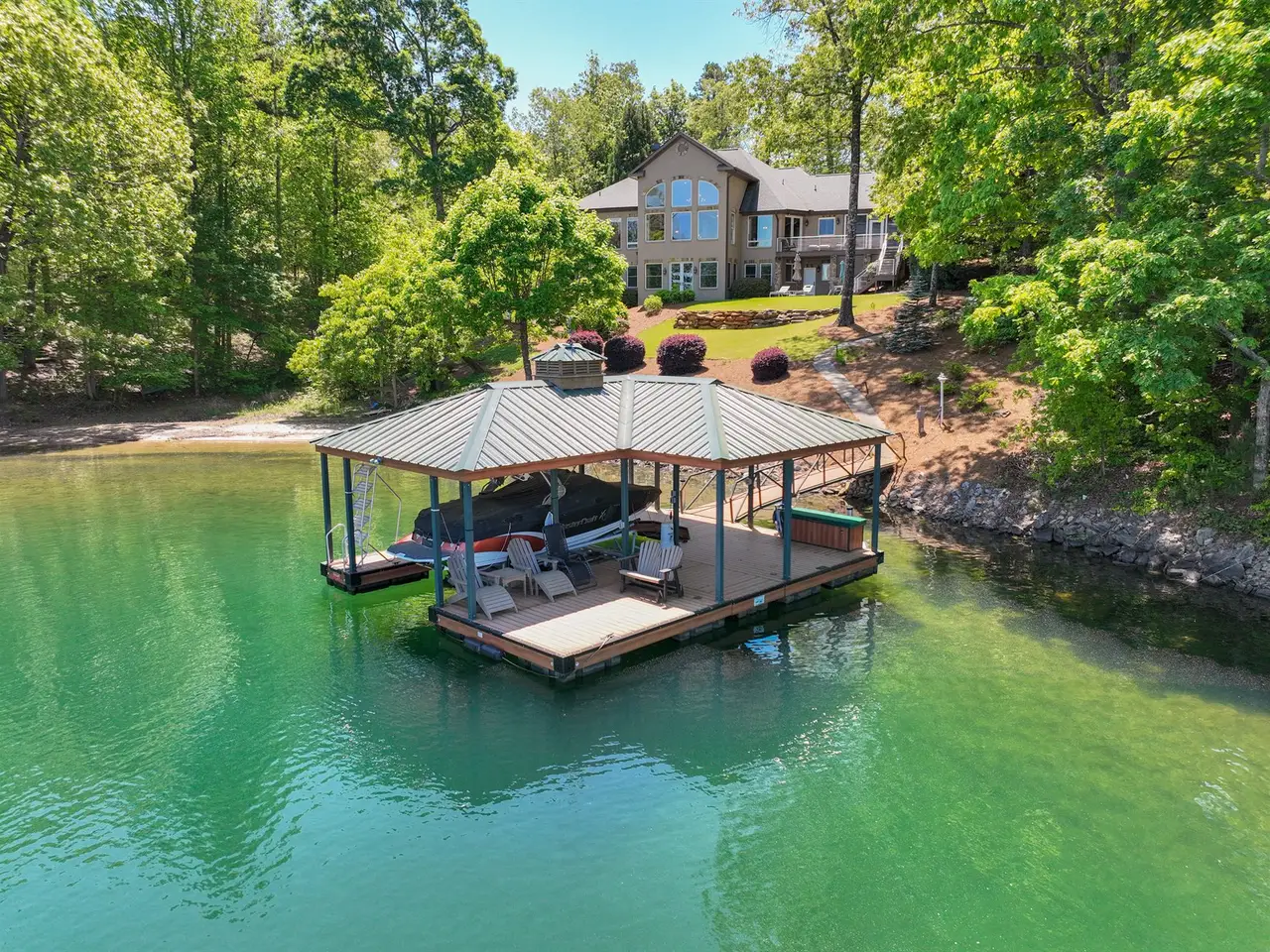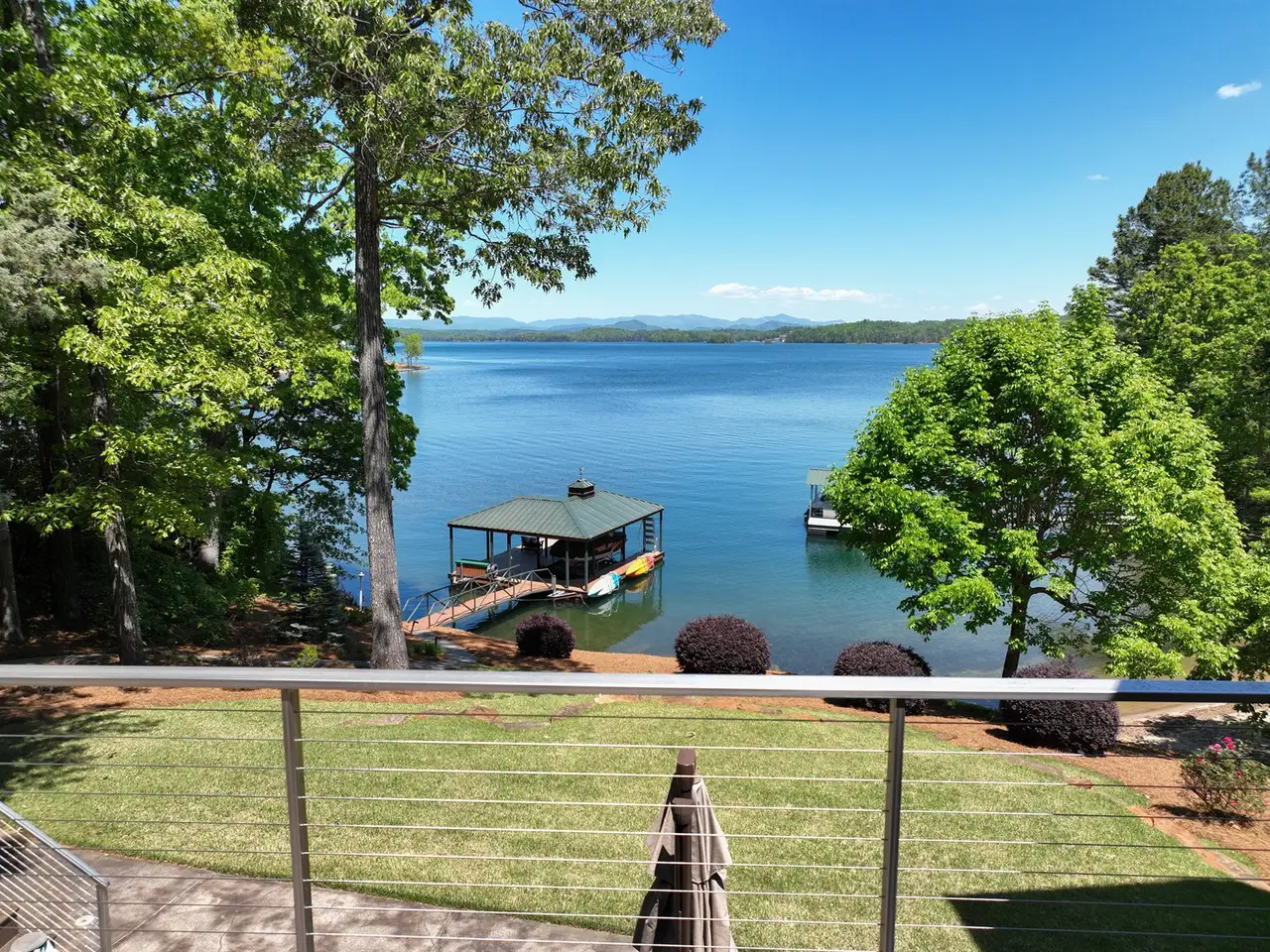 217 E. Wynward Pt.: This beautifully renovated home showcases the view that put Lake Keowee on the map! The 3+ mile water view up the north channel is framed by the iconic layered Blue Ridge Mountains as a backdrop. The current owners completely renovated this home with the help of respected builder Rob Coogan of RJ Coogan Fine Homes in 2017/2018. As you pull into the flat motor court, you're sure to notice the blue water and blue mountains straight through the front door and back windows. The main level is bright and spacious, with great living and entertaining space inside and outside. The kitchen is well appointed with custom walnut cabinetry, a Wolf 6-burner gas cooktop, double wall ovens, microwave, and built in coffee/espresso machine, as well as a SubZero refrigerator, wine fridge and an ice maker. Both the formal and informal dining areas have great views and can accommodate a crowd. The 4-season EZ Breeze screened porch also features a built-in gas grill with exhaust, so you can do your grilling in the shade and enjoy the view or while watching the mounted TV. The primary suite is located on the main level with sweeping views, a private balcony, a beautifully renovated bathroom with a spa tub, walk-in shower, bidet, and large walk-in closet. There's a private office as well on the main level, so you can work from home and spend more time at Lake Keowee! Guests have great bedroom options, including a large guest suite above the 3+ garage and 3 lower level, lakeside bedrooms. Speaking of the lower level, the luxury continues with a large recreation/family room overlooking the lake, a beautiful wine cellar, and an exercise/fitness room. The mechanical/storage space is large and provides easy access to HVAC, central vac, water heaters, and a secondary washer and dryer. The slope to the lake is gentle and leads to a newly installed Kroeger Marine Signature Dock with hip and half roof, Zuri decking, hydraulic Swimeze steps and boat lift, stow-and-go kayak storage, and a matching dock box. The dock sits in deep water and is protected from the main channel boat traffic, which is a rarity for a home with this kind of open water view. This is a home and view that is more impressive in person and sure to please the buyer wanting the best of what Lake Keowee has to offer. In addition, the home is being sold furnished (with the exception of a few personal items and art), so you can start enjoying life at the lake immediately!