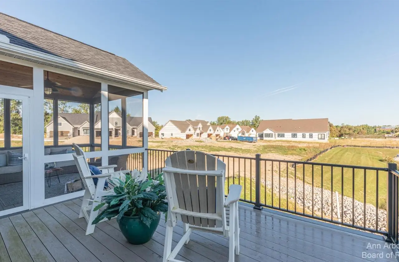 There is still time to customize this gorgeous Belford model on one of the neighborhood's premium walkout sites looking out to nature, grassy meadows, and a stream! This luxurious 4 Bed/3 1/2 bath condominium has a bright and open floor plan to include a gourmet kitchen with Kraftmaid cabinetry, a large pantry, and a huge 9.9'x3.4' center island overlooking the showstopping great room with vaulted ceiling, walls of windows, a gas fireplace, and a door off of the dining area leading out to the screened Azek deck with infrared heating and an 12x12 Azek deck--beautiful! The 1st floor primary bedroom suite has a private bathroom with granite countertops, dual sinks, a linen closet, a walk in closet, and a spa sized fully tiled shower with bench and glass Euro door. Additional main floor features include a half bath with pedestal sink, a laundry room with sink and tile flooring, a bench off of the family entry from the attached 2 car garage, and a nicely sized study/flex room. Upstairs you a greeted with a loft looking down to the great room, two additional bedrooms, a full bathroom with bath/tub combo and tile flooring, and a media room. The finished walkout lower level (657 sq.ft. is still unfinished for incredible storage space) has a recreation room with impressive kitchenette with an island--great for entertaining, the 4th bedroom, and a full bathroom with tile flooring and shower. Gallery Pointe is a community like none other...luxurious, fully customized (no two homes are alike on the inside), each building has a unique color with special touches to it's design, and the location can't be beat--close to both Downtown Saline and Ann Arbor but with low township taxes. Walk to school or bike over to the Border to Border Trail which is nearby. Sidewalks, streetlights, and even a charming raised garden bed and dog play areas that are fully fenced.