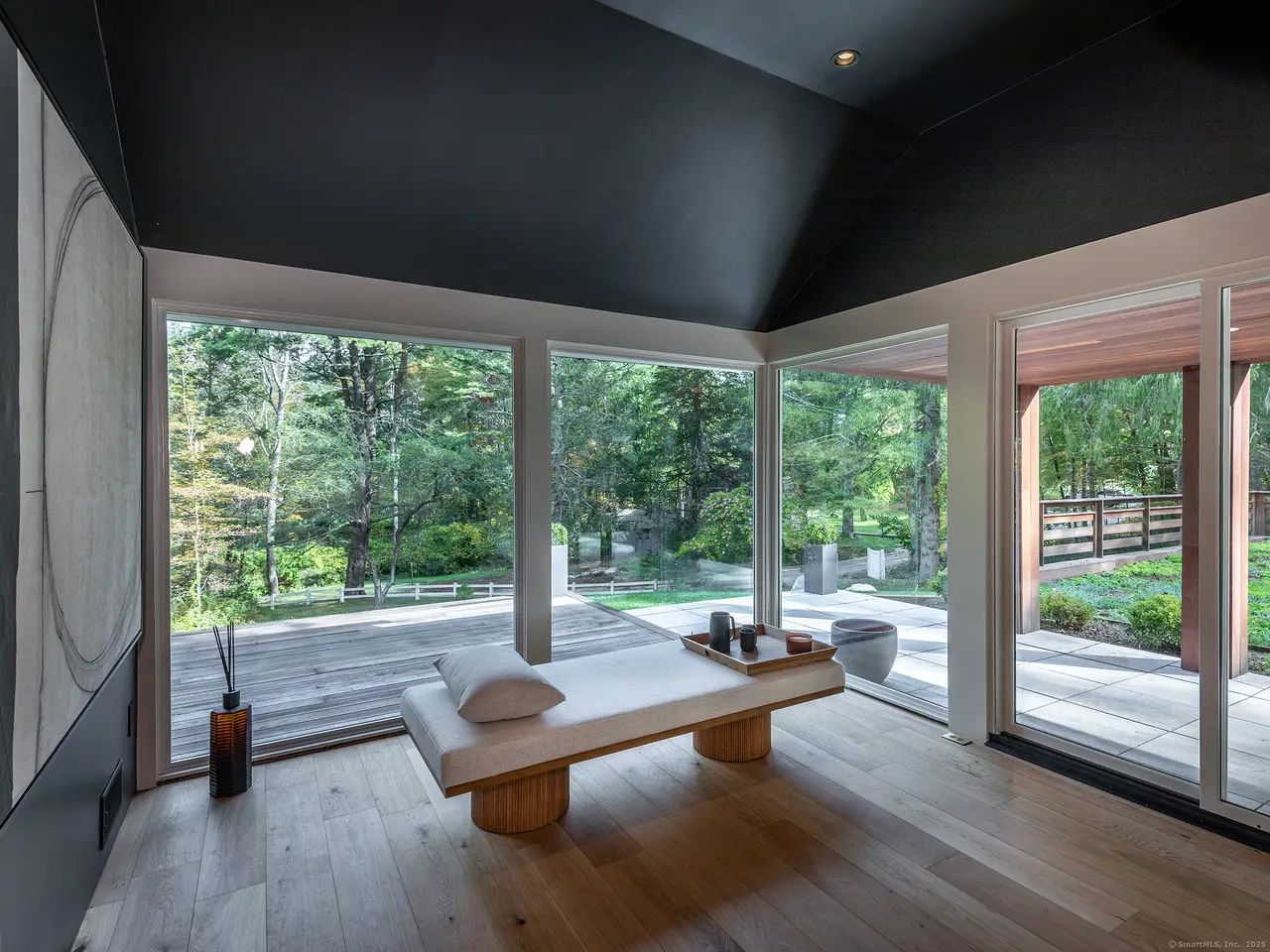 Modern Lakeside Retreat with Guest Cottage and Rooftop Terrace. Where modern European design meets the soul of New England living - welcome to this stunning, fully renovated lakeside property, composed of a sophisticated main residence, a stylish guest cottage, and a three-car garage with a rooftop garden terrace ideal for entertaining. Designed by a visionary European team, the main house features distinctive tile siding-both weather- and time-resistant-and a warm, modern aesthetic. Inside, expansive glass panels and oversized windows flood the space with light and frame views of nature from every room. At the heart of the home is the grand living room, where a soaring double-height river stone fireplace and custom oak bookcase create a breathtaking focal point. Just before the living room, an all-glass sunroom-connected by an elegant glass pocket door-offers the perfect flexible space for dining, a home office, or peaceful meditation. The modern-designed kitchen features glass and stone finishes and top-tier Gaggenau appliances.. Step outside to enjoy the wraparound deck and series of patios, all thoughtfully positioned to connect the home to its natural setting and maximize indoor-outdoor living. A sitting room reveals a beautiful private terrace overlooking the lake Wononscopomuc. The fully renovated guest cottage offers a bright open floor plan, a very large kitchen, and a spacious bedroom. Car enthusiasts will appreciate the five-car garage, while the grassy rooftop terrace above provides a stunning setting for outdoor gatherings, yoga, or sunset cocktails. Nestled in nature, yet just a short walk from downtown Lakeville, the town beach, and local restaurants.