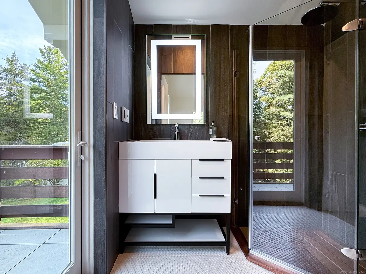 Expansive glass panels with views of nature