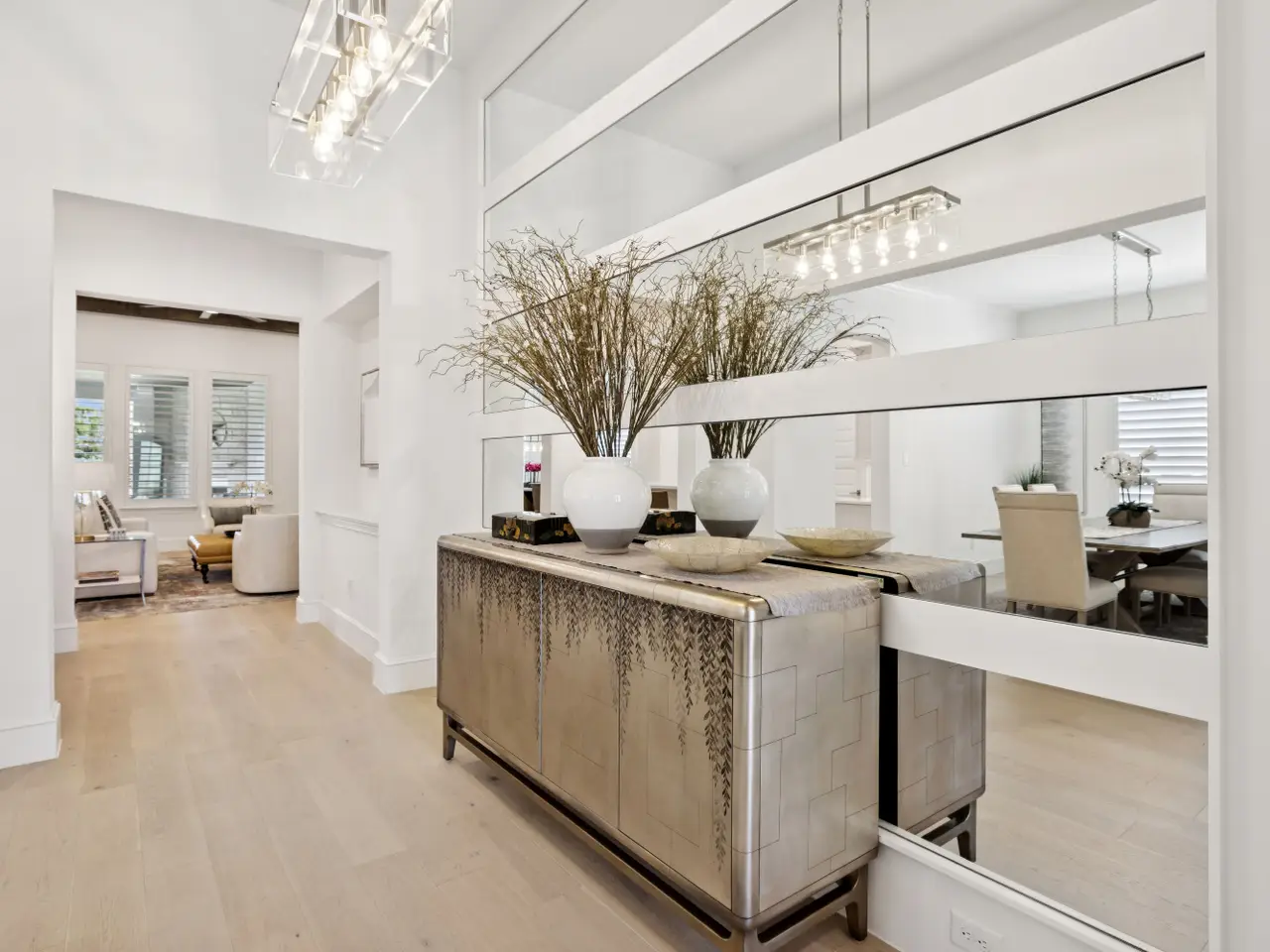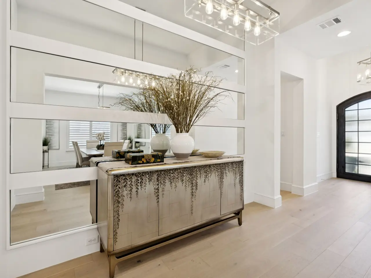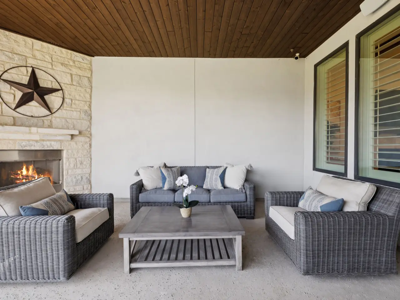 Step into modern luxury in the exclusive gated community of Palacios at Cibolo Canyons where timeless elegance meets modern convenience. Bathed in natural light, this home greets you with wide-plank wood floors, soaring ceilings, and an effortless flow designed for both refined entertaining and everyday living. A stately study with custom built-ins offers the perfect retreat, while the expansive kitchen is a chef’s dream - featuring stainless steel appliances, a six-burner gas stove with griddle, and a WiFi-controlled oven. The kitchen opens to a striking dining space, complemented by a large wet bar and floor-to-ceiling mirrors, creating a setting that feels equal parts chic and inviting. The primary suite is a sanctuary, showcasing a spa-inspired bathroom with dual vanities and an oversized walkthrough shower. The space leads out to a small garage that could easily be turned into a home gym. Three spacious secondary bedrooms, each with its own ensuite, ensure privacy and comfort for family or guests. A private media room completes the home-ideal for movie nights or game-day gatherings. Step outside on the back porch for an evening by the fire and outdoor kitchen. This home isn't just beautiful, it's built smart - with energy-efficient foam insulation and water-saving low-flow fixtures blending sustainability with sophistication. Enjoy two amenity centers, two adult pools, a kiddy pool with a splash pad and lazy river, fitness center, event space, and miles of paved walking/biking trails. Only one mile from the JW Marriott & TPC San Antonio and only two miles from restaurants and shopping. Come see what this beautiful home and community have to offer!