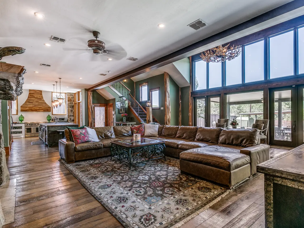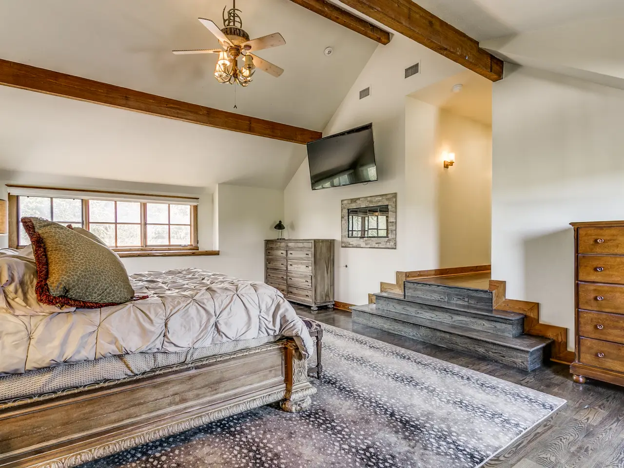 Discover this striking custom-designed home nestled on a sprawling lot in the coveted community of Terrell Hills. The expressive stone exterior sets the stage for the exquisite craftsmanship found inside. Step into a grand interior featuring soaring ceilings with exposed beams, walls of windows that bring in abundant natural light, and rich wide-plank wood flooring. The impressive culinary kitchen is a chef's dream, boasting a commercial-grade gas stove, a stunning wood-detailed vent hood, a spacious gathering island, chic open shelving, and a large walk-in pantry. Designed for effortless entertaining, the kitchen seamlessly flows into the living and dining areas, anchored by dual-sided stone fireplaces that add warmth and elegance. The main level offers three spacious bedrooms, while the primary suite occupies the upper level, showcasing a vaulted ceiling, a cozy fireplace, and a luxurious spa-inspired bath with a soaking tub, walk-in shower, dual vanities, and an expansive walk-in closet. Ascend to the third-floor office or fitness room, which opens to a private balcony offering breathtaking city views. Step outside to the covered patio, perfect for year-round enjoyment, overlooking a private, beautifully landscaped yard with mature trees. This one-of-a-kind property is a true retreat, offering both style and serenity. Possibility exists to pay tuition to attend Alamo Heights Schools. Contact AHISD for more details.