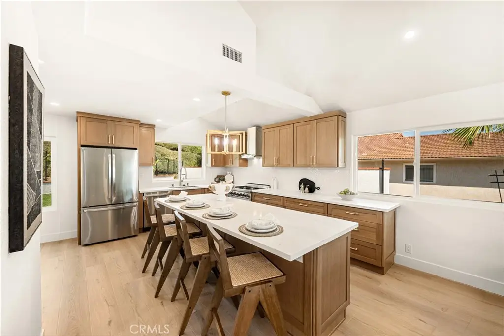 BEAUTIFULLY UPDATED! New kitchen, bathrooms, flooring and fixtures throughout. As you enter the home you are greeted by soaring cathedral ceilings and an open concept floorplan. You walk into the formal living room from the front door and can see the open concept kitchen with large island that seats 4 people. New stainless steel appliance and oak colored shaker cabinets adorn the gorgeous kitchen. The new quartz counter tops and gold faucet and fixtures further enhance the look of your new kitchen. New luxury vinyl plank flooring extends throughout the home as well. The bathrooms all feature new vanities and tiled showers. House has been repiped in PEX, and roof was redone in 2023. Fresh new grass expands from the front yard to the backyard and new plants and sprinkler system are included too!