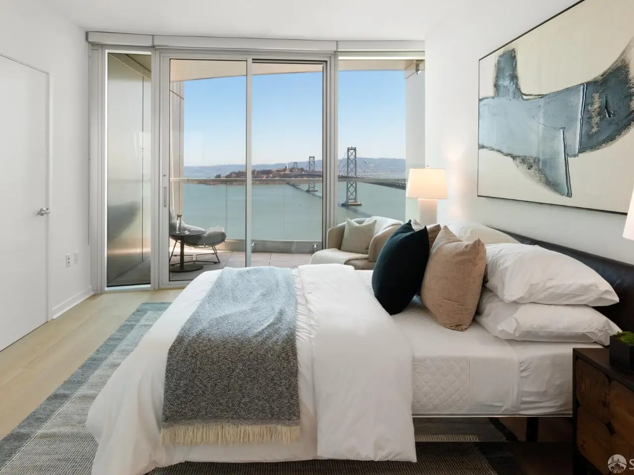 Experience luxe high-rise living in this exceptional 3 bedroom, 2 bath home with sweeping views of the Bay, Bay Bridge, and sparkling City skyline. The formal entrance is a perfect gallery to showcase art and leads to an expansive living area surrounded by floor-to-ceiling windows framing breathtaking views of the Bay Bridge and beyond. Open to the living and dining areas, the chef's kitchen is outfitted with Studio Becker cabinetry, Thermador and Bosch appliances, stone countertops, and a custom island with bar top. New hardwood flooring runs throughout the living space, while custom window treatments provide both light control and privacy. Primary suite with custom walk-in closet and a spa-inspired bath with dual vanities, walk-in shower, soaking tub, and stunning skyline views. Secondary bedrooms enjoy awe-inspiring Bay Bridge views and easy access to the adjacent full bath. Also incl. central A/C, in-unit washer/dryer, built-in speakers and garage parking for 2 cars with EV charger! Infinity's world-class amenities incl: 5,000 sq ft gym, 75-foot indoor pool and spa, sauna, private theater, business center, conference rooms, club lounge w/catering kitchen and bar, outdoor fire pits, 24-hour concierge and security.