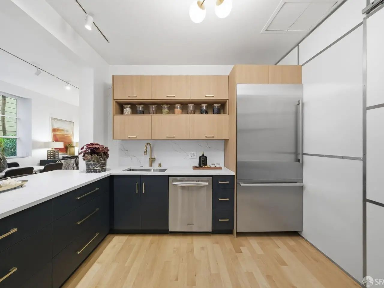 If you love the energy of a loft but dream of living in Noe Valley, this exceptional garden residence offers the best of both worlds. Set amid lush greenery, this tranquil urban oasis features expansive windows framing verdant garden outlooks of your deeded yard, creating a seamless connection between indoor comfort and outdoor serenity. The open-concept floor plan showcases unobstructed sightlines, refined finishes, and a flexible sleeping area. The designer kitchen is beautifully appointed with new custom cabinetry, quartz countertops, a Thermador refrigerator, and an industrial-style range perfect for the discerning home chef. An inviting dining area and generous living space provide an elegant setting for entertaining, complemented by abundant built-in storage. The updated bath is finished with quartz counters and modern cabinetry, while a spacious walk-in closet offers exceptional storage. Additional highlights include a Murphy bed for guests, a powder room, in-unit laundry, and dedicated storage units in the garage. Just outside is your private, deeded garden an idyllic retreat perfect for morning coffee or an afternoon in the sun. One-car parking completes this rare and stylish offering in one of San Francisco's most desirable neighborhoods.