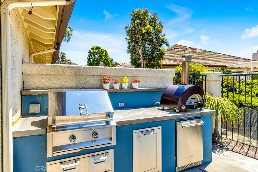 Hear the Mission Bells and enjoy the cool Coastal Breezes from this upgraded 3 bed | 2 bath + loft townhome in the sought-after community of Mesa Vista in beautiful San Juan Capistrano. Ideally situated in a private, interior location, this home lives like a single level with all the bedrooms on the main floor and a spacious, flexible layout throughout. Step through the gated front courtyard into an open living area filled with natural light and accented with a gas fireplace and tile floors. Sliding glass doors lead to a beautifully landscaped wraparound patio with golf course, city lights, and Mission views--perfect for indoor/outdoor living. Custom built outdoor kitchen and grill area includes a stainless gas barbecue, refrigerator and custom drawers and makes this back yard a perfect place to entertain. Spacious, comfortable and with room for multiple seating areas, it is the perfect spot to enjoy sunset views looking out to the historic San Juan Capistrano Mission. The interior kitchen is upgraded with granite countertops, wood cabinetry, recessed lighting, tile flooring and at counter seating and is open to the eating nook with patio access. Separate dining room offers the perfect entertaining area or it can be an ample flex space for more modern use of space. All 3 bedrooms are located on the main floor which allows for ultimate single level living. Main-floor primary suite offers a private patio and a renovated en-suite bath with step-in shower, custom vanity, tile flooring, and walk in closet. Two secondary bedrooms are large enough for queen sized beds and a large loft provides space for guests, a home office, or bonus area. Other highlights include an attached 2-car garage with direct access, garage overhead storage, washer and dryer, newer air conditioner (2023), furnace (2023), newer window shades (2023), modern light fixtures (2025), bathroom fixtures (2025), newer interior paint and carpets (2022). Nestled in the rolling hills of historic San Juan Capistrano, Mesa Vista offers 3 pools/spas, and optional RV parking. Enjoy the lifestyle this home offers being just minutes away from award-winning schools, shopping, hiking trails, world-class beaches, fine dining, equestrian facilities, golf courses, and the charming downtown area. All this and easy freeway access! WELCOME HOME!