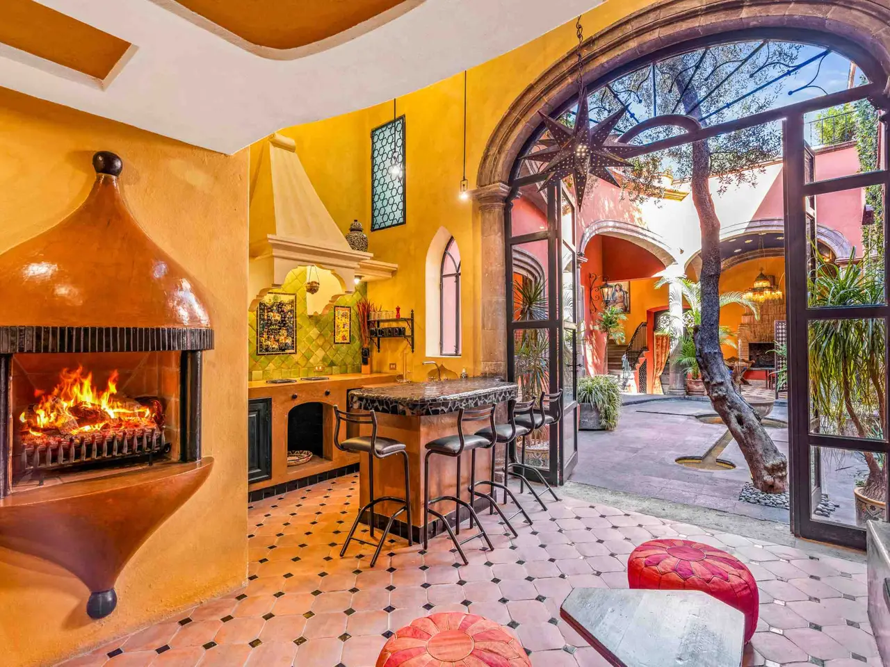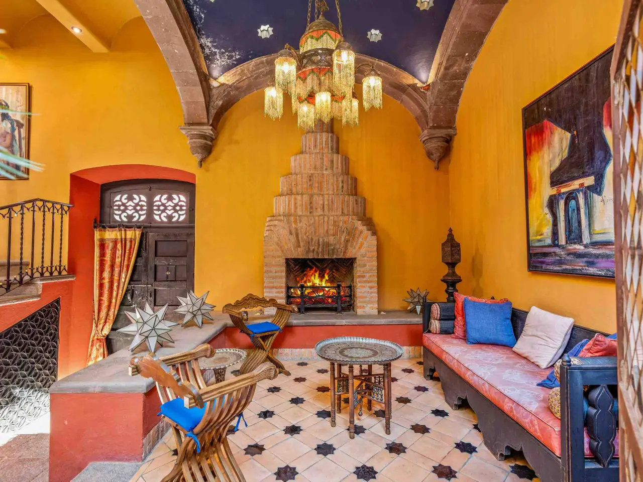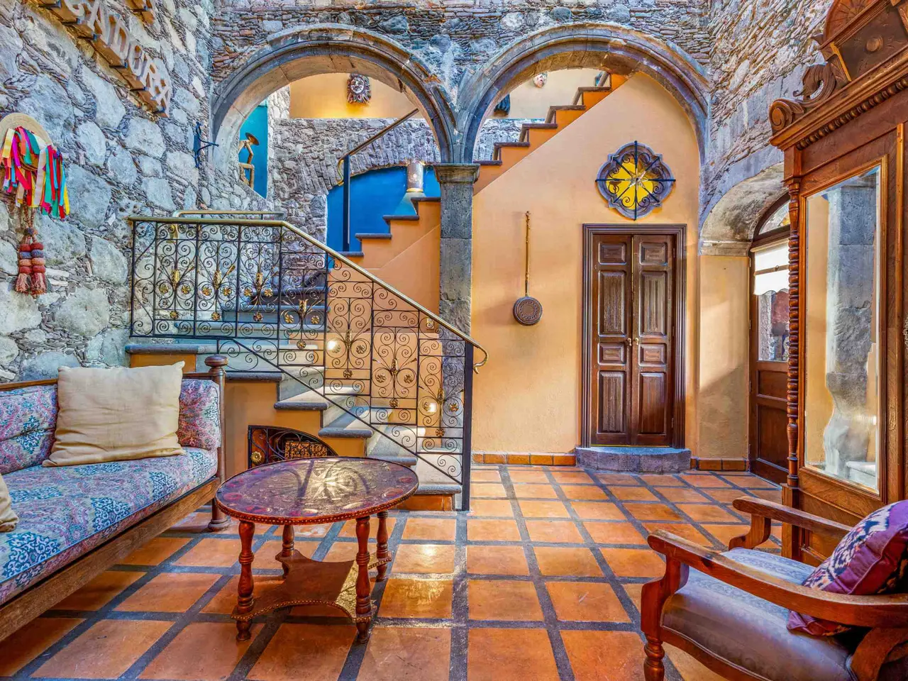 Discover a Legacy in the Heart of San Miguel de Allende Located in the dynamic Centro Histórico of San Miguel de Allende, Casa de la Espiga and Casa de las Estrellas offer a rare opportunity to own a piece of the town’s history. Built in 1717, Casa de la Espiga was once one of the first bustling bakeries in San Miguel de Allende, and its original stonework, arches, and bakery sign still bear witness to its storied past. Casa de la Espiga: Colonial Elegance with Modern Comforts Main House Highlights: Courtyard Sanctuary: Step into a classic colonial courtyard adorned with bougainvillea and centered around an antique fountain, evoking a timeless hacienda atmosphere. Library Room: Features a mezzanine with handmade bookshelves, a cozy office space, a cantera gas fireplace, and modern mini-split air conditioning. Living Room: An expansive space with a grand cantera fireplace and antique furnishings that blend seamlessly with the home’s historic character. Dining and Kitchen: Stone-carved arches and antique chandeliers. Hand-painted Mexican tiles paired with modern, chef-grade amenities. A bright, inviting space filled with natural light. Master Suite: French doors opening to a private patio. A harmonious blend of historical charm and luxurious comfort. Original bakery details, including the preserved stone bakery sign and intricate arches. Rooftop Terrace: Private ensuite guest bedroom with a bathtub. Jacuzzi with panoramic views of the Guanajuato mountains and San Miguel landmarks. Outdoor seating and a BBQ grill for al fresco dining. The Guest house: Casa de las Estrellas Attached to Casa de la Espiga, this guest house is an architectural gem, blending Moorish design with San Miguel’s vibrant spirit: Reception area reminiscent of Arabian tales, complete with beaded chandeliers and intricate skylights. Open-plan living spaces adorned with hand-painted mosaic tiles and expansive water features. Mezzanine level offering additional lounging or creative space. Rooftop ensuite guest room with breathtaking views and an expansive rooftop terrace. Prime Centro Location: Located in the heart of San Miguel de Allende, Casa de la Espiga offers enviable walking distance to boutiques, art galleries, and world-class restaurants, as well as an authentic connection to San Miguel’s rich architectural and cultural heritage. Contact us today to explore this one-of-a-kind property and claim your place in San Miguel de Allende's cherished history.