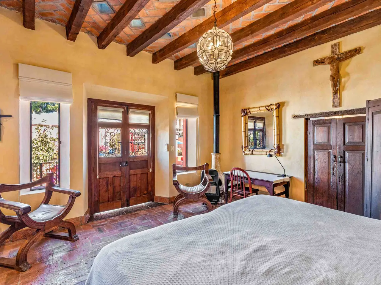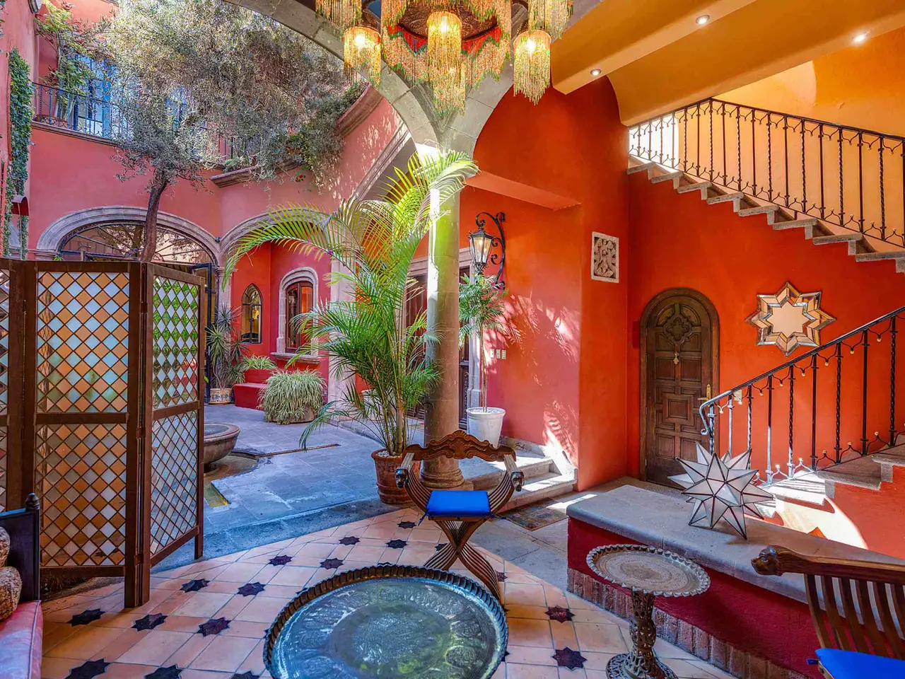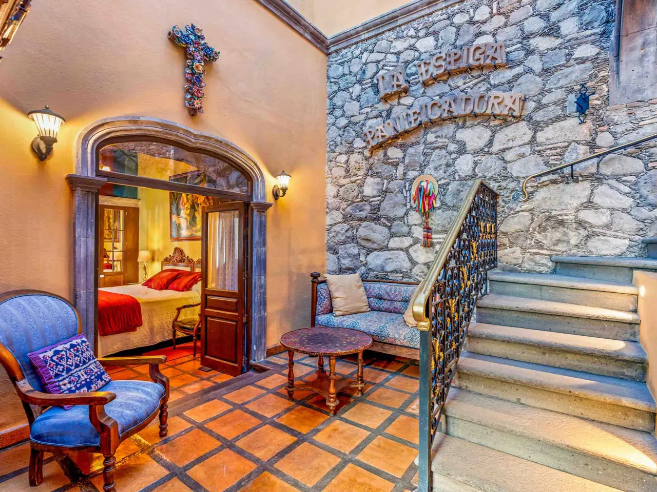 Discover a Legacy in the Heart of San Miguel de Allende Located in the dynamic Centro Histórico of San Miguel de Allende, Casa de la Espiga and Casa de las Estrellas offer a rare opportunity to own a piece of the town’s history. Built in 1717, Casa de la Espiga was once one of the first bustling bakeries in San Miguel de Allende, and its original stonework, arches, and bakery sign still bear witness to its storied past. Casa de la Espiga: Colonial Elegance with Modern Comforts Main House Highlights: Courtyard Sanctuary: Step into a classic colonial courtyard adorned with bougainvillea and centered around an antique fountain, evoking a timeless hacienda atmosphere. Library Room: Features a mezzanine with handmade bookshelves, a cozy office space, a cantera gas fireplace, and modern mini-split air conditioning. Living Room: An expansive space with a grand cantera fireplace and antique furnishings that blend seamlessly with the home’s historic character. Dining and Kitchen: Stone-carved arches and antique chandeliers. Hand-painted Mexican tiles paired with modern, chef-grade amenities. A bright, inviting space filled with natural light. Master Suite: French doors opening to a private patio. A harmonious blend of historical charm and luxurious comfort. Original bakery details, including the preserved stone bakery sign and intricate arches. Rooftop Terrace: Private ensuite guest bedroom with a bathtub. Jacuzzi with panoramic views of the Guanajuato mountains and San Miguel landmarks. Outdoor seating and a BBQ grill for al fresco dining. The Guest house: Casa de las Estrellas Attached to Casa de la Espiga, this guest house is an architectural gem, blending Moorish design with San Miguel’s vibrant spirit: Reception area reminiscent of Arabian tales, complete with beaded chandeliers and intricate skylights. Open-plan living spaces adorned with hand-painted mosaic tiles and expansive water features. Mezzanine level offering additional lounging or creative space. Rooftop ensuite guest room with breathtaking views and an expansive rooftop terrace. Prime Centro Location: Located in the heart of San Miguel de Allende, Casa de la Espiga offers enviable walking distance to boutiques, art galleries, and world-class restaurants, as well as an authentic connection to San Miguel’s rich architectural and cultural heritage. Contact us today to explore this one-of-a-kind property and claim your place in San Miguel de Allende's cherished history.