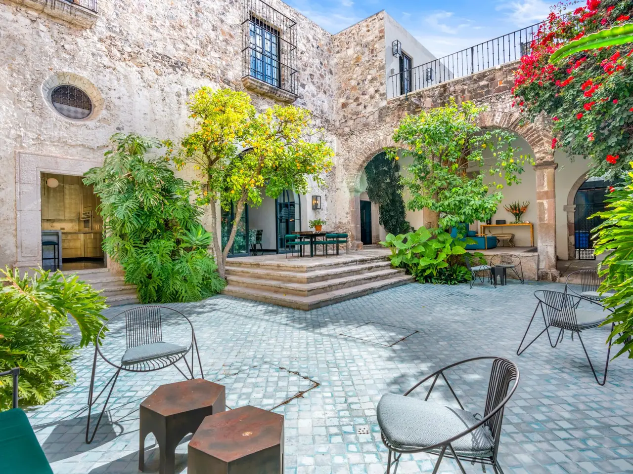 Villa Garita: A Historic Jewel in the Heart of San Miguel de Allende Experience the pinnacle of luxury living at Villa Garita, a masterfully restored historic property nestled in the heart of San Miguel de Allende’s enchanting Centro Histórico. Designed by renowned interior designer Rachel Horn, this exquisite Colonial treasure exudes elegance and sophistication, blending timeless architectural details with modern comforts. Boasting five spacious bedrooms and five-and-a-half bathrooms, Villa Garita captivates with its soaring ceilings, intricate architectural features, and impeccable attention to detail. The expansive verdant courtyard, complete with a charming water feature, sets the tone for serenity, while the multiple outdoor spaces invite relaxation and refined entertaining. The chef’s kitchen is a culinary masterpiece, equipped with state-of-the-art appliances, silver-leaf cabinets, and luxurious marble countertops. For wellness enthusiasts, an exercise studio with views of the lush back garden provides the perfect retreat. The property’s thoughtfully designed living spaces include formal living and dining areas, a cozy den, and a spacious media room located at the heart of the home. Whether hosting a lively gathering or enjoying a quiet evening, these spaces cater to every occasion. Upstairs, the five beautifully appointed bedrooms offer privacy and comfort. Three feature en suite bathrooms, while the remaining two share a stylishly designed bathroom. The crown jewel of Villa Garita is its rooftop terrace, offering panoramic views of San Miguel’s iconic churches—a perfect spot to enjoy breathtaking sunsets or festive celebrations. Step outside into the lush rear garden, where a sparkling swimming pool awaits alongside a fully equipped indoor/outdoor living room. This inviting space features a sitting area, fireplace, full bathroom, wet bar, and game area, making it ideal for year-round enjoyment. A true oasis in the heart of the city, Villa Garita is offered fully furnished, with select exclusions. Don’t miss this extraordinary opportunity to own one of San Miguel de Allende’s most coveted properties. Discover Villa Garita—where historic charm meets modern luxury.