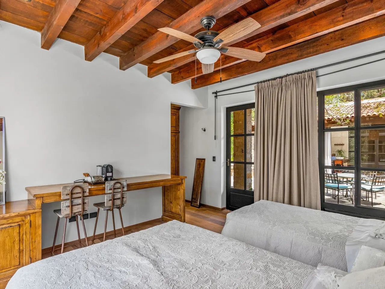 Tuscan Elegance in Santísima Trinidad Set within the exclusive gated vineyard community of Santísima Trinidad, Casa Lorenza is a Tuscan-style villa that blends stunning architecture with the serenity of vineyard living. Designed for comfort and effortless entertaining, the estate offers a flawless indoor-outdoor lifestyle in one of the region’s most coveted settings. The home’s open-plan design connects the gourmet kitchen, lounge, and dining area, creating an inviting space for gatherings. Wooden beams, locally crafted stone walls, climbing bougainvillea, and mature trees enhance the villa’s timeless character, while expansive outdoor areas provide a tranquil escape. A spacious terrace off the primary suite overlooks olive orchards, offering a private escape with panoramic views. With four ensuite bedrooms—three on the main level—the home is ideal for single-level living. Outside, a jacuzzi, lush gardens, and a covered dining space set the stage for al fresco entertaining. A three-car garage and additional visitor parking complete the estate. Located just 25 minutes from San Miguel de Allende, Santísima Trinidad offers more than a residence—it provides an immersive lifestyle. Residents enjoy access to private vineyards, olive groves, lavender fields, a boutique hotel, a winery, and a polo field. Here, luxury is defined by space, nature, and the rhythm of the land. Don’t miss the opportunity to visit the beautiful Casa Lorenza!