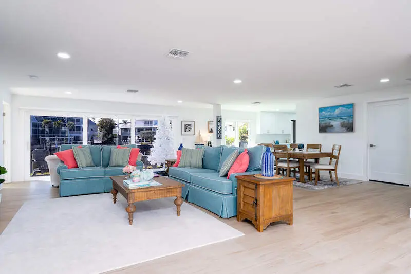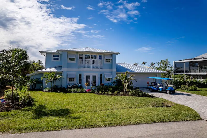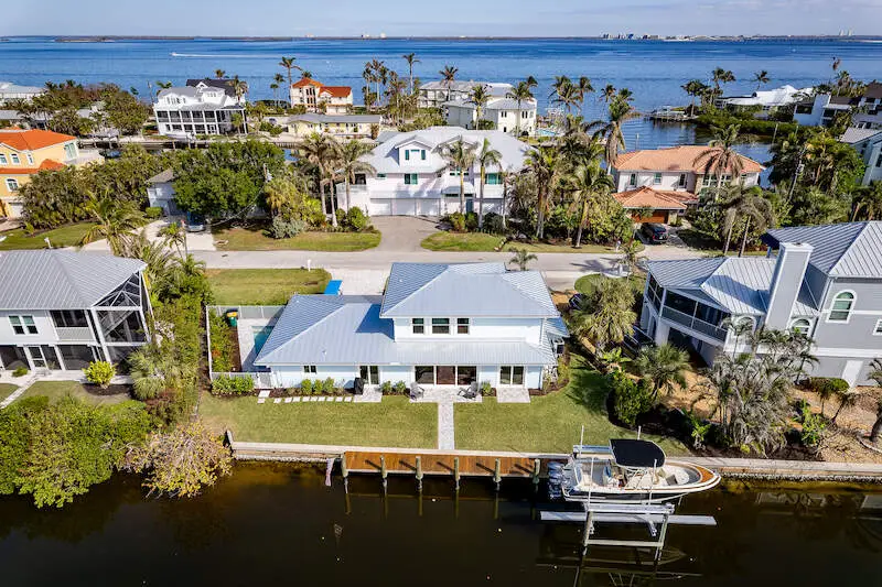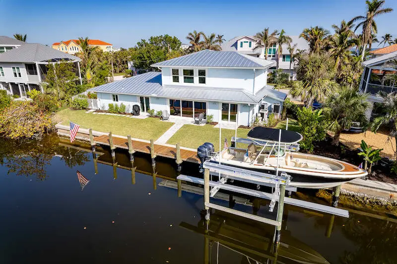 This completely renovated, fully furnished coastal contemporary retreat with charming Key West flair is ready for you to move in and start enjoying the Sanibel lifestyle immediately. Whether you prefer a leisurely stroll to the beach or setting out by boat, this home places paradise at your doorstep, situated on a picturesque canal with deep water Gulf access. The exquisite interior design mirrors the beauty of Sanibel Island's natural surroundings, featuring a beach-inspired color palette with floors, furnishings, and finishes that evoke the sandy shores and azure waters of the Gulf of Mexico. Every detail has been thoughtfully curated, from the brand-new metal roof to the luxurious high-end finishes throughout. The open-concept floor plan seamlessly connects the living, dining, and kitchen areas, all offering breathtaking waterfront views. The fully remodeled kitchen is a chef's dream, equipped with top-of-the-line appliances and elegant, functional finishes. This 3-bedroom, 2.5-bath home offers a spacious layout, complete with dual master suites-one on each floor-providing flexibility and privacy. Both suites feature tranquil water views and spa-like bathrooms with custom design elements. Outdoor living is equally spectacular, with a brand-new custom swimming pool and a private dock featuring a boat lift, making it a boater's paradise. Every detail of the home, from shower heads and faucets to mechanical systems, has been meticulously updated within the past few months, ensuring a worry-free experience. Located in a prime spot, this home offers quick access to the Gulf, pristine beaches, and all the natural beauty and charm Sanibel Island offers. Don't miss this rare opportunity to own a magnificent waterfront property that combines contemporary luxury with timeless coastal appeal.