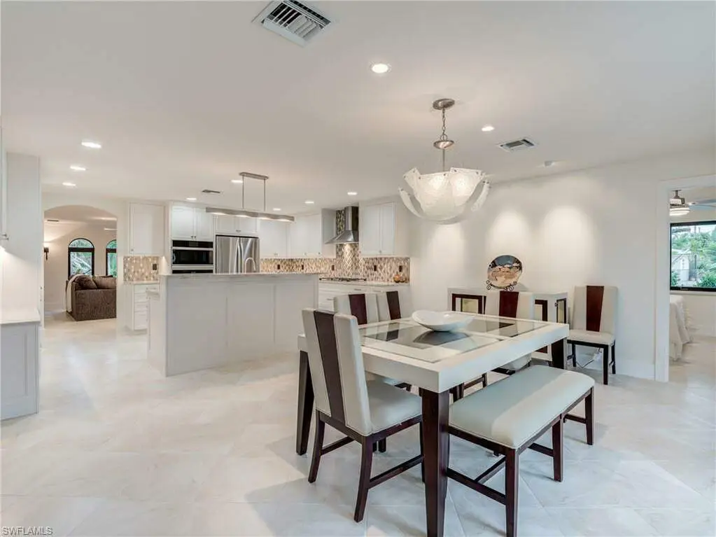 Discover the epitome of coastal living in Shell Harbor! Nestled on over 120 ft of frontage along one of Sanibel's premier direct-access canals-no bridges to the Gulf-this stunning 4 bed + den, 4.5-bath home has been thoughtfully renovated to perfection. As you enter through custom wood doors into the foyer, you're greeted by soaring ceilings, an elegant chandelier, & a multi-level design filled with natural light. The home boasts tile flooring, an elevator, & an airy layout. The kitchen is a showpiece, featuring Taj Mahal quartzite countertops, a gas cooktop, stainless steel appliances, custom wood cabinetry, & a separate bar area, ideal for entertaining. The luxurious primary suite offers a private balcony, vaulted ceilings, a soaking tub, a walk-in tiled shower, a laundry room, & an expansive walk-in closet. Multiple guest bedrooms on the lower level. Step through expansive impact sliders to the pool deck, where you'll find a covered patio, a cook-in cabana, a sparkling pool, & a dock complete with composite wood decking and a boat lift. Located on the desirable East End, the property provides convenient access on & off the island and includes community deeded beach access.