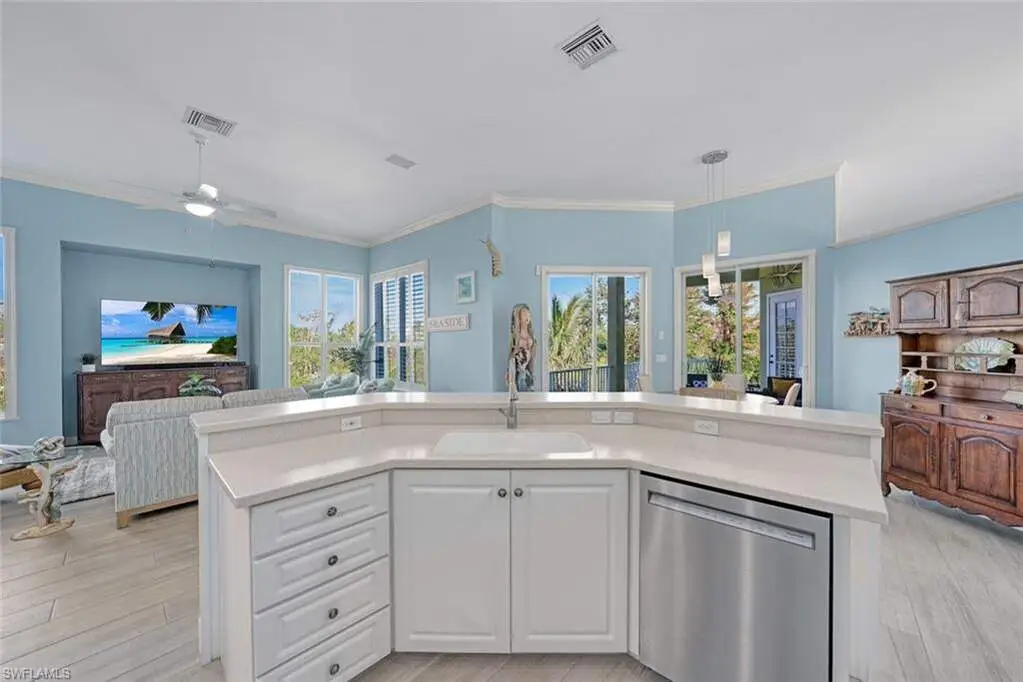 Boaters and beach lovers - this is THE ONE! Welcome to Your Tropical Retreat on Sanibel Island! This stunning 3-bedroom + den, direct Gulf-access home offers the ultimate in island living. Located just minutes from the Bay and the Gulf of Mexico, your private composite wood boat dock with 7.5lb lift sets the stage for unforgettable days on the water - whether you're boating, fishing, shelling, or simply soaking in the serene beauty of Sanibel. Just steps from the beach, you can hear the waves from your front door, while your back deck offers front-row seats to Florida's incredible wildlife - dolphins, manatees, nesting birds, and more. Perfectly positioned to capture breathtaking sunrise and sunset views, this home invites you to live in harmony with nature. Inside, you'll find a meticulously maintained and thoughtfully designed layout featuring soaring ceilings, plank tile flooring throughout, and abundant natural light. The spacious kitchen is a chef's dream - complete with modern finishes, generous counter space, and a welcoming flow for entertaining. The primary suite is a luxurious sanctuary with ample closet space, a separate soaking tub, a custom glass walk-in shower, and gorgeous quartz countertops embedded with sea shells - a true coastal touch. Each of the three bedrooms includes walk-in closets for plenty of storage, while the den offers versatility as an office, gym, or easily a fourth bedroom. A 2-car attached garage provides plenty of space for vehicles and toys, and an expansive lower-level storage/workshop area is ideal for hobbies or stowing all your gear. Built solid with concrete construction and a newer metal tile roof (2022), this home is designed to weather the elements with ease. The seller has already paid for premium Marvin Coastline impact windows and doors, scheduled for professional installation by Sanibel Glass on December 15th - delivering peace of mind and added value. Located on Sanibel's desirable west end, where "island time" begins, you're steps from the beach, close to over 26 miles of bike paths, and just minutes from the restaurants and shops of Captiva Island. This is more than a home - it's a lifestyle. Experience the very best of island living today.