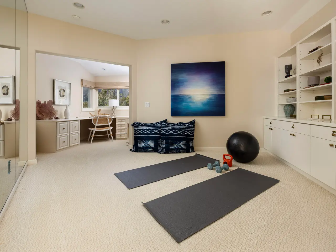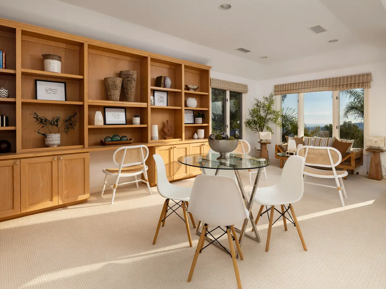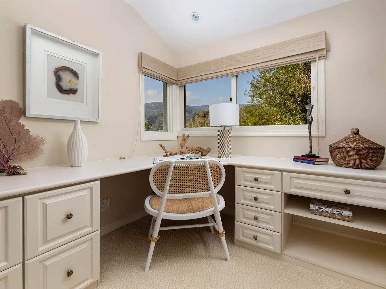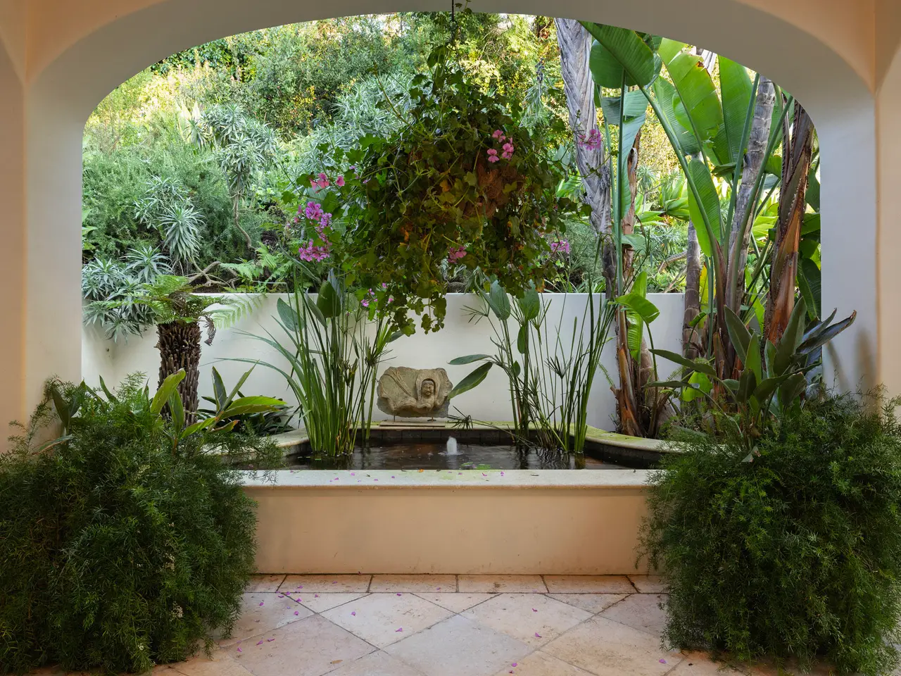 Behind private gates on Calle Elegante, a world of serenity and beauty unfolds on 1.7 lush acres. The moment you step inside, walls of glass reveal sweeping views of the ocean, islands, harbor, and mountains--reminders that this is no ordinary home, but a sanctuary elevated by nature itself. The story begins in the heart of the house, where soaring ceilings, stone floors, and a fireplace anchor the formal living room. Light pours in, filling the space with warmth, while the dining and family rooms blend seamlessly with the kitchen, creating an open, effortless flow for gatherings both large and small. Upstairs, the primary suite continues the story of retreat and renewal. With its own sitting room, private fireplace, and adjoining office, it's a place to wake slowly to the sunrise or wind down as the evening light paints the horizon. Two additional en-suite bedrooms carry the story further: one with doors that open directly to a secret garden hideaway, and the other framing the drama of the mountains. Step outside, and the home transforms into a private resort carved into the hillside. Inspired by the love of the Bacara Resort, the current owner designed the pool terrace to rival the luxury of a five-star retreat without ever leaving home. A sparkling pool shimmers in the sunlight, anchored by a covered patio with outdoor fireplace, a fully equipped outdoor kitchen, and multiple lounge areas. Here, mornings begin with quiet coffee overlooking the coastline, and evenings end with golden sunsets shared among friends. For visitors, a private guest suite above the garage offers decks, views, and independence a retreat within a retreat. Surrounding it all are lovely gardens, a koi pond, and mature trees that have grown into characters of their own, wrapping the home in shade, color, and year-round beauty.This is a home designed not just to live in, but to live well. Located in the sought-after Cold Spring School District, it blends elegance with comfort, privacy with welcome, and luxury with nature an everyday escape on Calle Elegante.