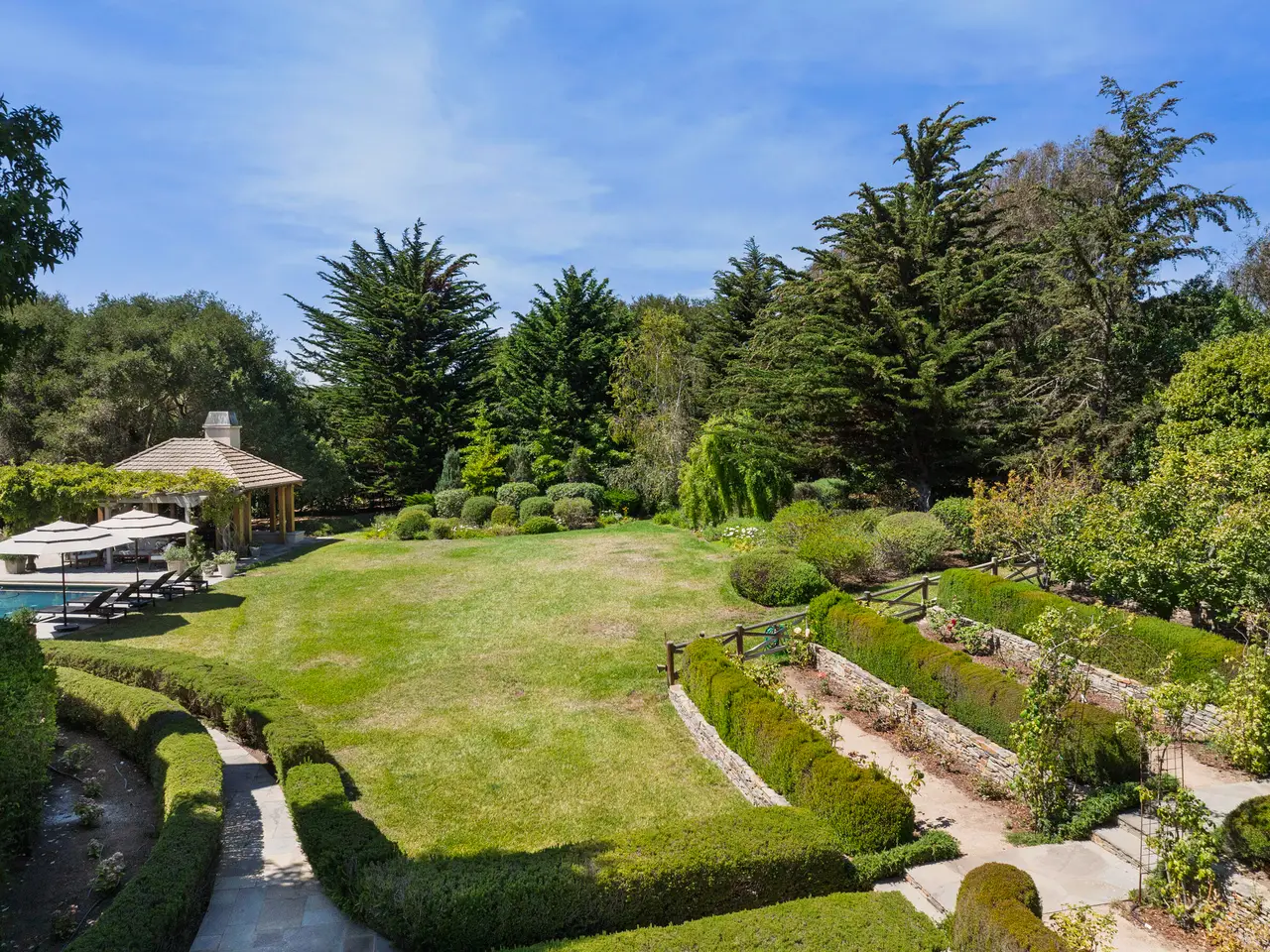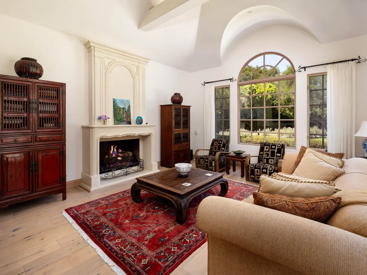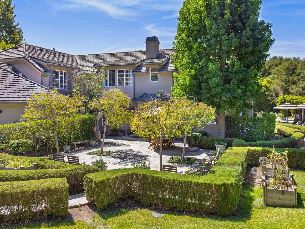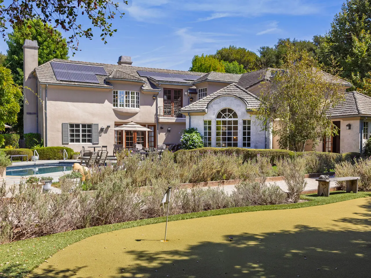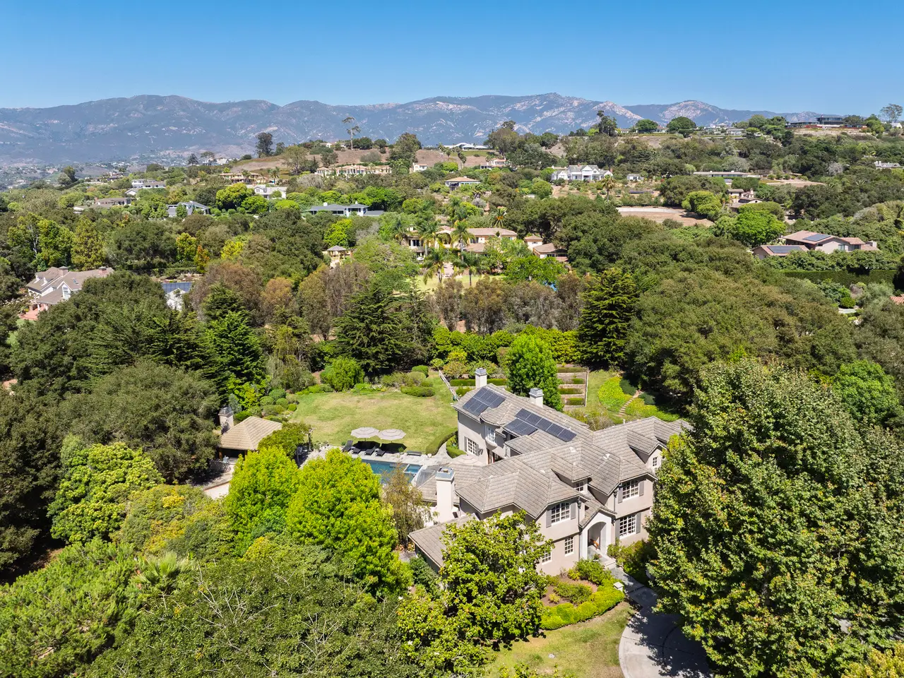 Exceptional Hope Ranch estate built by Rick Jeffries in 1998, showcasing timeless craftsmanship and quality. With 6 bedrooms, 6.5 baths, and approx. 5,900 sq ft on 1.7 usable acres, this gated property offers both privacy and versatility. Inside, soaring ceilings, newer wood floors, and abundant natural light create a warm, inviting atmosphere. Formal living and dining rooms with fireplaces set the stage for entertaining, while the spacious kitchen/family room (remodeled in 2023), dedicated study, and main-level bedroom/media room provide flexibility for modern living. The upstairs primary suite is a true retreat with fireplace, spa-like bath, and large walk-in closet. Each of the secondary bedrooms features its own en-suite bath, ensuring comfort and privacy for family and guests alike. Outdoors, the property shines with a pool and spa, open cabana with fireplace and BBQ, bocce court, and a 6-hole putting green. Rose gardens, fruit trees, raised vegetable beds, emerald lawns, and meandering paths complete the setting. Additional highlights include an oversized 3-car finished garage, owned solar system, and complete privacy behind gates. This estate seamlessly blends elegance, comfort, and resort-style amenities in a coveted Hope Ranch location.