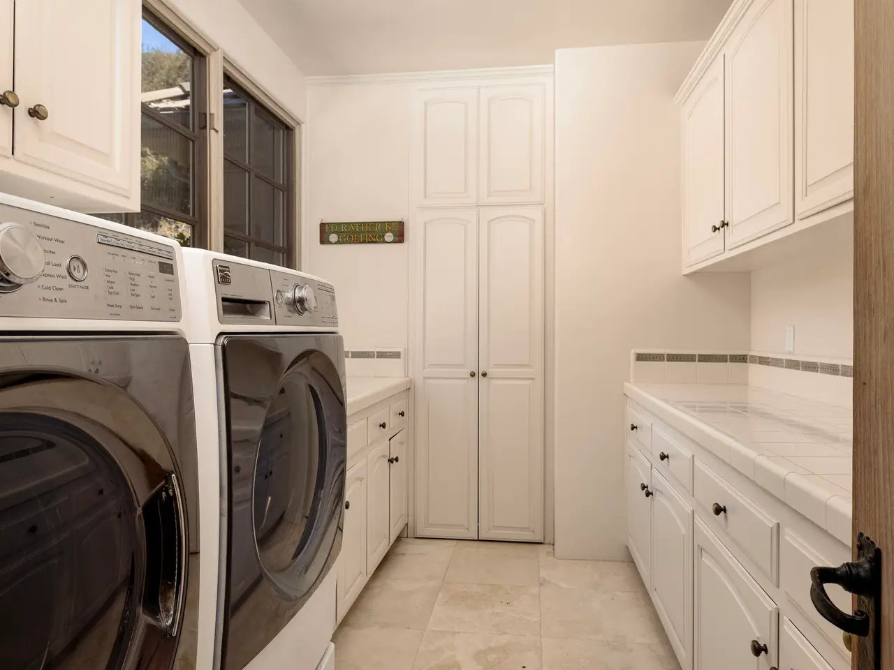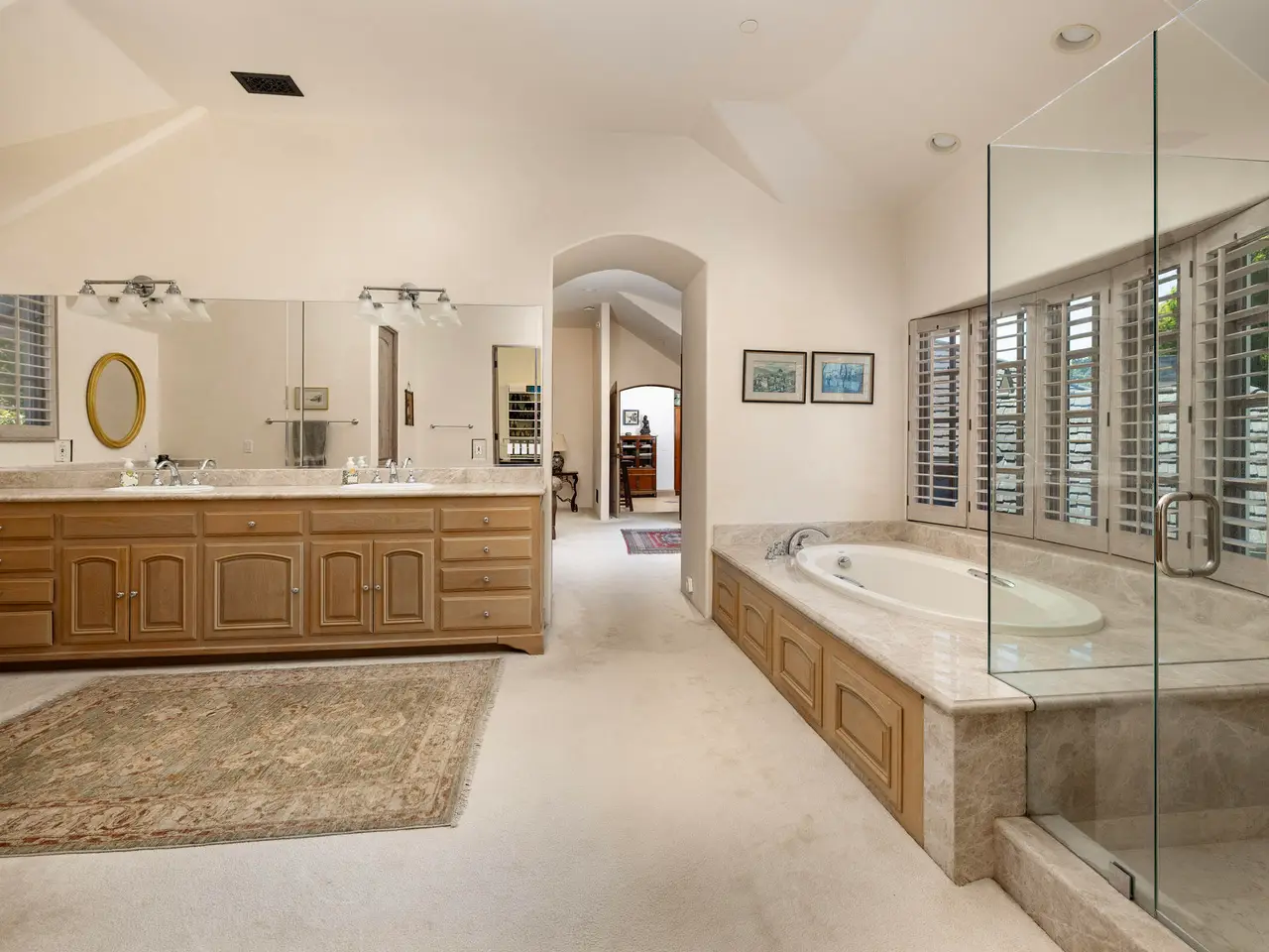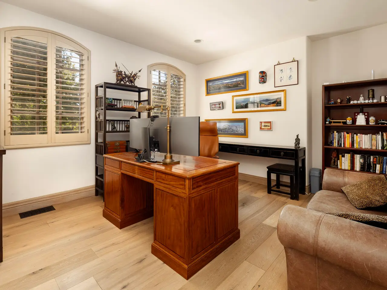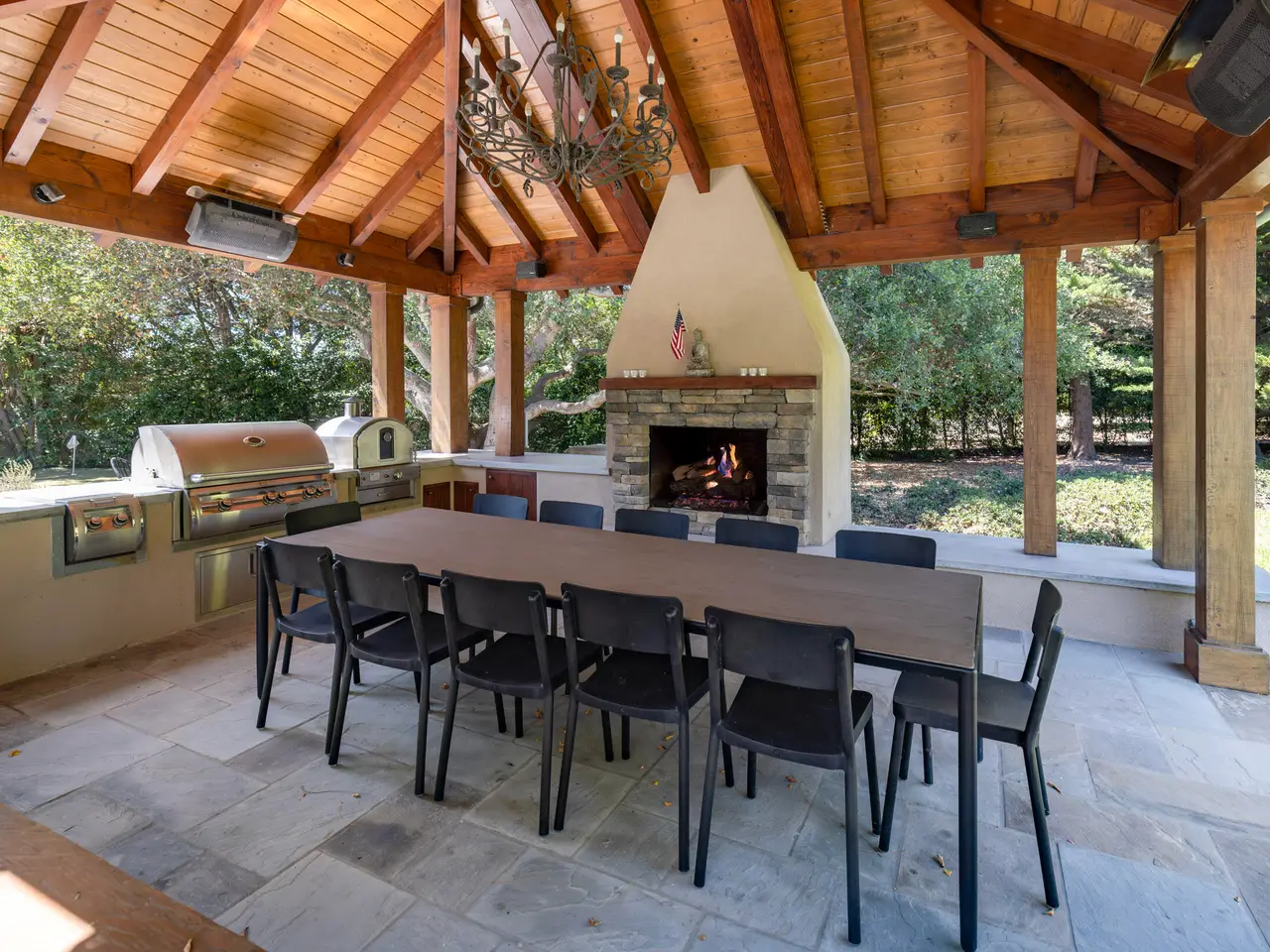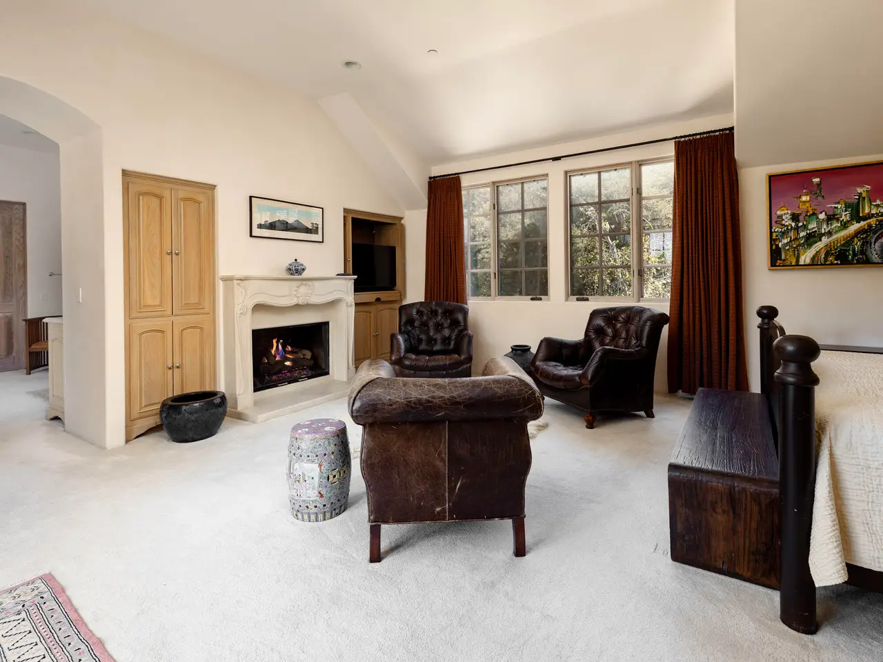 Exceptional Hope Ranch estate built by Rick Jeffries in 1998, showcasing timeless craftsmanship and quality. With 6 bedrooms, 6.5 baths, and approx. 5,900 sq ft on 1.7 usable acres, this gated property offers both privacy and versatility. Inside, soaring ceilings, newer wood floors, and abundant natural light create a warm, inviting atmosphere. Formal living and dining rooms with fireplaces set the stage for entertaining, while the spacious kitchen/family room (remodeled in 2023), dedicated study, and main-level bedroom/media room provide flexibility for modern living. The upstairs primary suite is a true retreat with fireplace, spa-like bath, and large walk-in closet. Each of the secondary bedrooms features its own en-suite bath, ensuring comfort and privacy for family and guests alike. Outdoors, the property shines with a pool and spa, open cabana with fireplace and BBQ, bocce court, and a 6-hole putting green. Rose gardens, fruit trees, raised vegetable beds, emerald lawns, and meandering paths complete the setting. Additional highlights include an oversized 3-car finished garage, owned solar system, and complete privacy behind gates. This estate seamlessly blends elegance, comfort, and resort-style amenities in a coveted Hope Ranch location.
