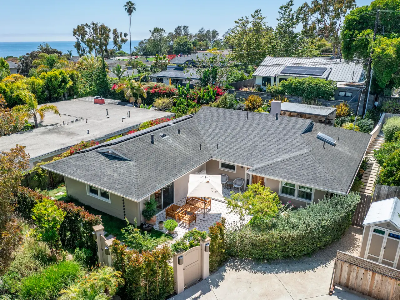 Santa Barbara Mesa Living at its best: welcome to a truly lovely home in the desirable 93109 zip code! Meticulously remodeled, this serene property is just blocks from the beach and offers a charming blend of luxury and comfort with a tranquil and laid-back coastal vibe. Tucked away behind mature hedges on a quiet street with a gated welcome, this home's tiled front entry sets the tone for casual living, and lush landscaping reminds you you're relaxing in America's Riviera under shade trees and palms. With 4 large bedrooms and 2.5 bathrooms, the residence offers a flexible layout for privacy when hosting guests, as well as seamless indoor-outdoor options for both family life and entertaining. Enter and step into the expansive kitchen area, complete with quartz countertop