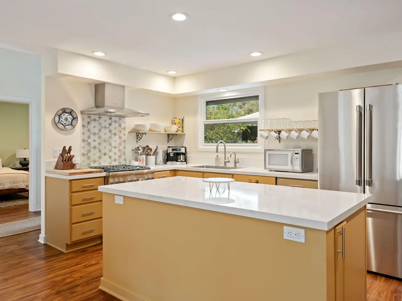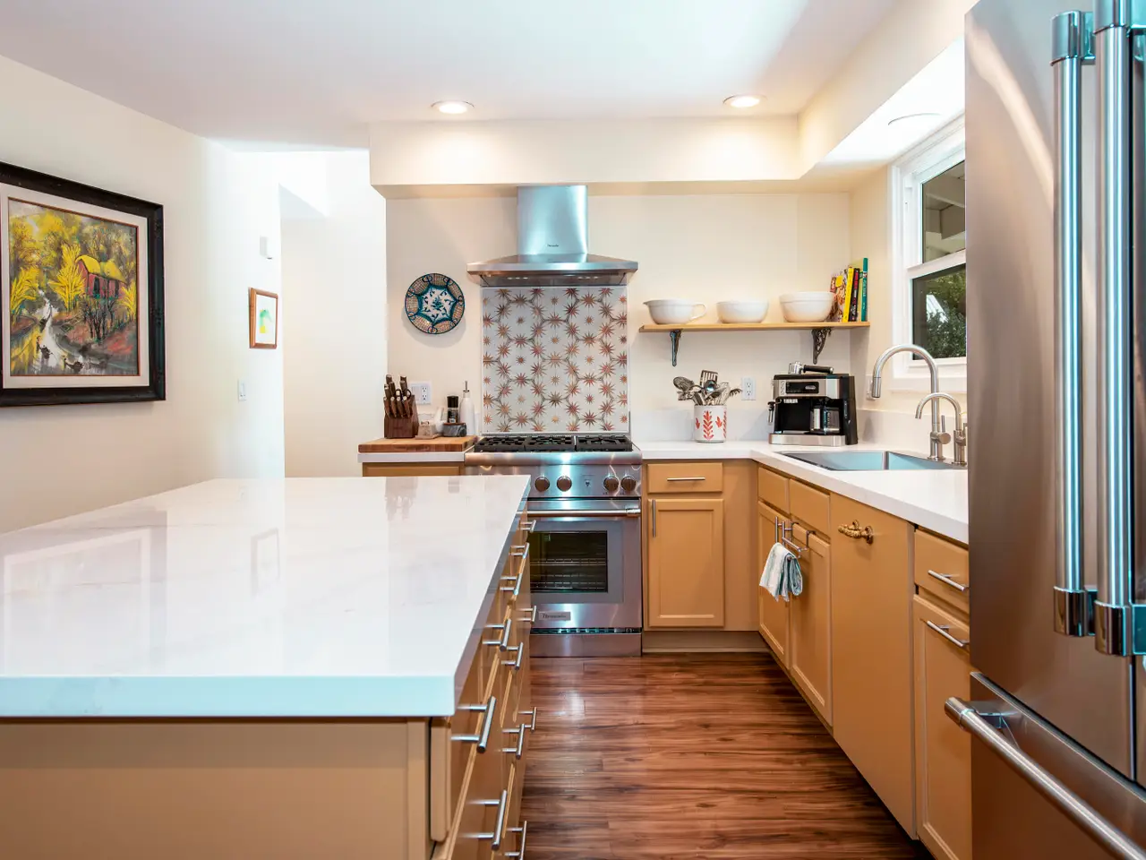 Expansive kitchen with quartz countertop