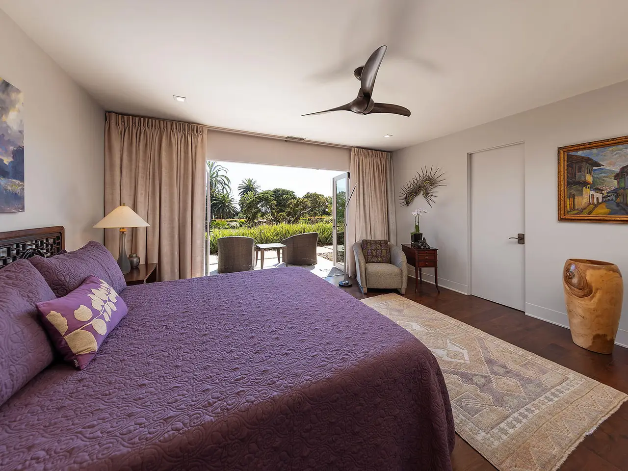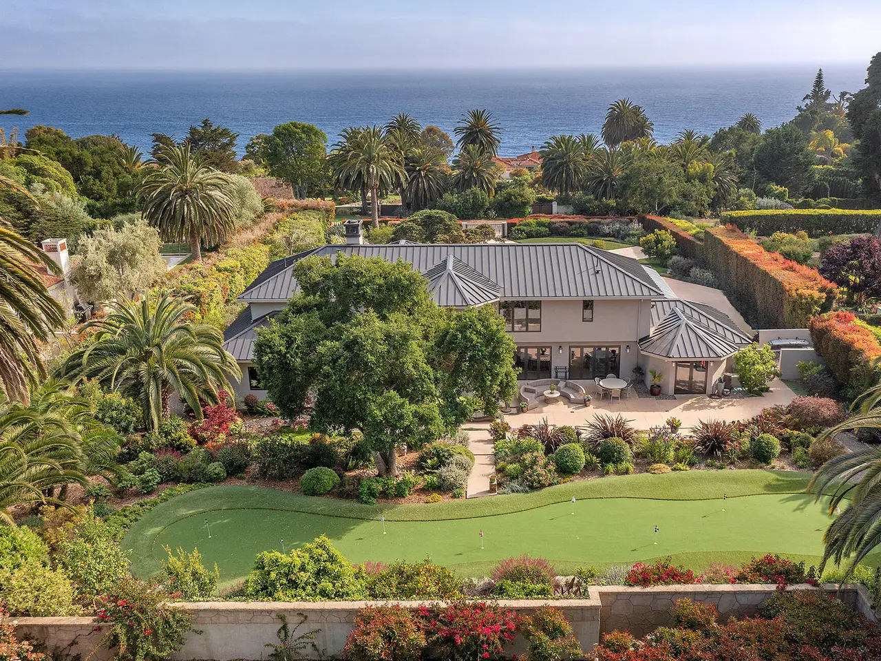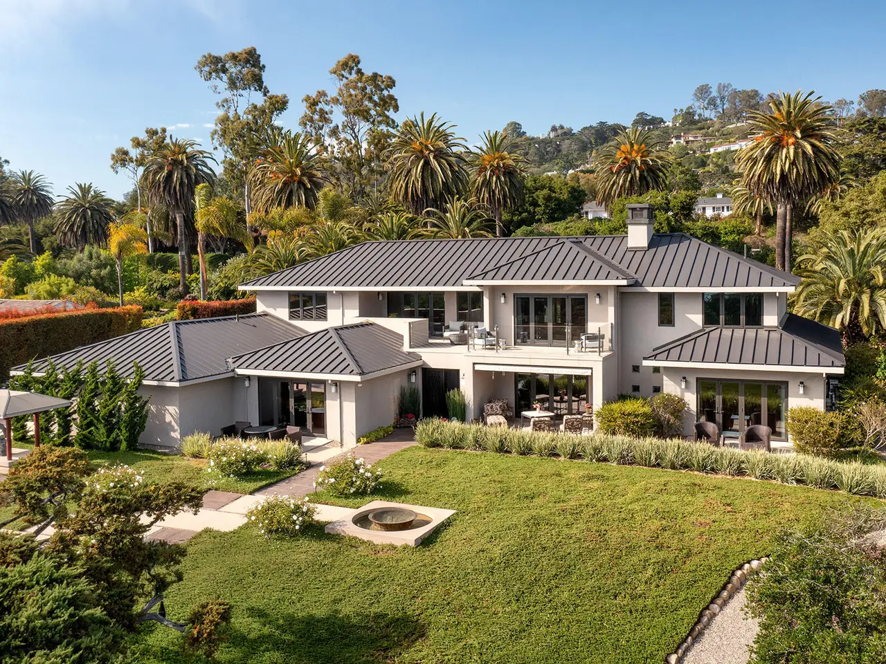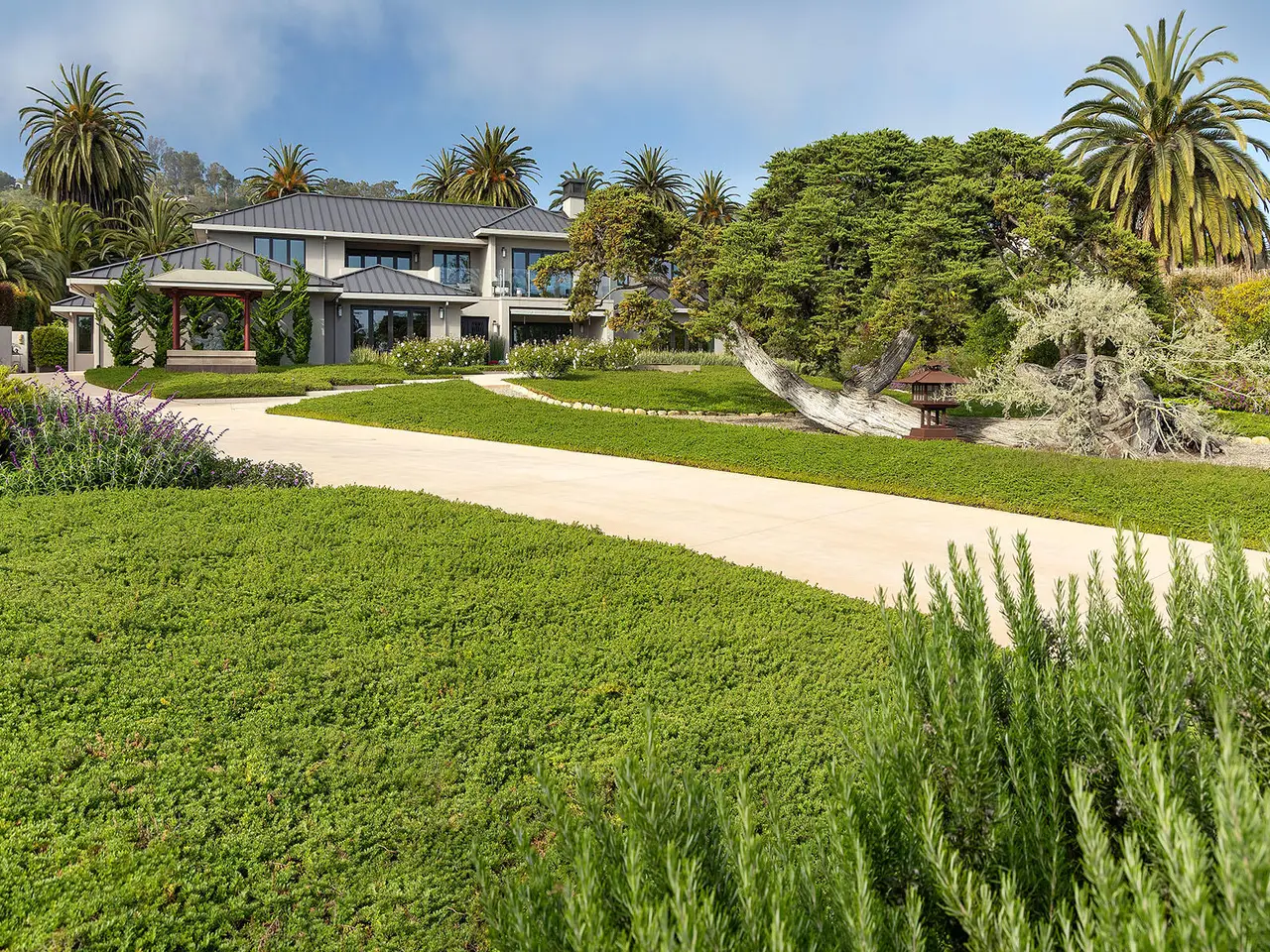 Sophisticated contemporary located on one of the premier streets in Hope Ranch. Gated drive winds past a magnificent Cypress tree which is the centerpiece of the manicured yard. A thorough remodel and impeccable maintenance by the owners presents a no apology home. The five bedrooms (four ensuite) and open concept floor plan allows for many lifestyle options. Rear yard area features a striking architectural fountain, large entertaining patio and elevated putting green. Three bedrooms downstairs are ideal for guests, family or office plus family room. Upstairs is reached either by a beautiful floating staircase or glass elevator. The primary bedroom suite is here with a large sunny ocean view sitting room plus wet bar and fourth ensuite bedroom. Amenities too numerous to mention; come see for yourself!
