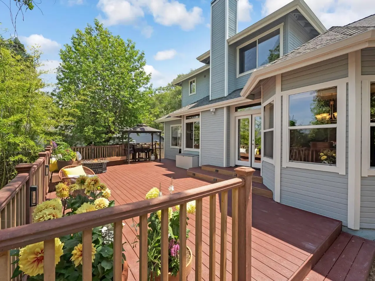 Entertainer's Dream in Private Bennett Valley Setting! Welcome to this expansive home -From the moment you arrive, a two-story entry and sweeping staircase set the tone. Vaulted ceilings soar above a sunken living room anchored by a fireplace,and the adjacent dining area comfortably seats 10, with a great open floor plan. At the heart of the home, the updated kitchen shines. A garden window fills the space with natural light, and new appliances including an induction cooktop and stainless refrigerator. A breakfast nook offers wraparound views of the hills. The open-concept layout flows seamlessly into a cozy den, complete with a wet bar and built-in refrigerator to support entertaining. French doors lead to a generous Trex deck featuring built-in seating, a pergola, and a propane fire tableideal for entertaining. On the first floor, a guest bedroom and full bathroom provide an ideal guest suite. A conveniently placed laundry room adds everyday ease. A 3-car garage offers built-in cabinetry, a workbench, and overhead storage. Retreat upstairs to the primary suite, where vaulted ceilings, a jetted tub, oversized shower, and walk-in closet. Two additional large bedrooms share a double‐sink bathroom with shower over tub. This stunning 4 bedroom home is spacious and comfortable!