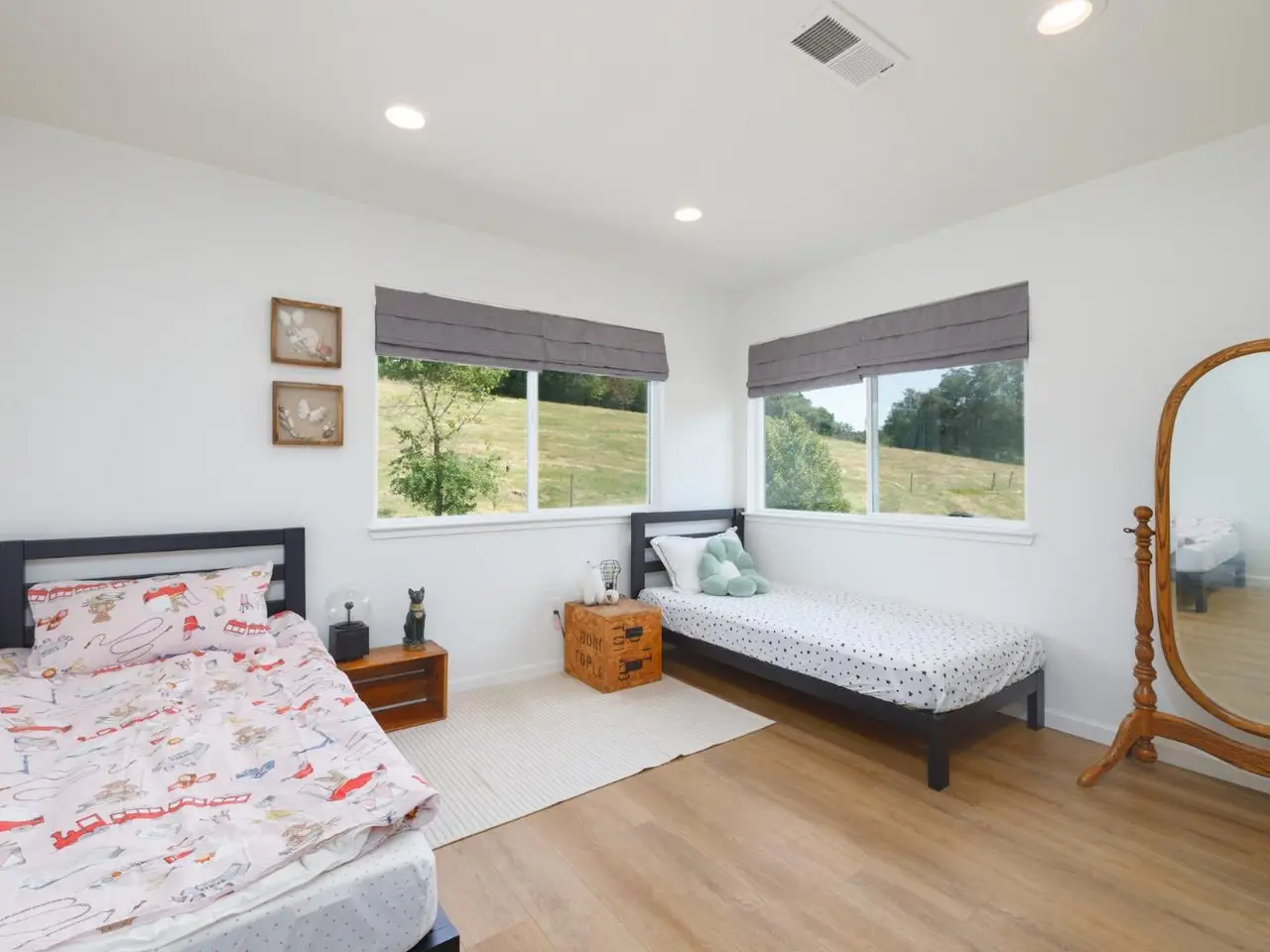 This thoughtfully updated 4-bedroom, 3-bathroom home offers 2,080 SgFt of living space on 4.43 private acres in Sonoma's Bennett Valley. Extensively remodeled, the property has been upgraded for comfort, functionality, and long-term durability. The downstairs flex room is great for kids or entertainment. Recent improvements include a redesigned kitchen with new cabinets, countertops, island, fixtures, and a wine fridge, along with updated bathrooms, new flooring throughout, and fresh interior and exterior paint. Upstairs, the bedrooms were reconfigured to create a dedicated master suite alongside two additional bedrooms, and a new walk-in service closet. The exterior features a repaved driveway with added parking, new concrete flatwork, and a west-facing deck overlooking hillside views. A Tesla Powerwall provides whole-house backup during outages, while the upgraded water system includes a 2,500-gallon tank, booster pump, and pressure tank. A new retaining wall, trench drains, and catch basins improve drainage and reduce the need for sump pumps. Additional updates include WiFi-enabled controls for the Google Nest system, garage door, and smoke detectors. Beautifully updated and ready to enjoy home offers privacy, modern updates, and peaceful surroundings.