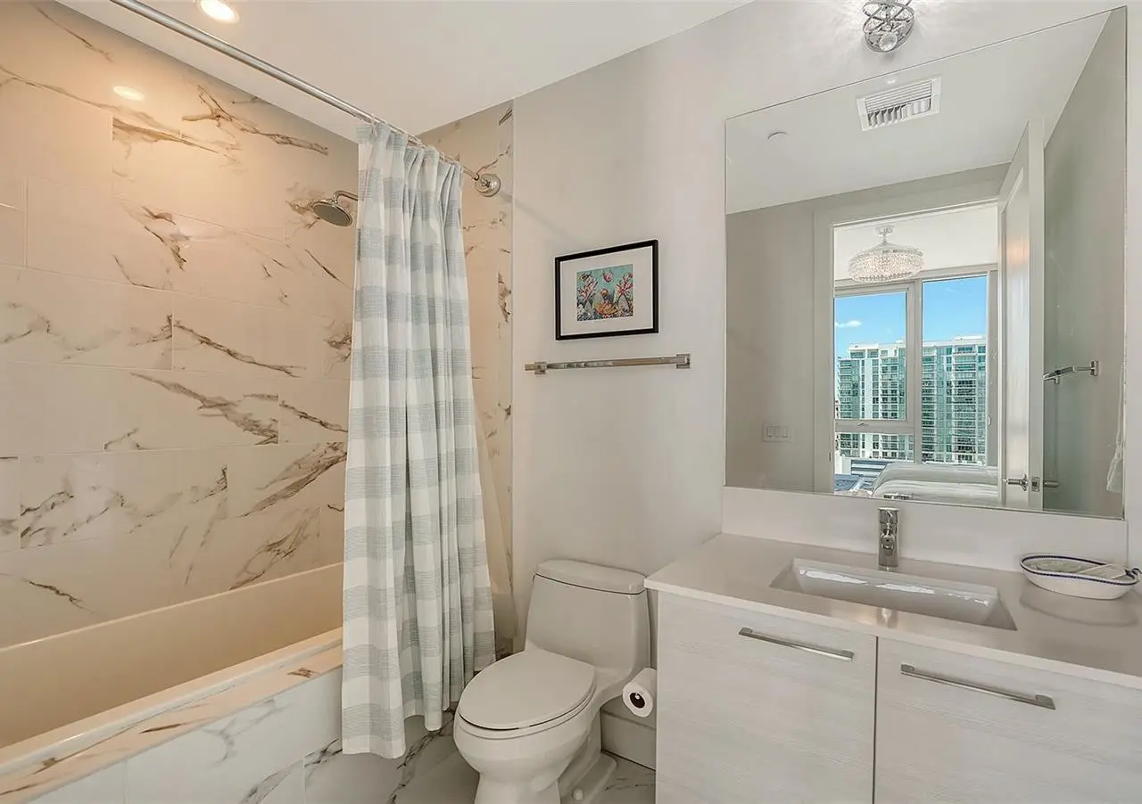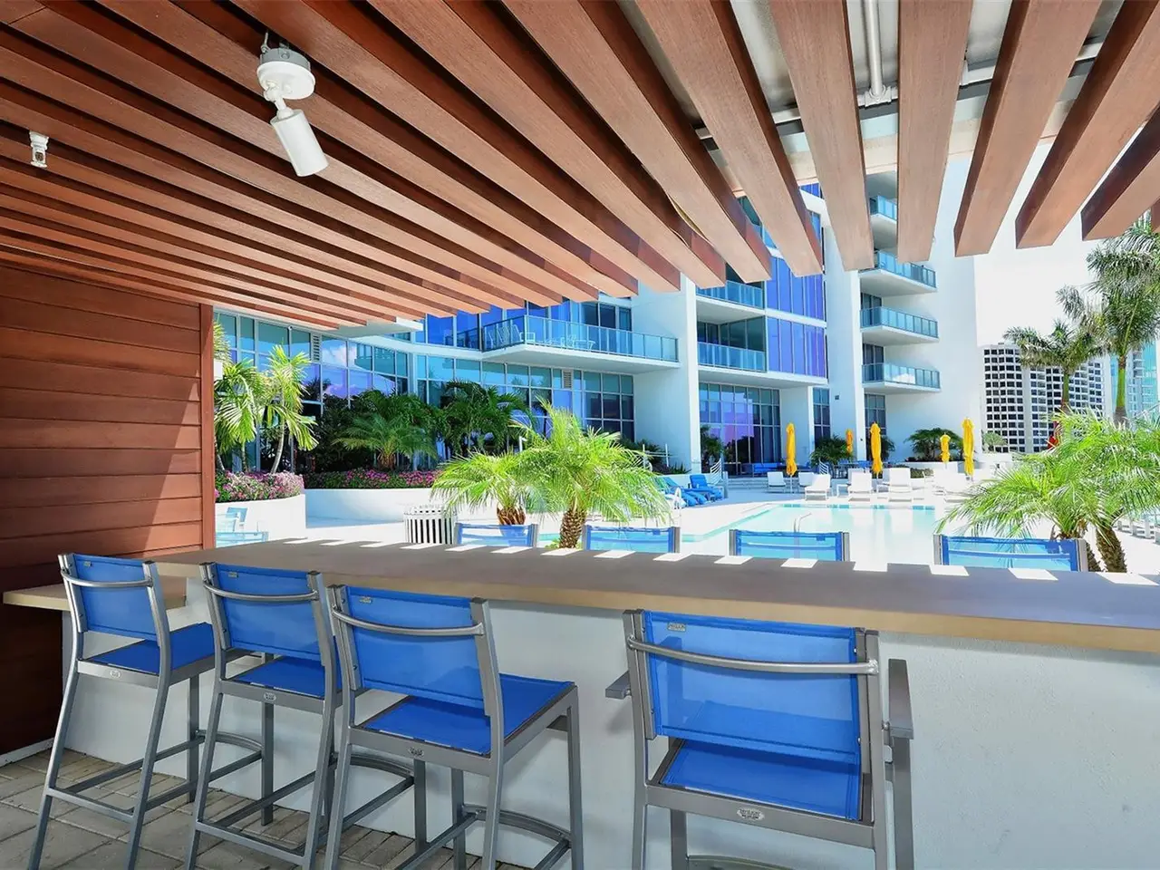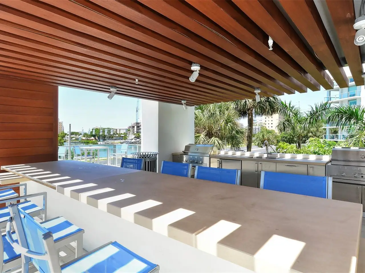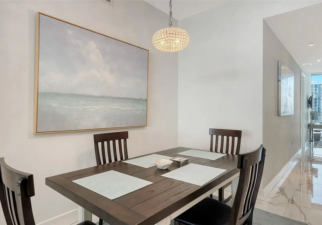 Elevated living at The Vue, one of Sarasota's premier downtown condominiums. This elegant 11th-floor residence offers breathtaking, unobstructed views of Sarasota Bay, the marina, and through Big Pass to the Gulf of Mexico. The coveted 06 stack is a floor plan featuring a dedicated office/den and a fully private, south-facing balcony that is shaded all day and ideal for enjoying vivid sunsets and bay breezes. Ten-foot floor-to-ceiling windows in the living room and primary bedroom bring in abundant light and stunning water views. The sleek, open layout is complemented by high-end finishes and a gourmet kitchen with premium appliances, designer cabinetry, and a spacious island for entertaining. The Vue offers resort-style amenities including 24/7 concierge, heated pool and spa, rooftop dog park, fitness center, club lounge, board room, and elegant spaces to host guests. Residents also enjoy a complimentary city shuttle to Lido Beach and downtown's Main Street. Ideally located in the heart of Sarasota, you're just steps from fine dining, art galleries, live music, the performing arts, and waterfront parks. Sophisticated design, luxury amenities, and unmatched views. This is downtown living at its finest.