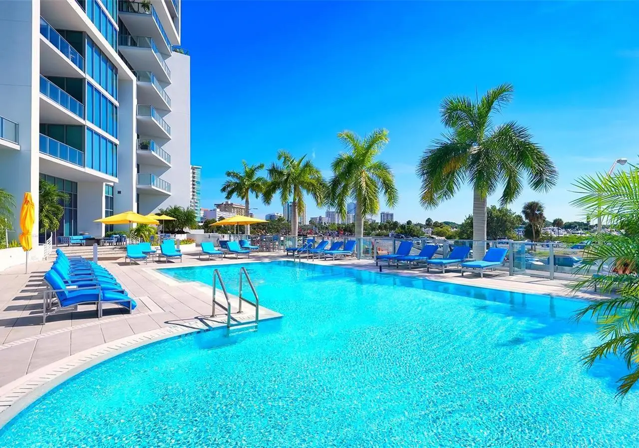 Resort-style amenities including 24/7 concierge and heated pool