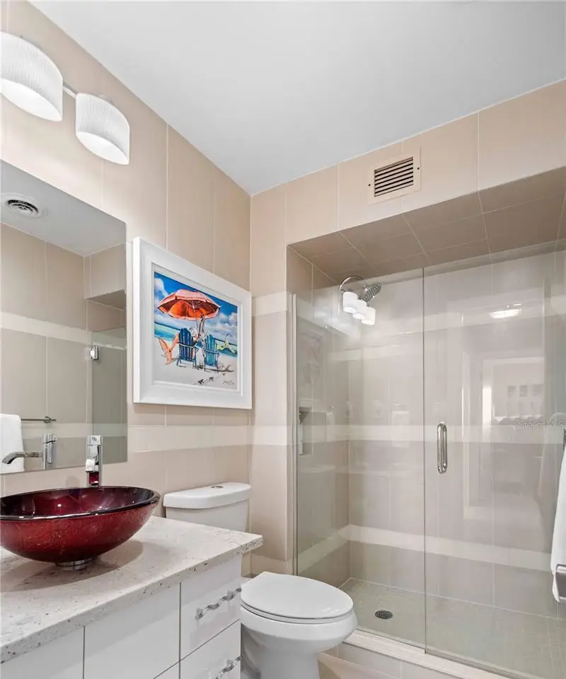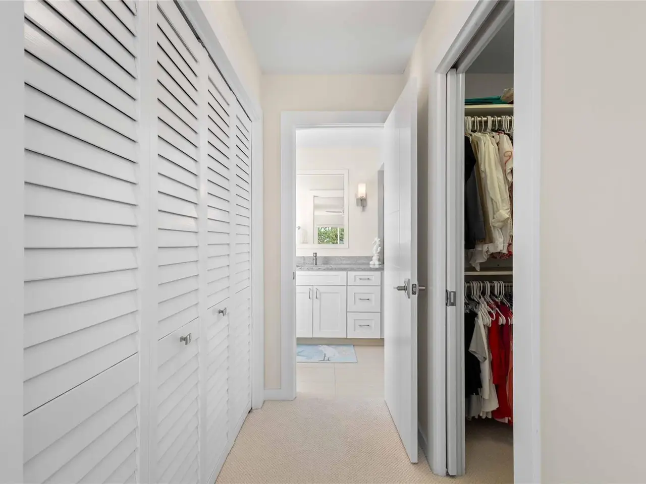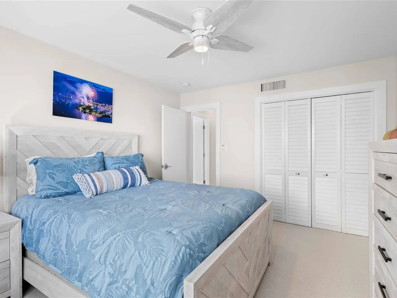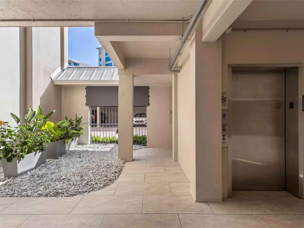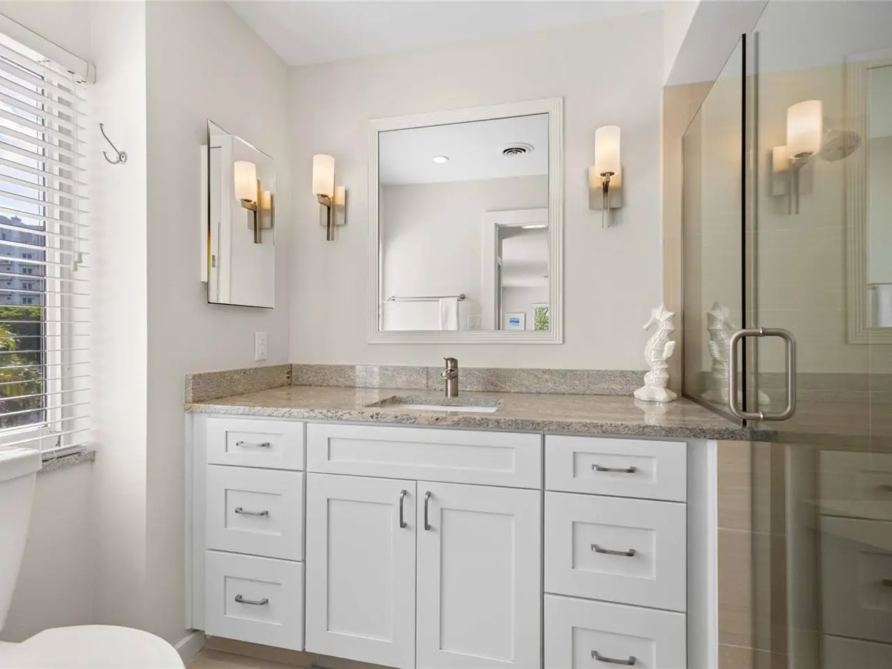 Coastal living at its finest, the panoramic and breathtaking views from this Golden Gate Point residence offer an unparalleled yet attainable opportunity to live the sought-after waterfront lifestyle. This elegantly renovated corner unit boasts walls of impact-rated PGT windows (2024) that perfectly frame sweeping views of Sarasota Bay, Bird Key, and the iconic John Ringling Bridge, offering a front-row seat to jaw-dropping sunsets and endless natural beauty. The open-concept kitchen has been thoughtfully redesigned with a quartz waterfall island, soft-close cabinetry, built-in desk, and a seamless flow into the living and dining areas - ideal for both entertaining and everyday living. The spacious great room enjoys phenomenal north and west-facing vistas, with the unit uniquely set in front of the neighboring building to maximize natural light and privacy. Throughout the residence, you'll find custom interior doors, a neutral color palette, thoughtfully renovated bathrooms, and elevated finishes that reflect refined taste. Both bedrooms feature serene bay vistas, and the expansive 18' x 12' primary suite allows space for a sitting area or workspace plus separate reach-in and walk-in closets in the vestibule leading to the primary bathroom. Storage is abundant, with a large entry closet, full-size hallway closet, a generous 8' x 7' laundry/utility room, and a 6' x 5' private storage room conveniently located just outside the front door. Residents of this boutique community enjoy exceptional amenities, including a heated bayfront pool (34' x 17'), day dock, outdoor shower, and renovated poolside bath. Assigned covered parking and ample guest parking provide convenience. Set on the prestigious Golden Gate Point peninsula with its tree-lined and brick-pavered street, this residence is minutes from downtown Sarasota's dining, arts, and cultural attractions, as well as the shops and restaurants of St. Armands Circle and the world-famous beaches of Lido Key. This is a rare opportunity to live the waterfront lifestyle in one of Sarasota's most exclusive neighborhoods.