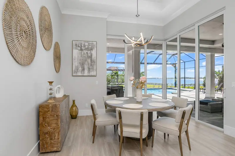 At WildBlue in Lakewood Ranch you'll find yourself in the newest and most desired community in Sarasota County. Rated the top master planned community in the United States, this luxury home has it all to begin TURNKEY!!! Introducing this exceptional lakefront property in the coveted city of Lakewood Ranch, boasting a wealth of community amenities including 6 tennis courts, 8 pickleball courts, a children's playground, wetland overlook and boardwalk, dog park, event lawn basketball court, dock/kayak launch, and picnic areas with grilling stations and much more. This stunning home offers unparalleled outdoor experiences, with a pool, spa, outdoor kitchen, and fireplace all overlooking the serene lake views from the expansive patio and screened lanai. NEWLY CONSTRUCTED futures exclusive interior design elements, modern/contemporary style furnishing, luxury kitchen features, elegant bathroom features and more. OPEN concept living/dining, ceramic tile flooring, stainless steel appliances, quartz counter tops, pantry, walking closets, his and hers vanities, a modern self-standing bathtub. Gorgeous outdoor living invites you to enjoy unforgettable views, prepare the ideal meal in well appointed outdoor kitchen, to enjoy beautiful sunrises and immerse yourself in salt water infinity pool or spa. Tankless water heater, three-car garage, pre-wired automation system, impact resistant windows/doors, laundry in the residence. The kitchen features top-of-the-line stainless steel appliances, JennAir stove top, and white cap and winter maple colored cabinets, complemented by a wine cooler and outdoor grill by ASPIRE by HESTAN. Fantastic location with close proximity to restaurants, shops, golf, pickleball, and I-75 you'll find this to be your dream home. Nearby to Siesta Key Beach, Ana Maria Island, and Longboat Key further elevate this property, making it a true treasure for discerning buyers seeking the ultimate Florida lifestyle.