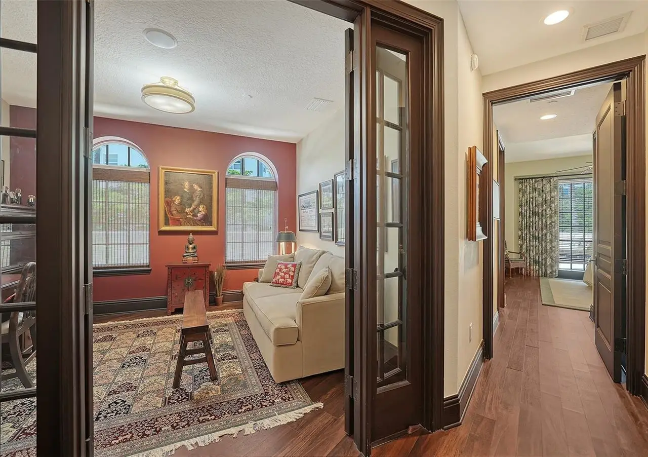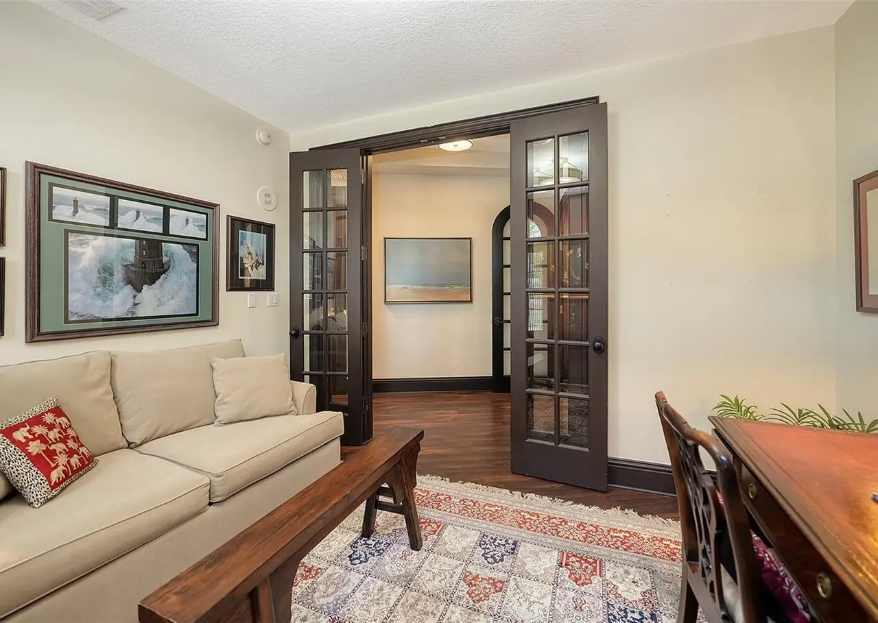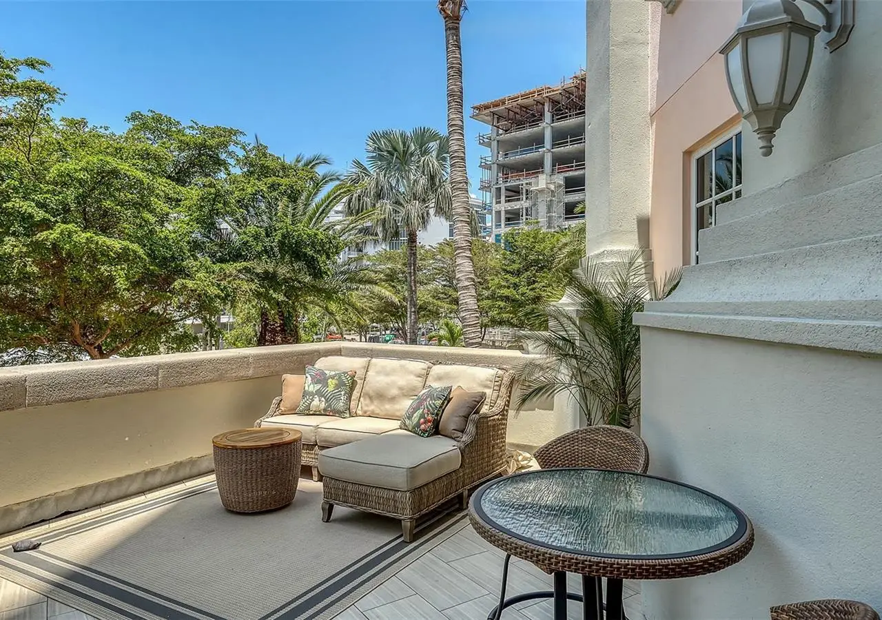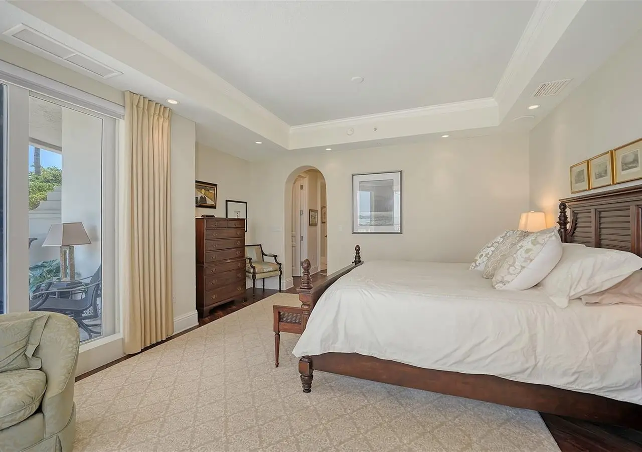 Experience the epitome of elegance and timeless sophistication in this exquisitely appointed residence at the exclusive Grande Riviera, a breathtaking architectural gem nestled in the prestigious Golden Gate Point neighborhood. Meticulously maintained, this classic condominium offers panoramic views of Sarasota Bay and the sparkling downtown skyline, setting a new standard for luxury waterfront living. This residence boasts the largest terrace in Grande Riviera, approximately 2300 square feet, providing the ultimate setting for sunsets and entertaining friends and family. One of only 13 exclusive residences, this home offers an intimate and private lifestyle, with a private elevator entrance leading directly to the elegant foyer. Designed for both comfort and grandeur, the residence features arched walkways, rich crown molding, and expansive living spaces ideal for entertaining or quiet reflection. The heart of the home is a remodeled chef’s kitchen, outfitted with a large center island, solid wood cabinetry adorned with sleek black hardware, a quartz backsplash, granite countertops, and a Sub-Zero refrigerator and freezer, as well as a Wolf gas range and double wall oven. Deluxe Laundry room with custom cabinetry and workspace conveniently located near the kitchen. A wet bar with a Sub-Zero wine fridge seamlessly connects the open living space to the elegant dining and living areas, creating a perfect flow for gatherings. Step outside onto the largest private wraparound terrace in the building, where you’ll enjoy breathtaking, unobstructed views of the bay. This is truly one of the most distinguished outdoor living spaces in the complex. The owners’ suite is a serene retreat, featuring dual walk-in closets with custom built-ins, and a spa-like bathroom with marble floors, a dual quartz vanity, walk-in shower with dual showerheads, and a private water closet. The suite also offers direct access to the terrace, allowing for peaceful mornings with stunning bay views. The guest suite boasts a private terrace entry, en suite bath, and walk-in closet, while a versatile den with double glass doors can serve as an office, sitting room, or additional guest space. Additional features include a private, deeded two-car garage with storage, resort-style pool, rooftop terrace, boat docks, on-site management, and private secured access. This is a rare opportunity to own a distinguished waterfront home in one of Sarasota’s most coveted locations, a residence that masterfully blends classic design, modern comforts, and breathtaking surroundings.