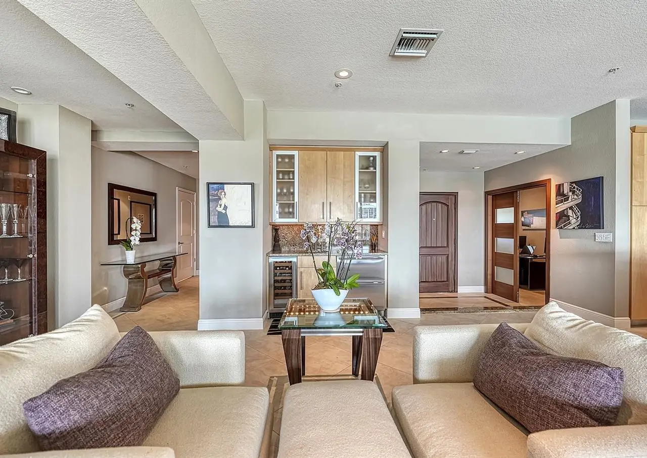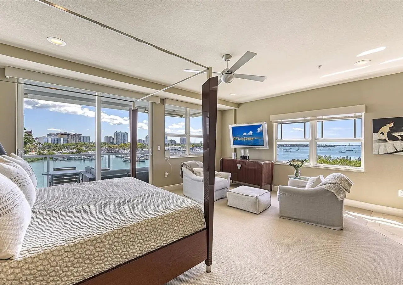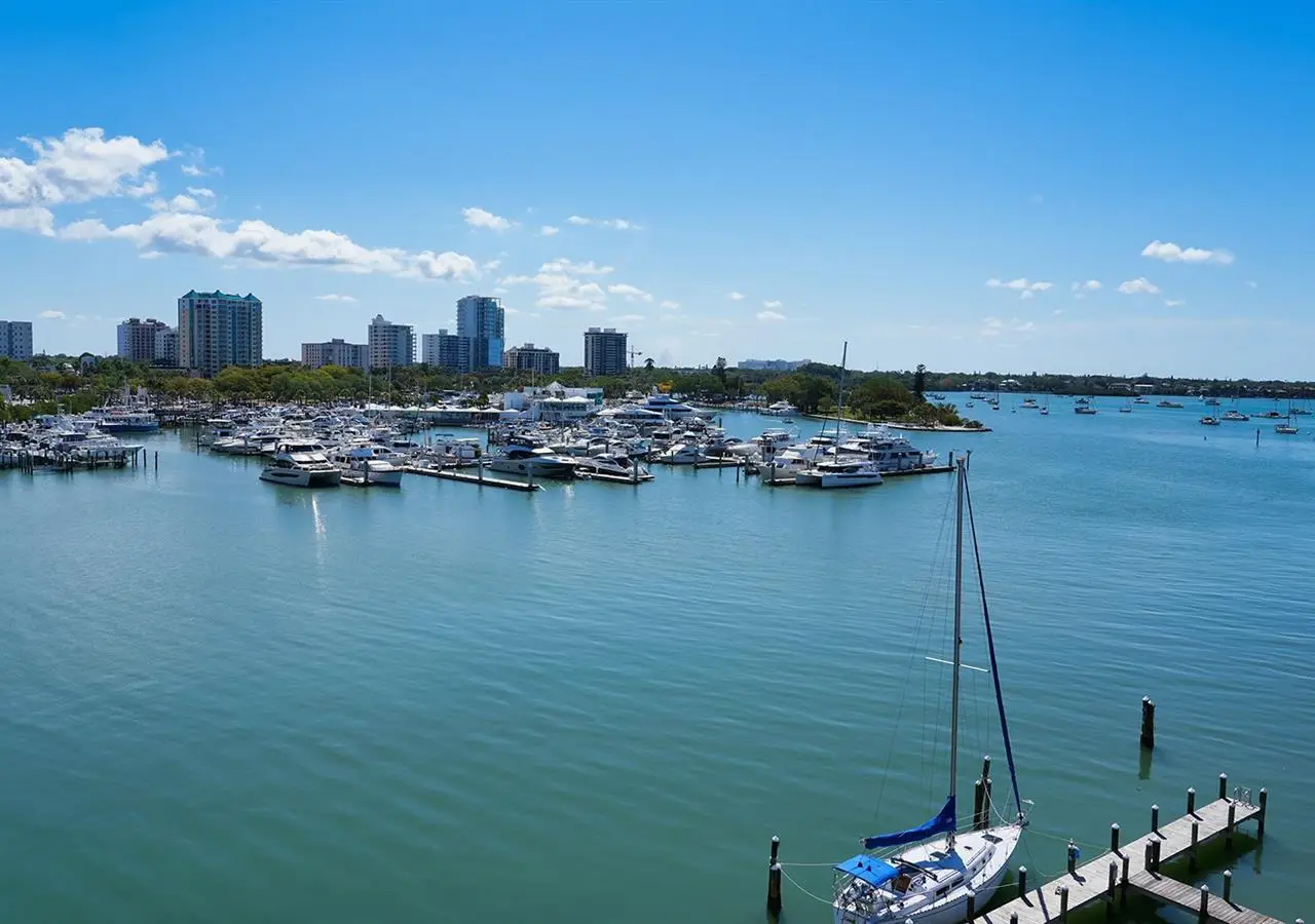 Luxury Waterfront Penthouse in Golden Gate Point. This exceptional penthouse in an exclusive 14-unit boutique building offers breathtaking panoramic views of Sarasota Bay, the city skyline, and Marina Jack. Occupying half of the top floor, this meticulously designed three-bedroom, three-bathroom residence features a spacious split floor plan with an open-concept layout ideal for privacy and entertaining. The chef's kitchen includes top-of-the-line appliances, imported finishes, and a wet bar, while the master suite offers a private wet bar, spa-inspired bath, and stunning views. Turnkey with high-end Italian furnishings and artwork (with few exceptions), the home also features a 52-foot heated balcony for prime waterfront relaxation. A rare assigned 40-foot boat slip provides direct access to Sarasota Bay and the Gulf. Harbor View was redeveloped to Florida?s enhanced building codes in 2006-07, with $1.5M in updates in 2018 and a new seawall, docks, and renovated pool/patio in 2022. Gated entry, security cameras, and two covered parking spaces add convenience. Just four blocks from downtown Sarasota and a short bike ride over the Ringling Bridge to Lido Beach and St. Armands Circle, this exclusive penthouse offers luxury waterfront living at its finest. Schedule your private showing today!