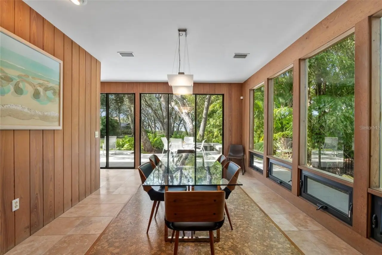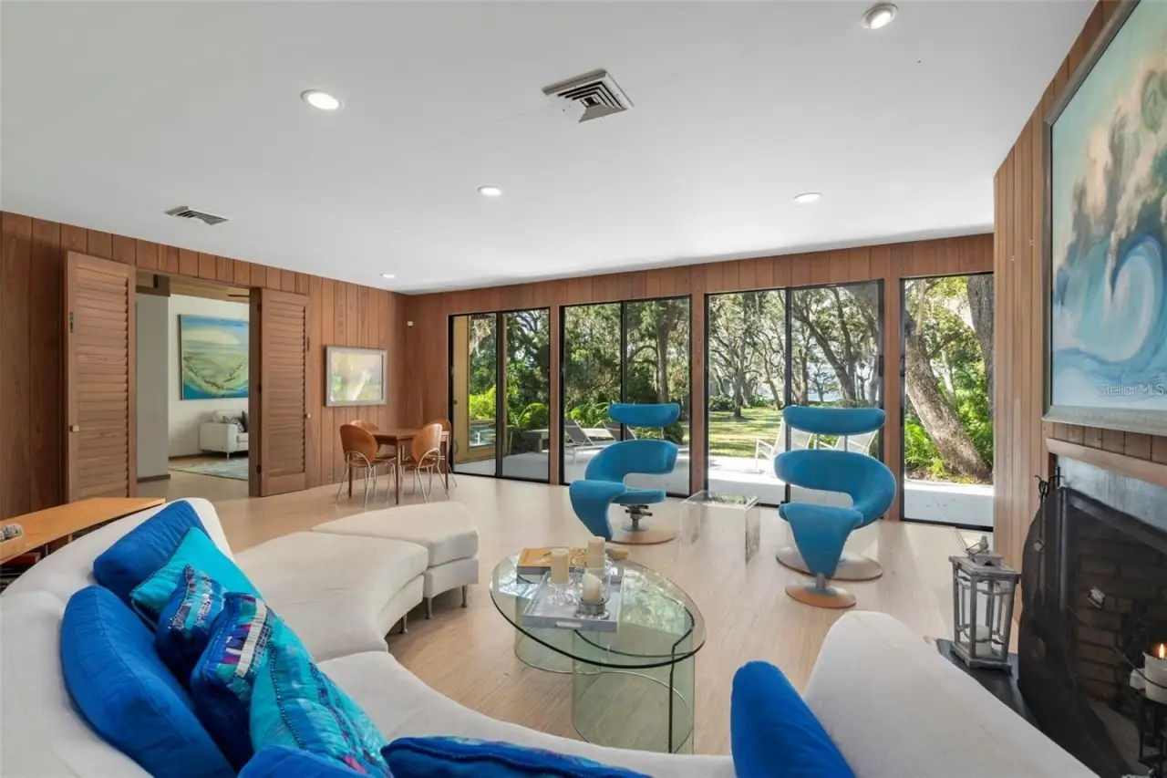 Stunning Mid-Century Masterpiece, close to beach and walk to Southside Village. Featuring cypress inside and out. High ceilings and open spaces offer comfort and airiness, while the walls of glass sliders and windows fill the interior with natural lighting while showcasing gorgeous views of the lush landscaping. The expansive great room features floor-to-ceiling sliders and a wood-burning fireplace, creating a warm and inviting space, while the open kitchen with an island is perfect for creating culinary delights and entertaining. Also on the first level is an additional living space and a large flex room with sliders leading to a screened outdoor patio. This bonus room is ideal for a home gym, playroom, or art studio. Adjacent to this room you'll find a large heated indoor pool perfect for swimming laps day or night or just relaxing in while admiring the scenery. Upstairs, is a laundry room, 2 comfortable guest rooms, and a generous primary suite with a fireplace, large windows, and a well-appointed spa-like bath with a walk-in shower and soaking tub. Amazing views of the lush landscaping, offering total privacy. The property is offered as a package of 2 parcels being sold together or separately, additonal parcel 3350 Old Oak Drive, MLS# A4632289.