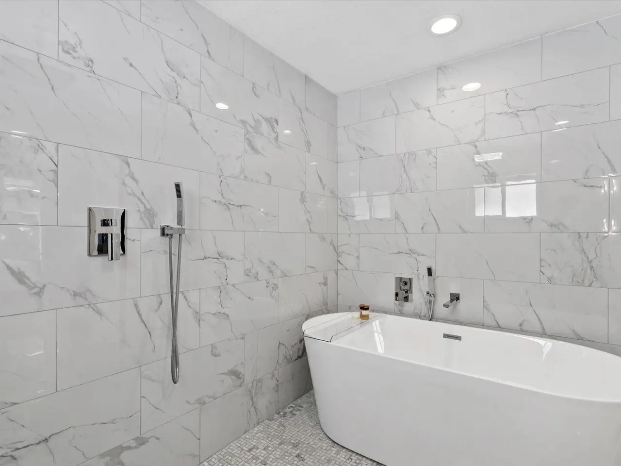 - Modern porcelain tile flooring