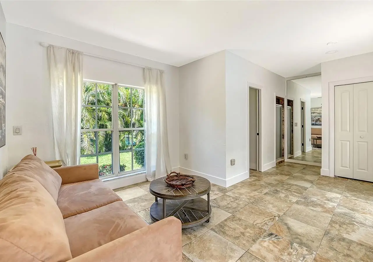 Tucked within the prestigious, gated enclave of Beneva Oaks, where centuries-old live oaks line meandering streets, this masterfully renovated home on a ½ acre lot offers incredible 2025 updates and a wonderful 4-bedroom, 3.5-bath, 1-story floor plan providing both grandeur and comfort across the expansive space. A circular drive framed by lush landscaping leads to the elegant entry of this modern residence, where refined upgrades blend seamlessly with timeless architectural features. Inside, travertine floors flow through the main living areas, while new designer carpet enhances the comfort of the bedrooms. The heart of the home is the extraordinary new eat-in kitchen featuring gleaming quartz countertops, crisp white wood cabinetry, stainless appliances including an induction cooktop, wide plank porcelain tile floor, and a custom tile backsplash. Accents like gold hardware, designer lighting, crown molding, and wide baseboards add the feel of luxury, while four sets of French doors connect the interior seamlessly with the lush exterior surroundings. An elegant dual-sided wood-burning fireplace with brick and tile surround and quartz and travertine hearths anchors the living and sitting areas, creating inviting spaces for conversation or quiet moments. With multiple entertaining areas designed for both intimate gatherings, grand-scale events or even a game of pool, the home's layout flows effortlessly from indoors to the screened lanai with paver deck, where a heated pool enhanced by Iconic Pools with sparkling new glass tile surface invites year-round enjoyment. The spacious primary suite, is a sanctuary unto itself, offering three walk-in closets with custom closet systems, and an extraordinary spa-inspired bath with bespoke tile work, frameless glass shower, gold fixtures, and a quartz-topped dual-sink vanity that exudes luxury. Two additional guest bedrooms enjoy new carpet, large closets, and generous natural light, while the newly redesigned guest bath impresses with design-forward flooring, quartz dual-sink vanity, and clean, modern finishes. The 4th bedroom can also be used as in-law suite, enjoying its own private French door entry and full bath with walk-in shower. The office with a custom built-in loft, closet, and a front facing window is ideal as a workspace, study, play, or creative escape. A chic updated powder bath adds further convenience. The thoughtfully designed laundry room features quartz countertops, utility sink, abundant cabinetry, and front-load GE Whirlpool washer/dryer. The oversized 2-car garage and beautifully landscaped grounds complete this exceptional property in one of Sarasota's most serene and sought-after neighborhoods. Located in a top rated school district, X flood zone and within close proximity to Sarasota's dining, shopping, culture, and the pristine Gulf of Mexico beaches, this exceptional property offers an unparalleled combination of design and craftsmanship in one of Sarasota's best-kept secret neighborhoods, presenting a rare opportunity to experience refined Florida living at its finest!