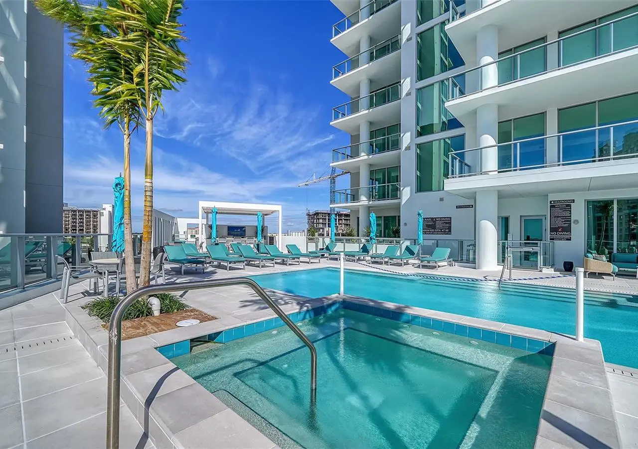 Prepare to be captivated by this absolutely stunning,12th-floor residence at Bayso, Sarasota’s most sought-after luxury tower at The Quay. With postcard worthy southern views of Sarasota Bay and the sparkling downtown skyline from every room, this extraordinary 2-bedroom plus den, 2.5-bath home offers nearly 1,600 square feet of refined sophistication and comfort. The moment you step inside, you’re greeted by a flood of natural light pouring through floor-to-ceiling glass, immediately drawing your eye to panoramic views that stretch endlessly across the bay and city. The elevated 20+ foot above sea level lobby sets the tone for the elegance that awaits above. Soaring 10-foot ceilings, porcelain tile flooring, and tastefully upgraded designer light fixtures throughout the home create a sleek and luxurious atmosphere. The spacious great room and dining area are the heart of the home; perfectly suited for entertaining, relaxing, or simply soaking in the view with your morning coffee or evening glass of wine. This is where everyday living transforms into something exceptional. Step outside to your oversized private terrace with glass railings and indulge in the beauty of Sarasota’s ever-changing skyline. The kitchen is a true showpiece, featuring European-inspired Italkraft cabinetry, glistening quartz countertops, a large center island with rollout drawers, premium Jenn-Air stainless steel appliances including an induction cooktop and double oven; making it ideal for both the everyday chef and the culinary enthusiast. The owner’s suite is a tranquil retreat, offering a spacious walk-in closet with custom built-ins and a spa-like bath complete with Grohe fixtures, double vanity with Robern recessed medicine cabinets, a separate water closet, and a glass-enclosed walk-in shower. The guest suite enjoys its own spectacular views, generous closet space, and a beautifully designed en-suite bath. A versatile den is outfitted with a custom wall unit with a queen-size Murphy bed, offering flexibility as a third bedroom, office, or private media space. A stylish powder room and an oversized utility room with full-size washer and dryer and abundant storage complete this perfectly designed residence. Bayso offers an unmatched array of resort-style amenities. Residents enjoy a 24/7 attended lobby, on-site management, and access-controlled security. The fifth floor is your personal oasis; featuring an elevated pool and spa deck over 60 feet above sea level, outdoor entertainment lounges, kitchen and grilling areas, the serene Splash Lounge, a state-of-the-art fitness center, movement studio, and a private dog park. There's even a formal club room with catering kitchen, co-working spaces, a boardroom for business meetings, secured Wi-Fi throughout all amenity spaces, and a mail room with package storage. The residence includes a premium assigned parking space in the private garage, climate-controlled storage, and there is also separate bicycle storage for the residents. All of this just steps from Sarasota’s thriving arts scene, award-winning dining, boutique shopping, and cultural venues; with the white sands of Lido Key, Longboat Key, and Siesta Key just minutes away. Whether you're seeking an elegant year-round home, a chic pied-à-terre, or a lock-and-leave retreat in one of Florida’s most desirable cities, this residence is your invitation to live the dream. Schedule your private tour today and experience the very best of luxury living at Bayso.