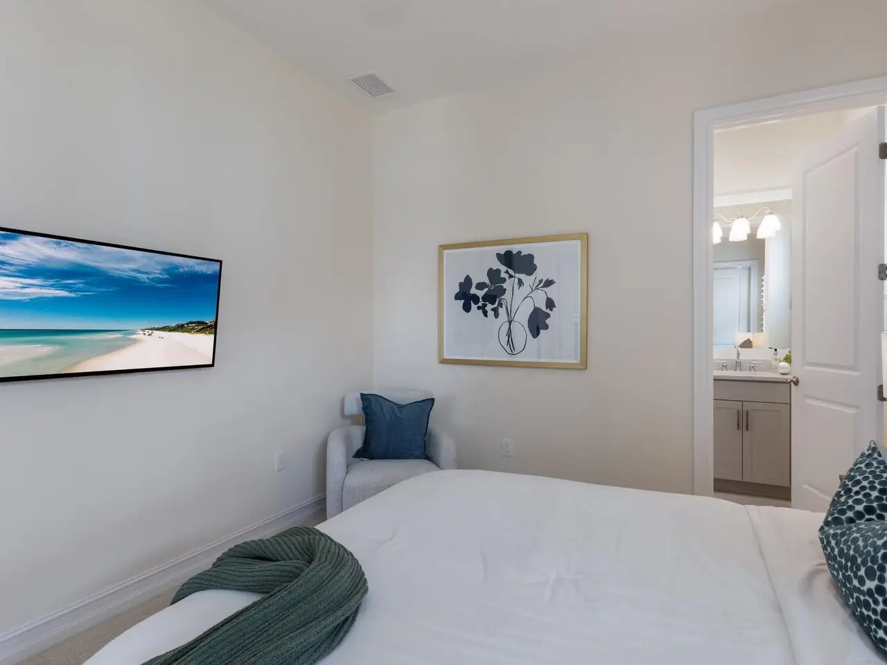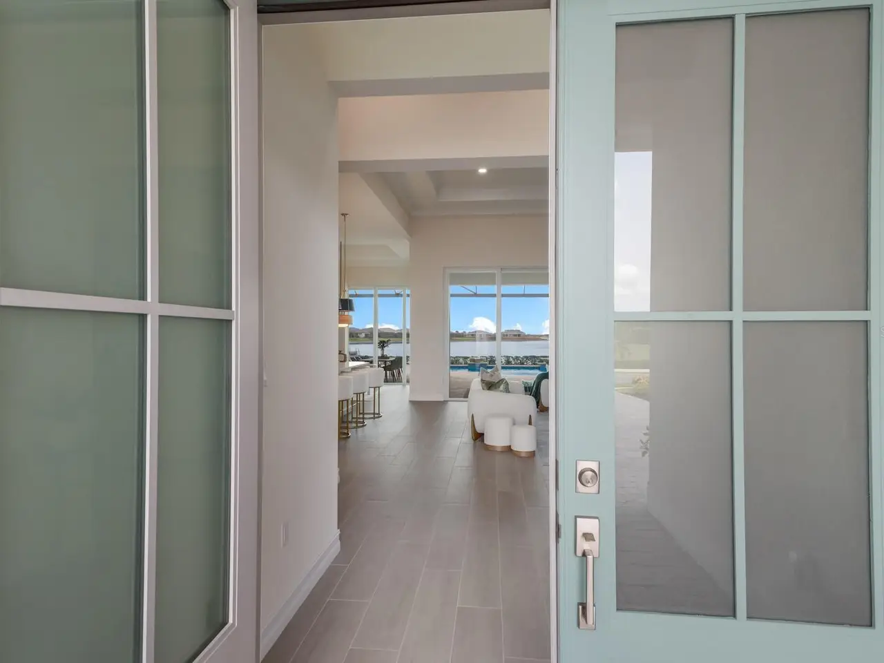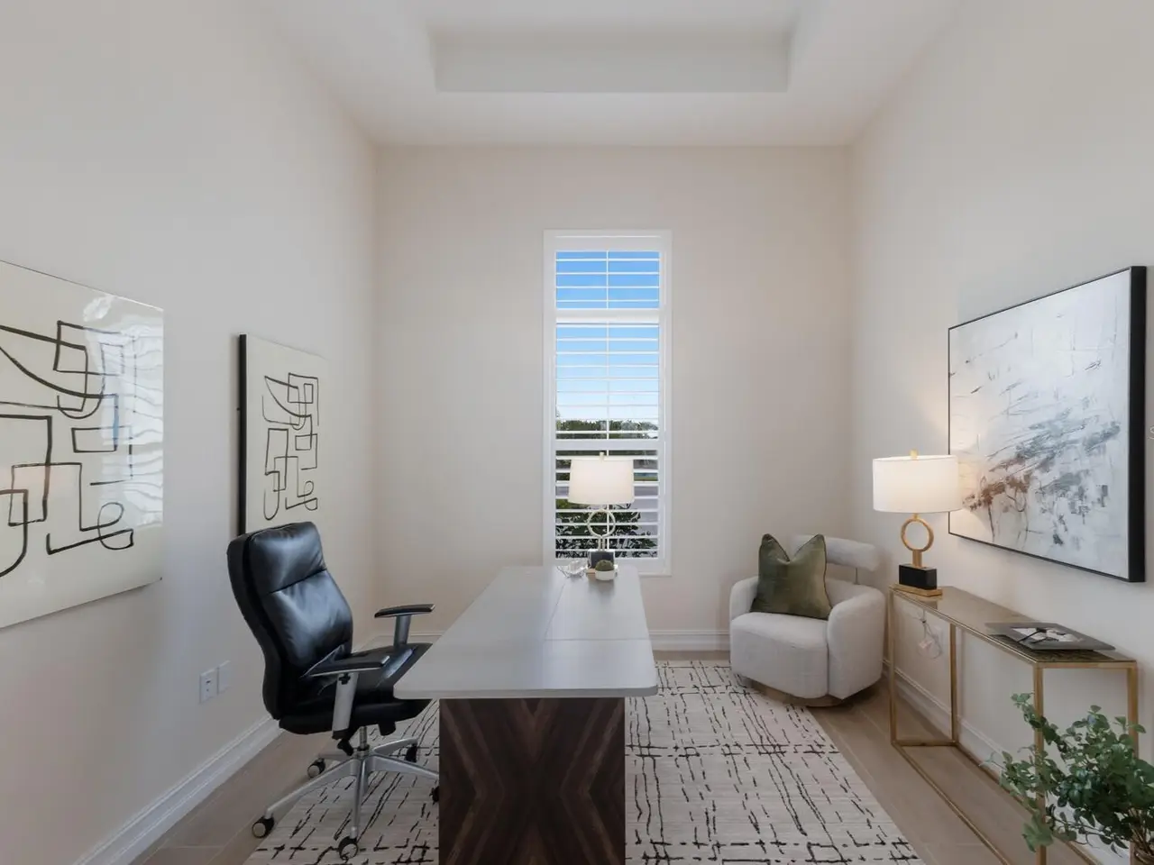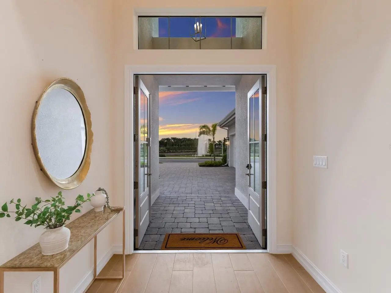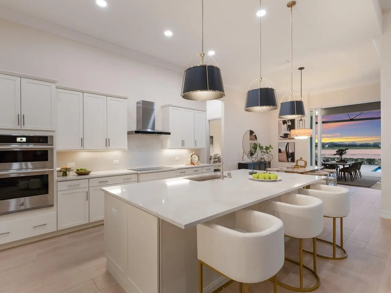 Superior long lake views and exceptional open indoor/outdoor living defines this Madison II residence built in 2024 positioned on a breathtaking southerly waterfront setting in Wild Blue at Lakewood Ranch showcasing generously sized spaces, vibrant clean lines, volume ceilings, and the sought-after far away distance from the new construction activity. A brilliantly planned layout, this three bedroom residence boasts 3,054 square feet of one-story design, a premium lake view, and a vastly extensive outdoor area with abundant open and under cover spaces, travertine deck scape, pre-plumbed for an outdoor kitchen, panoramic screen, and a PebbleTec heated pool/spa with sun shelf just completed in 2025. Seamlessly connecting this resort-styled lanai to the oversized great room, kitchen, and dining areas are the 10-foot IMPACT GLASS doors into an invitingly stylish living area adorned with plank porcelain tile and soaring ceilings. Chefs and guests alike will delight in the beautifully appointed kitchen with stainless steel JennAir appliances, induction cooktop (and also plumbed for natural gas), sprawling quartz counters, oversized island, wood cabinetry, and a walk-in pantry. Relax and unwind in the elegant owner’s retreat positioned on a private wing, offering two oversized walk-in closets, direct lanai access via French doors, and a luxuriously appointed spa-like bath with separate vanities, oversized shower and separate soaking tub. Overnight visitors will be right at home in the two additional guest ensuites, each with their own private full baths. Behind double French doors is a voluminous bonus room, also with its own private full bath offering a multiple array of flex living options. Additionally the residence offers a spacious study/den off the great room with double entry doors and soaring 15-foot ceilings. Other highlights of this 4,770 total square foot newly built residence includes a conveniently located half bath off the great room, impact windows/doors/sliders, perfectly sized laundry room with cabinetry and sink, gutters all around home, reverse osmosis in the kitchen, whole home water softener, an oversized three car garage, and even lawn and landscape maintenance is included. Wild Blue will provide its residents a resort-styled 25,000 square foot clubhouse with and an on-site lifestyle director boasting concierge-level amenities to include a fitness center with gym and studio, golf simulator and putting green, dining options for both indoors and out, and a theatre facility. Wild Blue residents also have access to the recently completed hub at Midway Park that offers Wild Blue and Shellstone residents tennis, pickleball, basketball courts, kayak launch, walking trails, dog parks, playground, pro shop, and pavilions. Ideally located in Waterside, renowned for its vibrant Lakewood Ranch lifestyle surrounded by dining, shopping, polo, golf, community events, Waterside Place, UTC Mall, and minutes to SRQ Airport and the beaches of Sarasota.