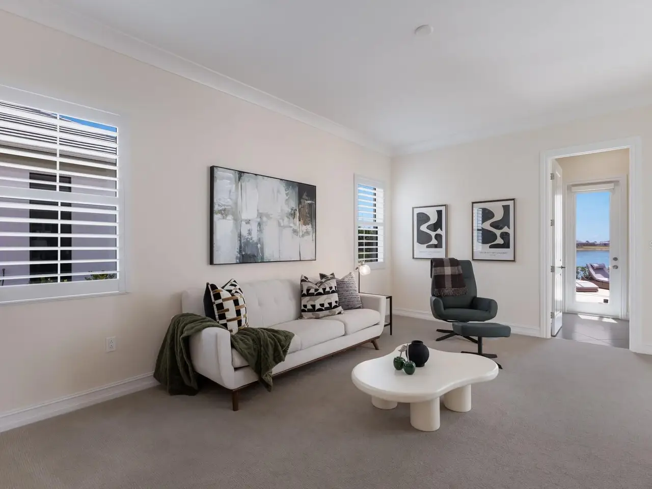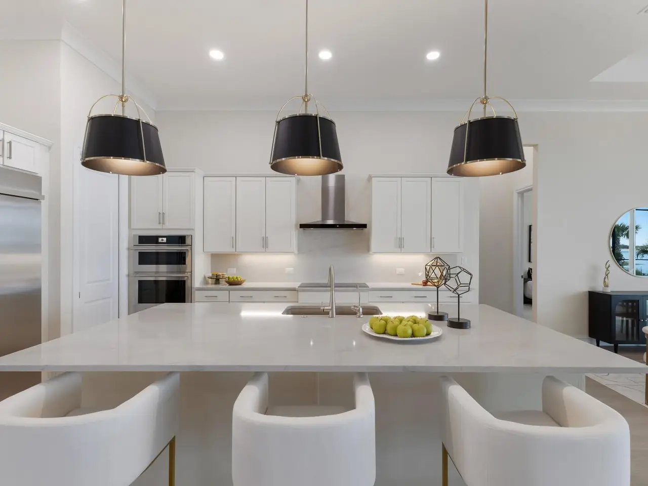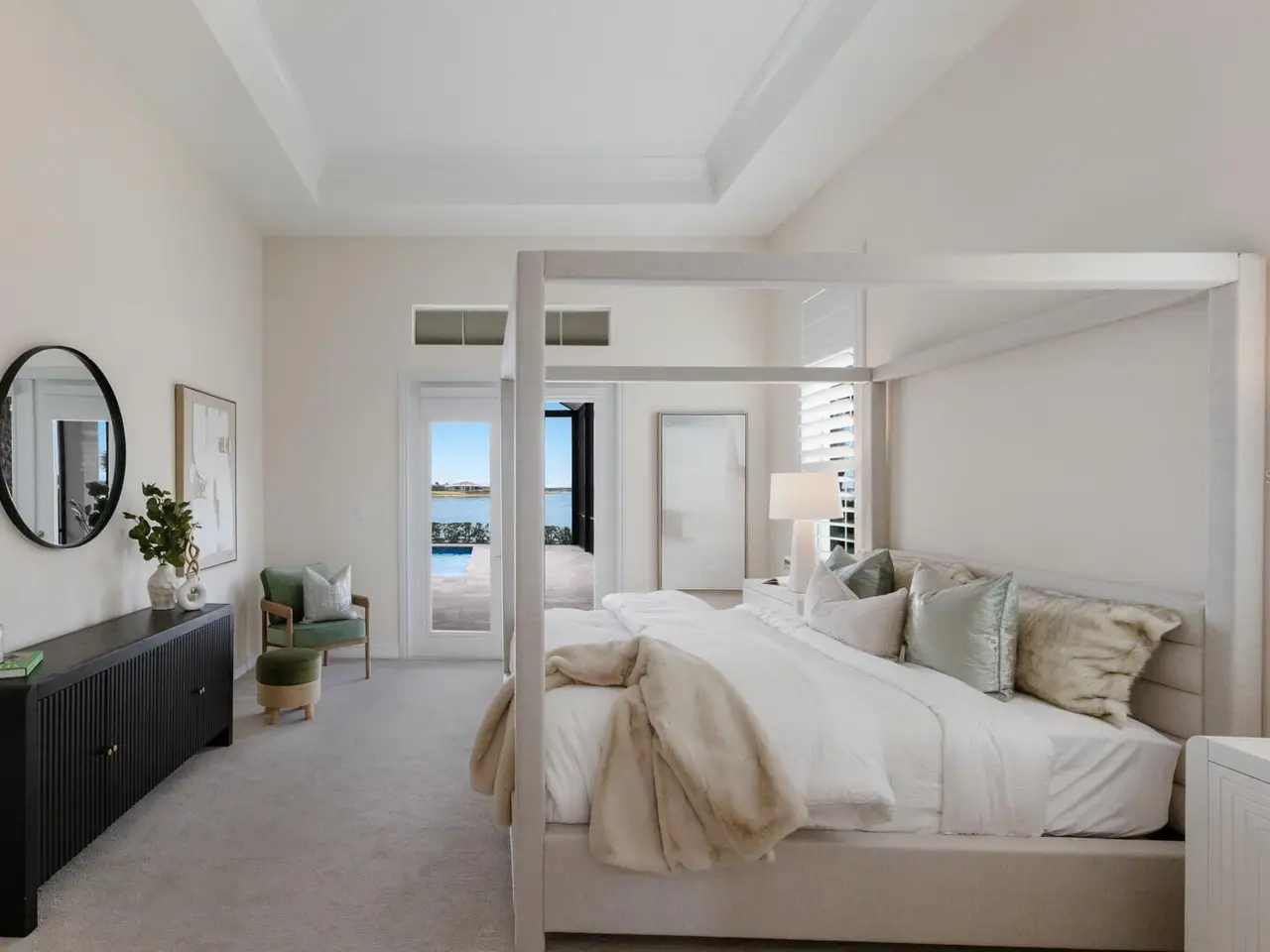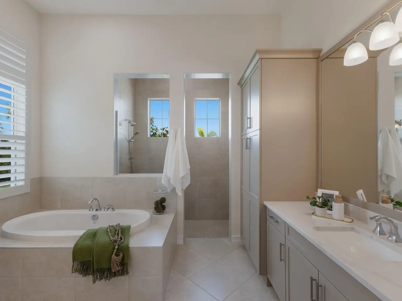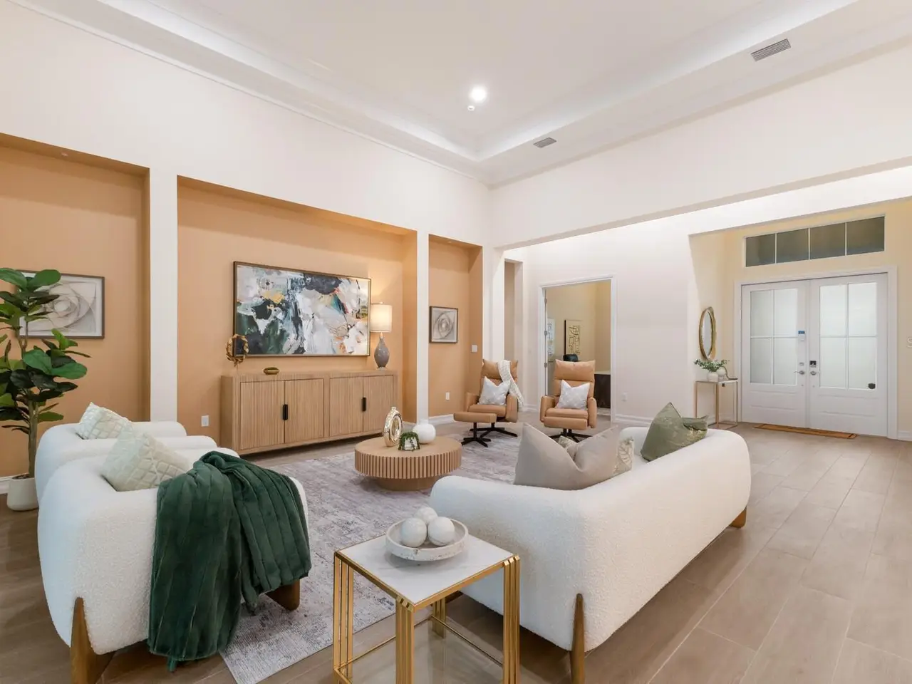 Superior long lake views and exceptional open indoor/outdoor living defines this Madison II residence built in 2024 positioned on a breathtaking southerly waterfront setting in Wild Blue at Lakewood Ranch showcasing generously sized spaces, vibrant clean lines, volume ceilings, and the sought-after far away distance from the new construction activity. A brilliantly planned layout, this three bedroom residence boasts 3,054 square feet of one-story design, a premium lake view, and a vastly extensive outdoor area with abundant open and under cover spaces, travertine deck scape, pre-plumbed for an outdoor kitchen, panoramic screen, and a PebbleTec heated pool/spa with sun shelf just completed in 2025. Seamlessly connecting this resort-styled lanai to the oversized great room, kitchen, and dining areas are the 10-foot IMPACT GLASS doors into an invitingly stylish living area adorned with plank porcelain tile and soaring ceilings. Chefs and guests alike will delight in the beautifully appointed kitchen with stainless steel JennAir appliances, induction cooktop (and also plumbed for natural gas), sprawling quartz counters, oversized island, wood cabinetry, and a walk-in pantry. Relax and unwind in the elegant owner’s retreat positioned on a private wing, offering two oversized walk-in closets, direct lanai access via French doors, and a luxuriously appointed spa-like bath with separate vanities, oversized shower and separate soaking tub. Overnight visitors will be right at home in the two additional guest ensuites, each with their own private full baths. Behind double French doors is a voluminous bonus room, also with its own private full bath offering a multiple array of flex living options. Additionally the residence offers a spacious study/den off the great room with double entry doors and soaring 15-foot ceilings. Other highlights of this 4,770 total square foot newly built residence includes a conveniently located half bath off the great room, impact windows/doors/sliders, perfectly sized laundry room with cabinetry and sink, gutters all around home, reverse osmosis in the kitchen, whole home water softener, an oversized three car garage, and even lawn and landscape maintenance is included. Wild Blue will provide its residents a resort-styled 25,000 square foot clubhouse with and an on-site lifestyle director boasting concierge-level amenities to include a fitness center with gym and studio, golf simulator and putting green, dining options for both indoors and out, and a theatre facility. Wild Blue residents also have access to the recently completed hub at Midway Park that offers Wild Blue and Shellstone residents tennis, pickleball, basketball courts, kayak launch, walking trails, dog parks, playground, pro shop, and pavilions. Ideally located in Waterside, renowned for its vibrant Lakewood Ranch lifestyle surrounded by dining, shopping, polo, golf, community events, Waterside Place, UTC Mall, and minutes to SRQ Airport and the beaches of Sarasota.