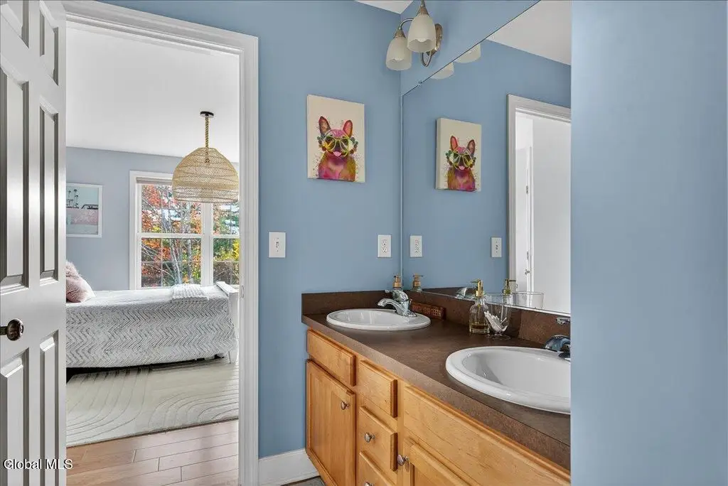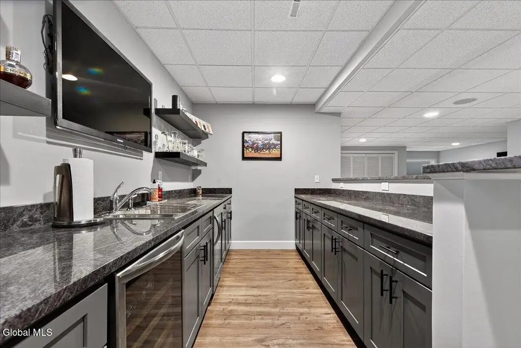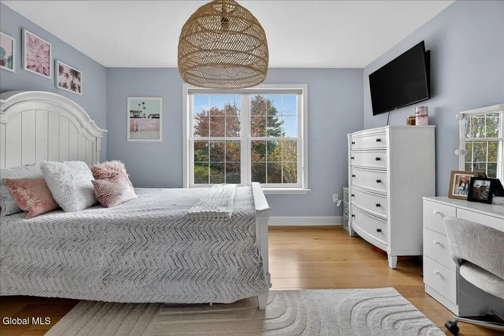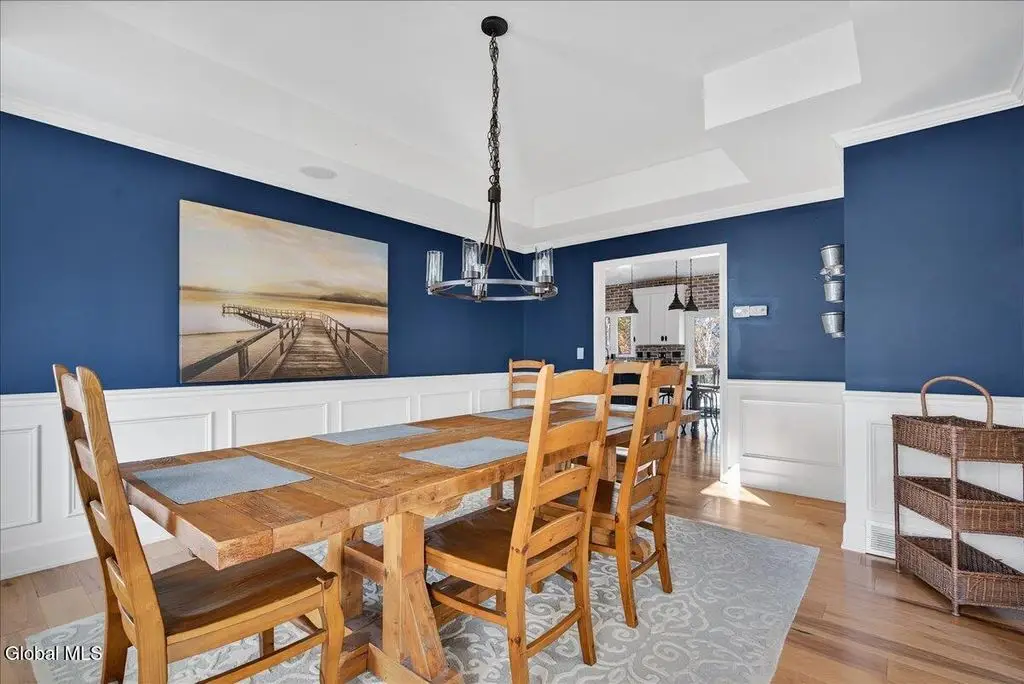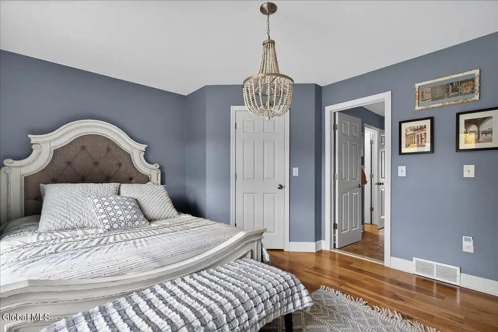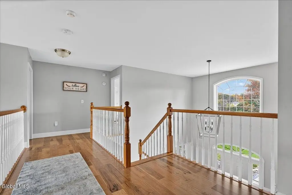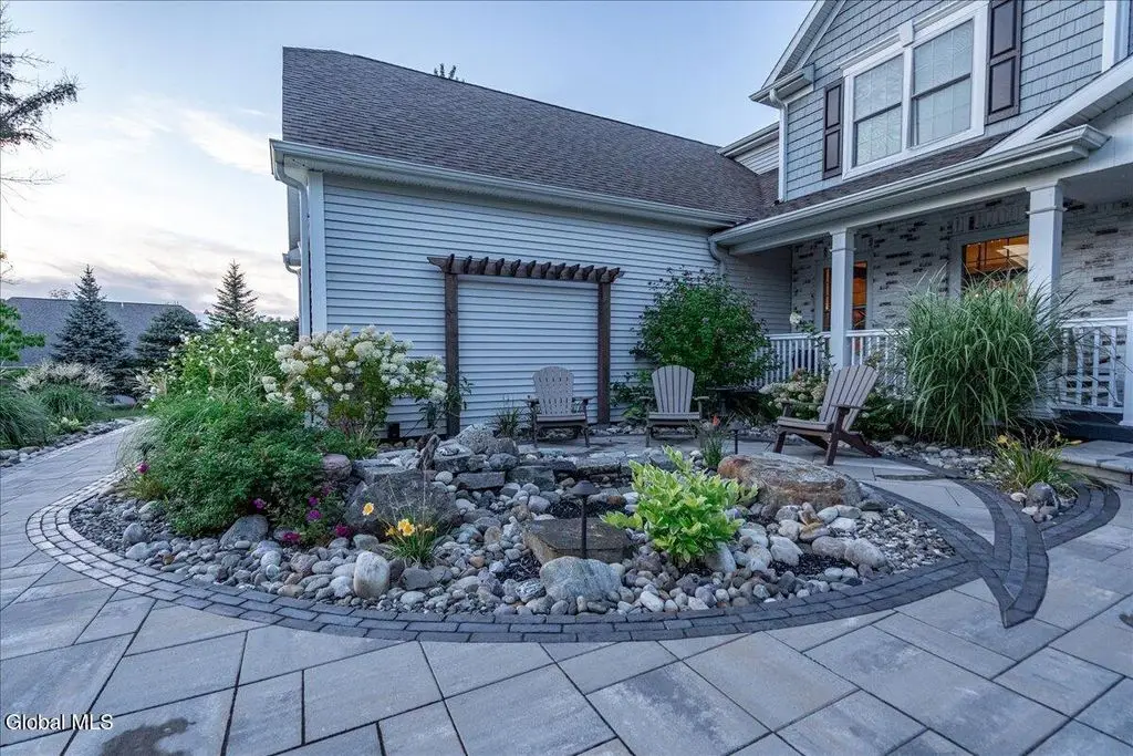 Welcome to this exceptional statement home in the prestigious Winding Brook Estates, where timeless elegance meets modern indulgence. Situated on a beautifully landscaped 1.98 acre lot, this custom-built residence offers unmatched privacy, superior craftsmanship, and resort-style amenities. Property highlights include over 4000 sf of luxury w/ 5 bedrooms, 4.5 baths, hardwood floors and surround sound throughout. Stroll by the beautifully landscaped entry path and serene water feature to the grand two-story entry and expansive open floor plan. You'll appreciate your own corner office, private and stylish. Be amazed by the massive two-story brick accent wall and gas fireplace in the great room. The gorgeous modern kitchen features an incredible butcher block center island w/seating for 8, granite countertops, farmhouse sink, double oven, wine fridge, brick accents and custom cabinetry. The elegant dining room boasts a tray ceiling, wainscoting, and chair rail detailing. First-floor guest suite with full bath. Plus convenient mud room, laundry and guest half bath. Upstairs the spacious primary retreat rewards you with luxury and style. Indulge in the his-and-her walk-in closet or take a spa day in the jetted soaking tub. In addition there's a dual sink vanity, walk-in shower, private throne room and abundant natural light. Three additional upstairs bedrooms; 2 with Jack & Jill bath and generous closet space, one with private bath. Fully finished lower level with granite entertainment bar, home theater, bonus office/den, and egress window. The outdoor oasis features a Saltwater inground pool and hot tub surrounded by lush landscaping. Custom paver patio with multiple seating areas and built-in covered kitchen w/BBQ and fridge. Gas firepit for year-round gatherings. Surround sound system extends seamlessly from inside to outdoors. Lawn sprinklers in front & back for easy maintenance. A short drive from downtown Saratoga Springs, minutes to Saratoga Lake