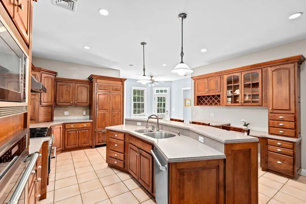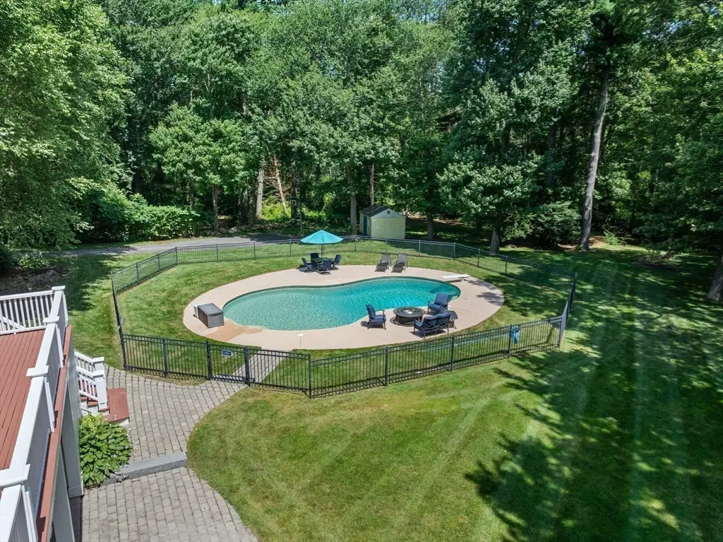 A circular drive leads to this stunning colonial bordered by stone walls, flowering trees. This exceptional property sits on 1.84 acres that offers an enormous amount of privacy! Sit on you farmer's porch and enjoy mornings or evening tucked away on your private deck overlooking your lush lawn and the spectacular heated inground pool. A magnificent 2 story foyer greats you with a formal dining and living room, a perfect layout for holiday entertaining. Continue on to the casual family room with many built ins, and a gorgeous fireplace. If you work from home there's a private home office just steps away. Enjoy 3 levels of living with 5 bedrooms, 4 1/2 baths plus a gourmet kitchen with stainless steel appliances. Finishing touches include crown moldings, wainscoting, hardwood floors, soaring ceilings, and 2 fireplaces.The lower level is amazing with 3 finished rooms, a media room, pool room, game room, and full bath, perfect in-law or Au Paire suite with a private entrance. A must see!