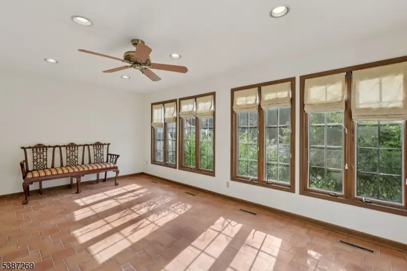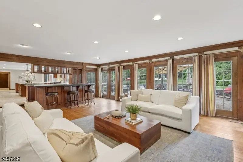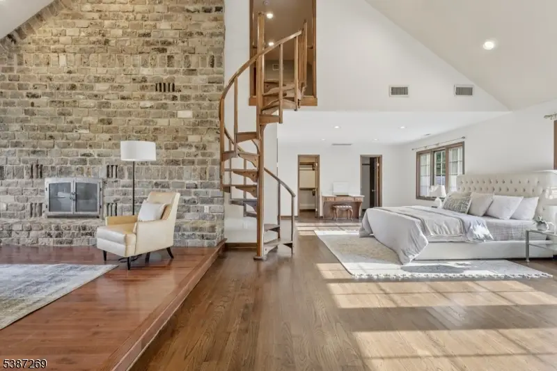 This exceptional 5-bedroom, 5.1-bath estate is a rare find, blending architectural interest with inspired design and functionality. Nestled on a quiet cul-de-sac in one of Scotch Plains' most desirable neighborhoods, it sits on 1.34 park-like acres with amenities for entertaining and everyday living. A striking stone exterior opens to expansive rooms, hardwood floors, five fireplaces, and a dramatic two-story living room with a spiral staircase to a wrap-around library. The chef's kitchen, renovated in 2019, features a 60" Lacanche range imported from France, dual Sub-Zero refrigerators, two dishwashers, and custom cherry cabinetry. The luxurious primary suite offers dual walk-in dressing closets, a spacious sitting area retreat with fireplace, and a private spiral staircase to a loft, creating a true spa-like escape. Multiple formal and informal living spaces make gathering easy. The third floor and finished lower level provide additional retreats, including two bedrooms, a full kitchen, wet bar, full bathroom, entertainment areas, game rooms, exercise room, and separate garage entrance. Outdoors, enjoy a heated in-ground pool and spa, three patios, a gazebo with lighting and integrated sound system, professional landscaping, and privacy on all sides. Two garages accommodate five cars, with the detached garage offering a workshop and additional storage.