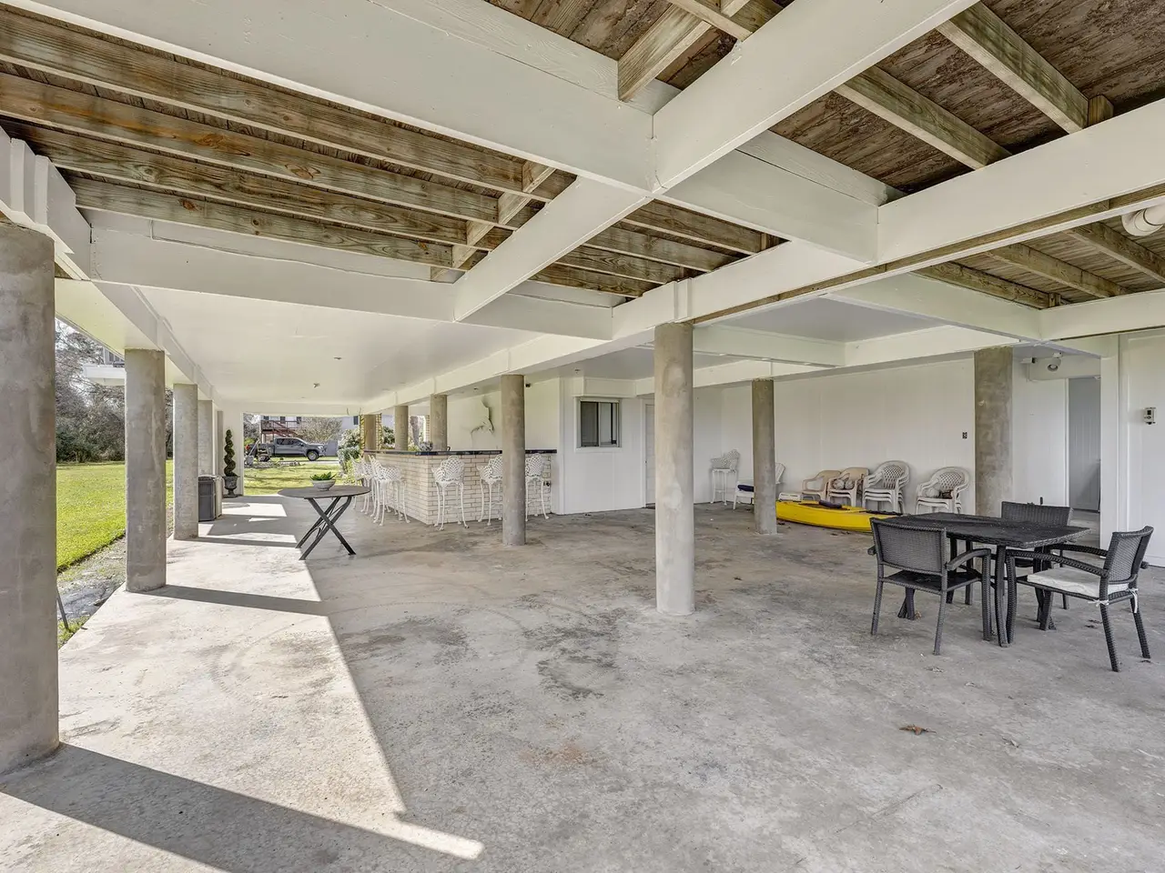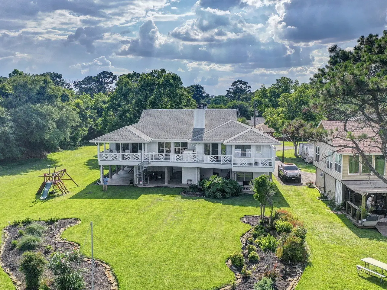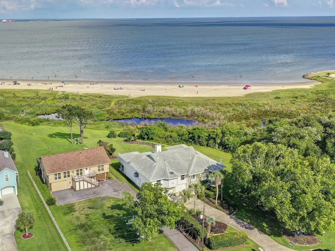 Rare and special find - a beachfront paradise nestled along the pristine shores of Galveston Bay! This designer-owned & recently renovated (2024) property offers unparalleled beachfront living w/direct access to a secluded stretch of sand! The light-filled home offers a wonderful open floorplan w/spectacular water views from almost every room! The home includes an elevator & the sliding doors open to breathtaking ocean views, inviting the outside in. This special property is ideal for entertaining w/a beautiful porch overlooking the water & a wonderful outdoor kitchen. Constructed on robust concrete piers with electric storm shutters, this waterfront oasis is as sturdy as it is stunning. Living in this wonderful neighborhood comes with a touch of history as it is best known for being the home of John Harris, the namesake of Harris County. You won't want to miss an opportunity to tour this rare & special property just a short drive from downtown Houston! All info per Seller.