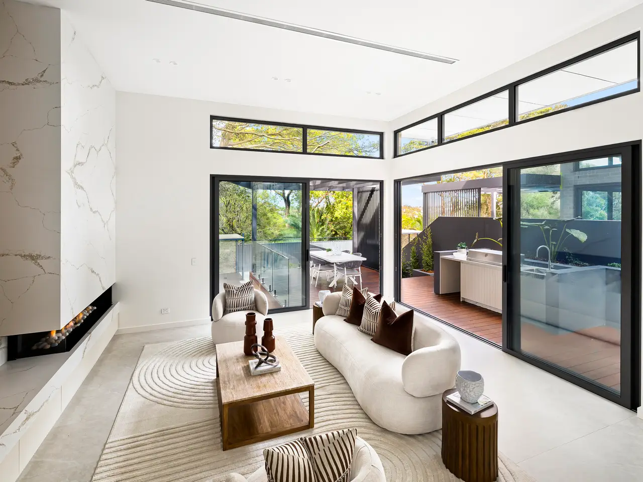 Celebrating the latest in contemporary innovation with flawless design, high-spec finishes and effortless indoor/outdoor integration, this magnificent freestanding residence has been crafted to deliver the pinnacle of designer sophistication and relaxed entertaining. Spanning multiple split levels with lift access to all floors, it showcases extensive glass-wrapped living spaces, a fully integrated designer island kitchen with premium Gaggenau appliances, and two opulent bedrooms with private ensuites. Curated with uncompromising attention to detail, the interiors blend stone and timber finishes with bespoke appointments and state-of-the-art inclusions to create an atmosphere of refined elegance. A private entertainer's deck extends seamlessly from the living domain, where a covered stone wet bar with built-in barbecue forms the focal point against a backdrop of leafy district outlooks and scenes of Middle Harbour. Placed on a 597sqm parcel of landscaped, low-maintenance gardens with a sparkling pool adjoined by a cabana, this world-class sanctuary enjoys an exclusive setting within a short stroll of harbourside parkland, Seaforth Village and Seaforth Public School, and only minutes from Manly Beach and the Sydney CBD. - Double-height entrance foyer with a stone catcall bench lined with a feature glass wall - Sleek tiled flooring, high ceilings and soaring raked ceilings cover the living spaces - Sweeping living space with a gas log fireplace overlooked by a banquet-sized dining room - An indoor garden and stairs divide the living and dining spaces, stacked glass doors open to the deck - Covered deck with a stone wet bar and barbecue extends to an open deck with a water view - Deluxe Quantum Zero-crafted stone kitchen with a four-seat breakfast or cocktail island bench - Pitt gas cooktops, Gaggenau combi-ovens and integrated dishwasher, integrated fridge - Enormous upstairs family room with sunny clerestory windows, sun-washed north balcony - Spacious bedrooms with built-ins, guest bedroom with ensuite, exquisitely crafted bathrooms - Palatial main bedroom with a walk-in robe, ensuite and expansive leafy district views - Auto double garage with epoxy flooring and internal access, video intercom and ducted air-con