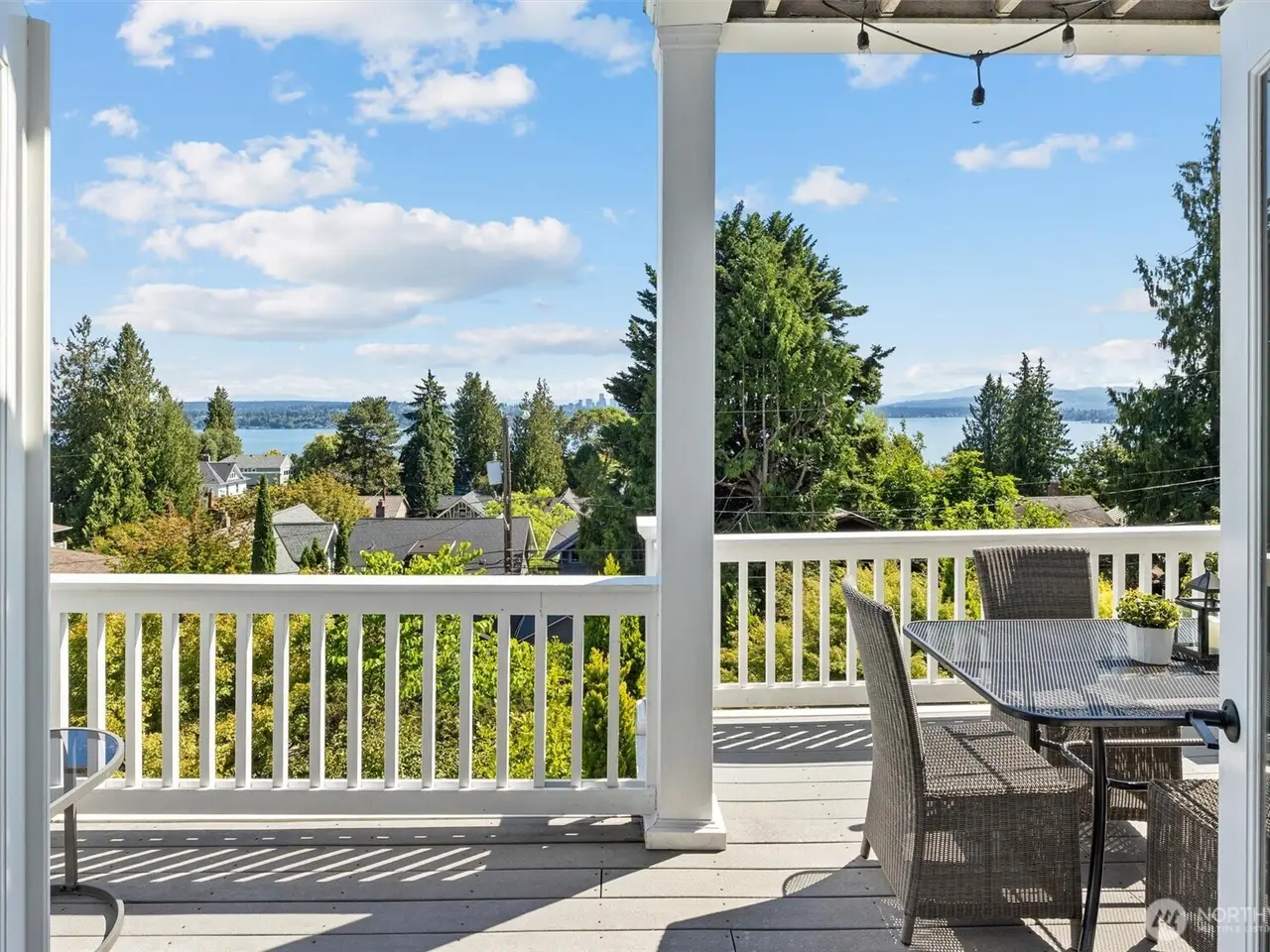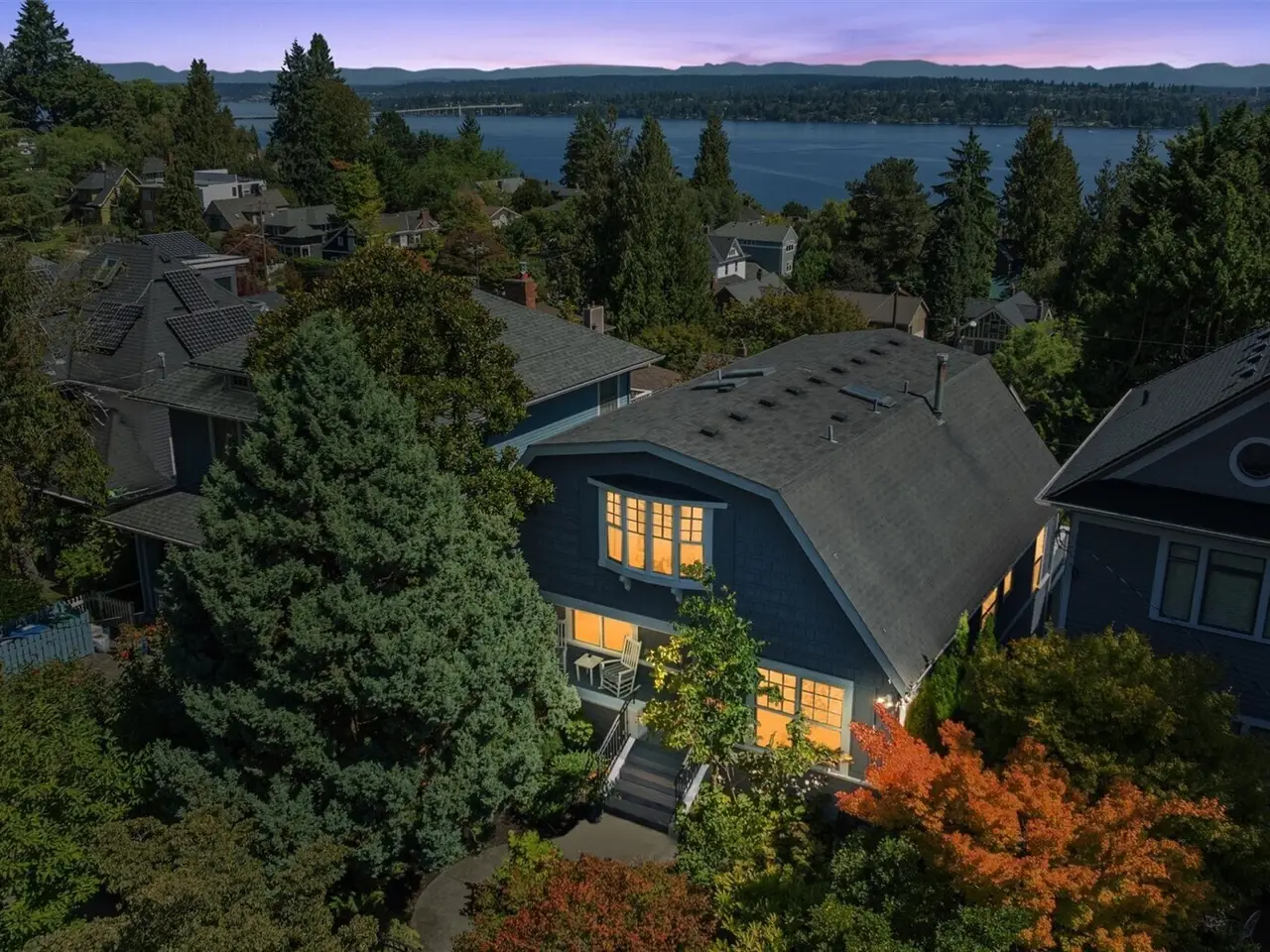In Madrona Heart with gorgeous views! This 1911 Traditional has a smashing blend of old and new. High ceilings, gracious formals, multiple French Doors, fir and hardwood floors, multiple decks and rocking-chair front porch. Extensively renovated with new professional kitchen, new bathrooms, newer furnace, air conditioning, three skylights, two gas fireplaces and lots of new hardware and fixtures. Full primary suite with private deck and 2nd bed and bath on top floor. Lower is MIL/ADU ready with rec room and en suite bedroom. Setting is street-to-street lot, collector-level gardens stroll down to 38th. Absolutely beautiful property in a great in-city pocket so close to Madrona cafes/shops/restaurants. Easy access to downtown Seattle, UW and eastside too. Get ready to fall hard.