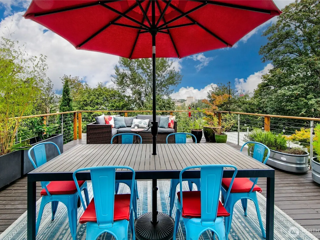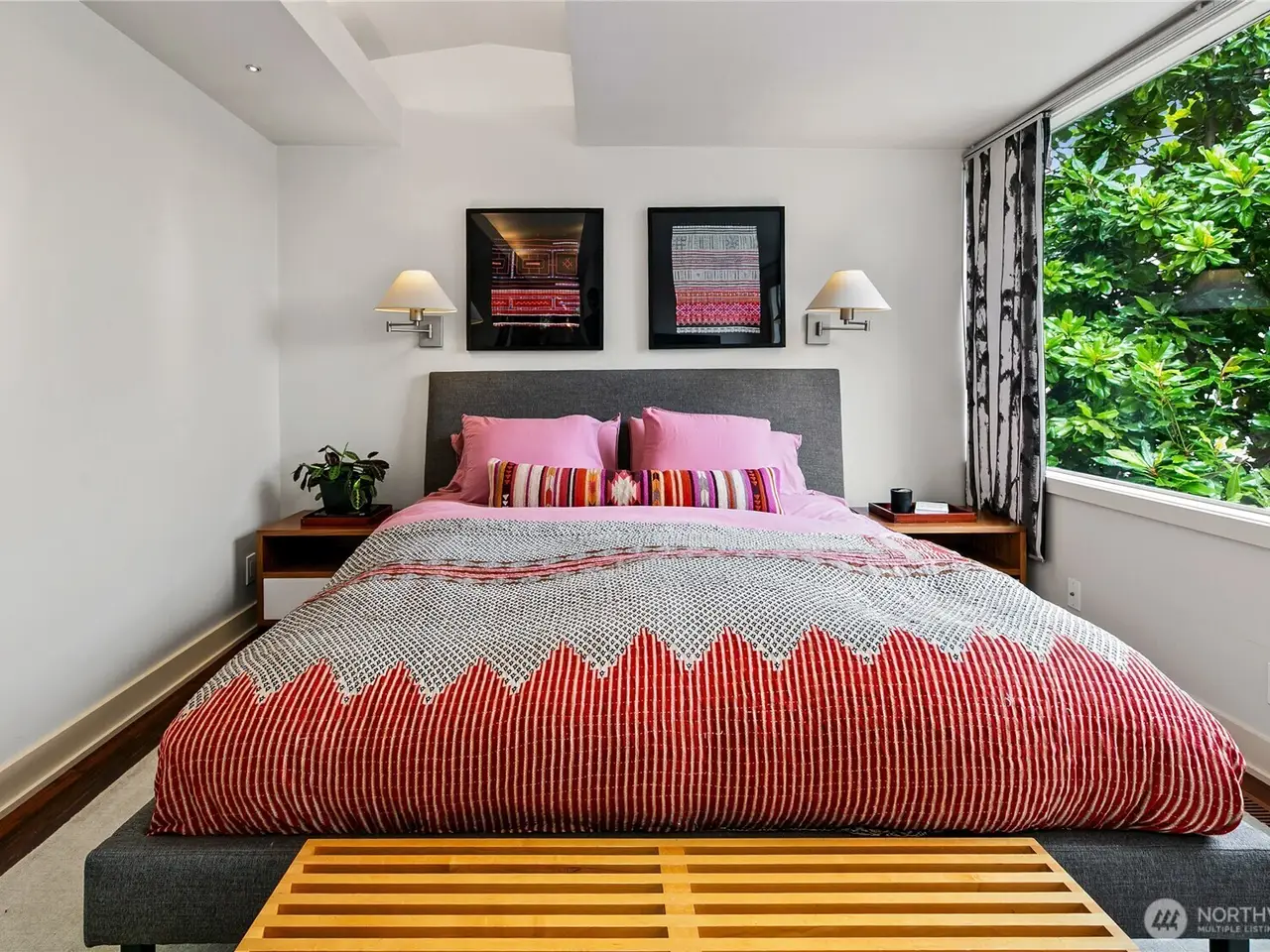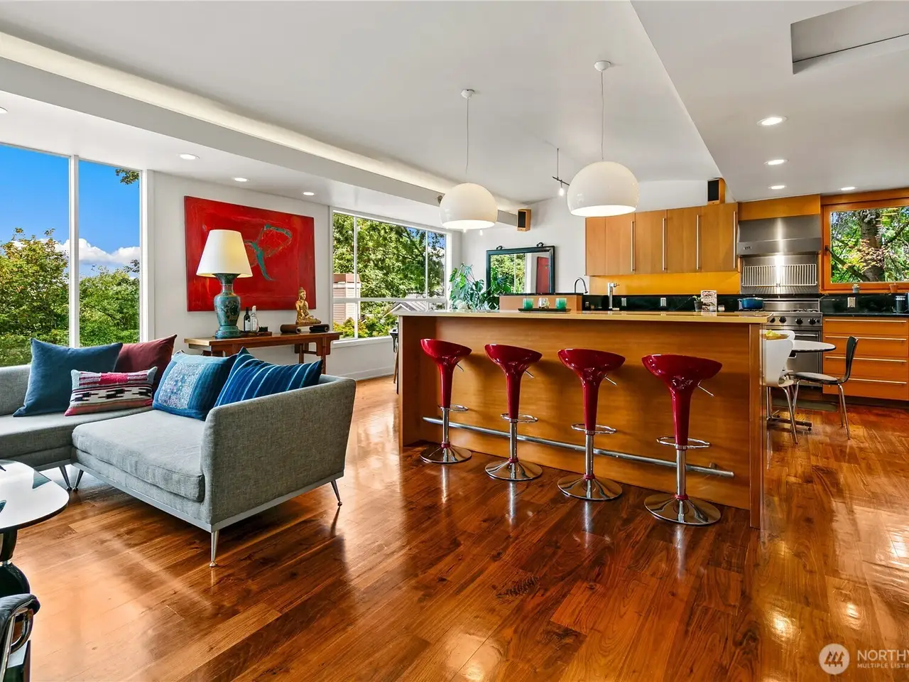 Live out Olmstead's dream in Interlaken Park. One of five distinguished residences in a private enclave, this custom tree-top contemporary designed by PNW architect Jake Lounsbury is brilliantly sited for privacy, effortless parkland access and seasonal views of Portage Bay. Entertain in the renovated chef's kitchen, expansive great room and grand deck. The open floorplan offers flexible living with sumptuous primary suite on the main level and self-contained guest suite with private patio. Finishes include vertical grain fir, walnut hardwoods, granite entry and fireplaces. Capacious integrated 2-car garage with abundant guest parking. Gateway to trails, pristine wildlife habitats, amid bustling Capitol Hill culture. Minutes to Downtown.