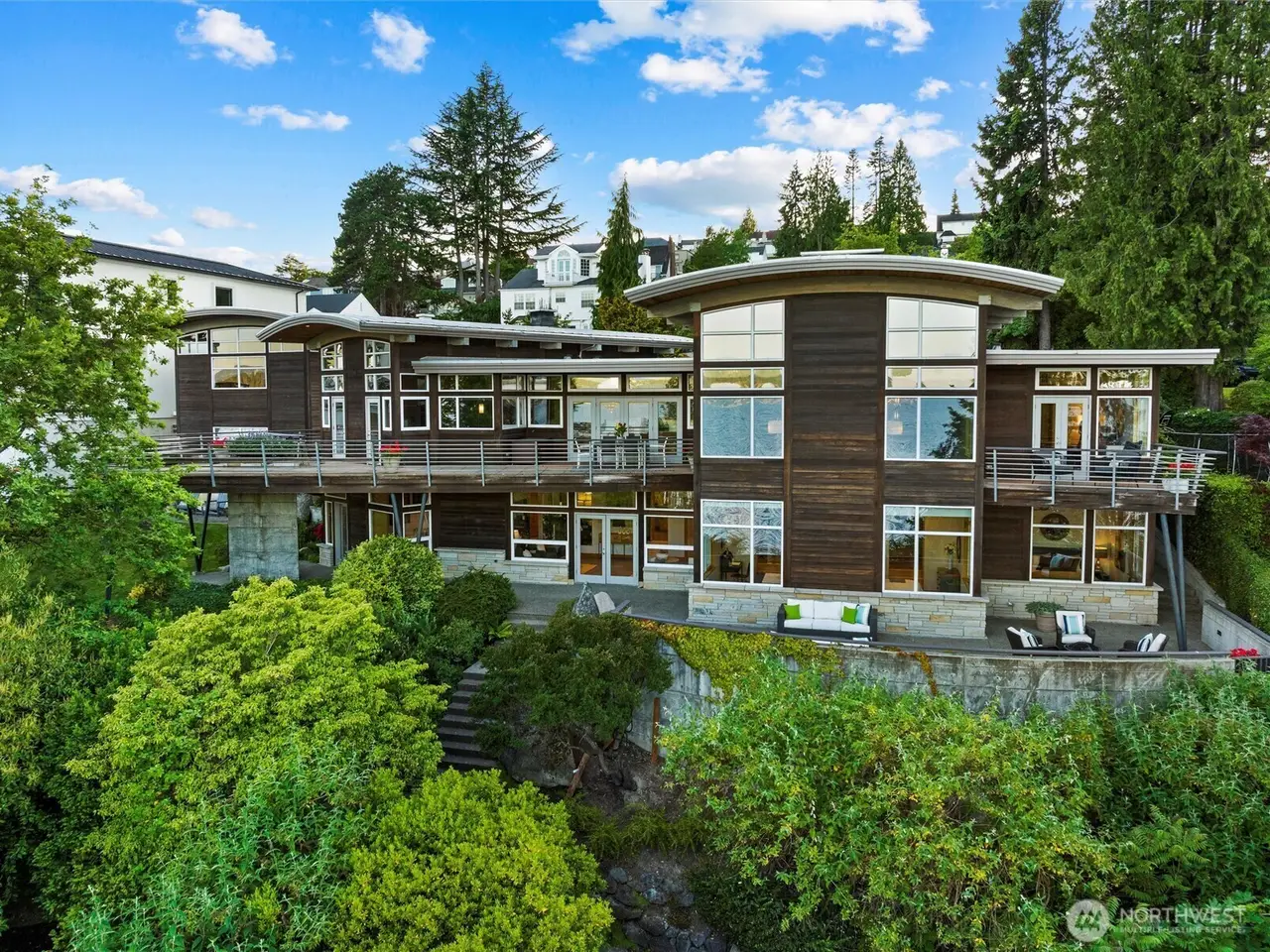 Truly exceptional signature Laurelhurst waterfront estate with 155 feet of prime Lake Washington waterfront on 1.17 acres! Architecturally significant 6,488 home with elegant atrium entry built around huge standing granite stone monolith, custom barrel ceilings and walls of windows capturing sweeping, panoramic views of the sparkling waters, Mount Rainier, golden sunrises over the Cascade Mountains and Lake Washington's never-ending maritime performances from nearly every room. Open and light filled custom 2000 built masterpiece features 5 view bedrooms and 5.5 baths, soaring ceilings, unique spaces and finishes with Northwest wood finishes, expansive view decks and patios, and 4 car detached garage. Incredibly lush, arboretum-like grounds with mature species plantings, imported boulders and beautiful winding walkways to level lakeside gardens, water's edge step in cove and frontage with 95-foot private dock all on a double lot. One-of-a-kind subterranean tunnel (perfect wine cellar?) amongst many other custom features and spaces that are all part of the amazing potential of this special offering. A+ location near renowned Laurelhurst Beach Club, just a few minutes to U-Village and world class shopping and wonderful commute to eclectic Seattle and Bellevue shops and restaurants. Don't miss this rarest of opportunities to own one of the great Laurelhurst waterfront retreats!