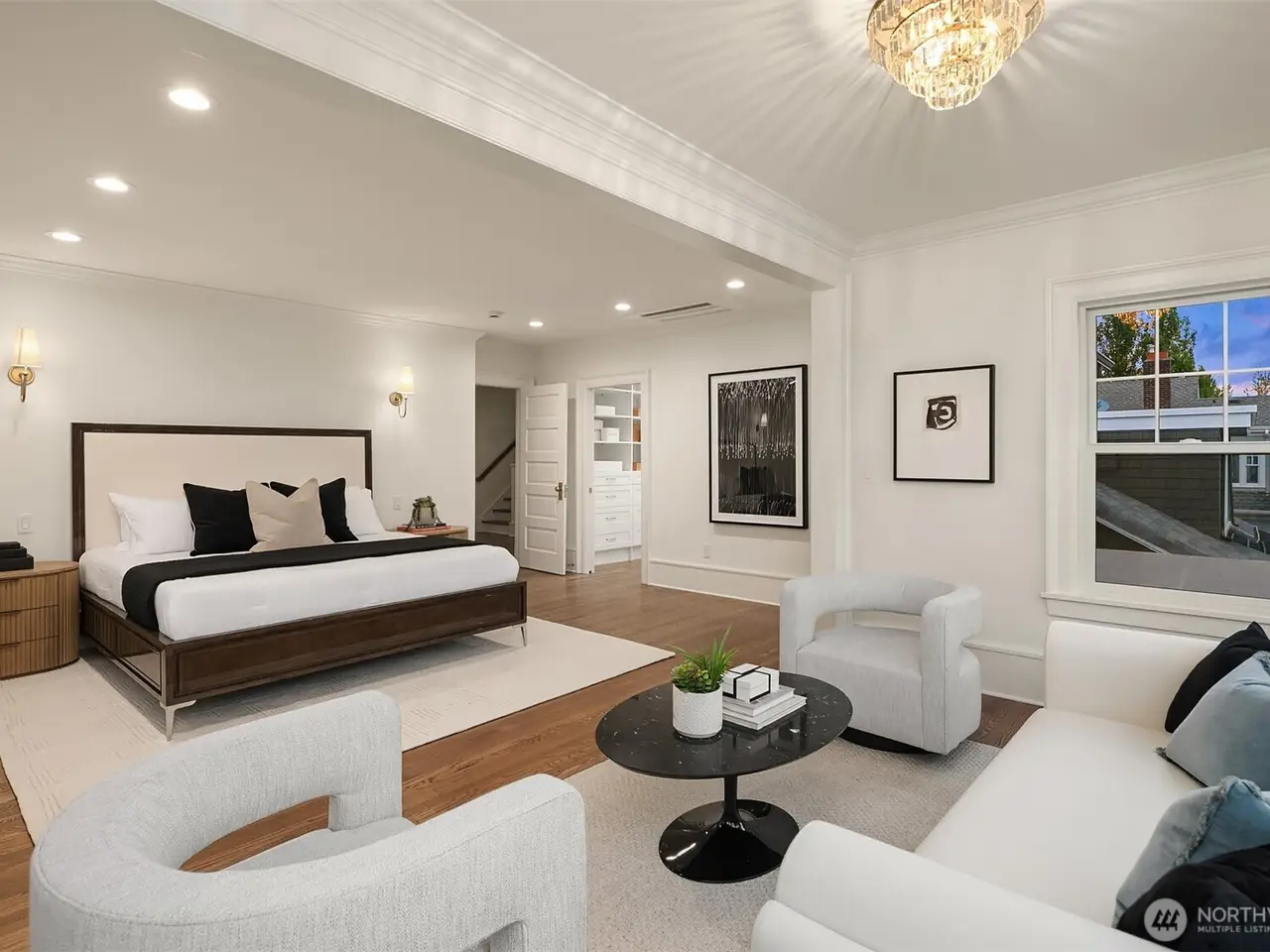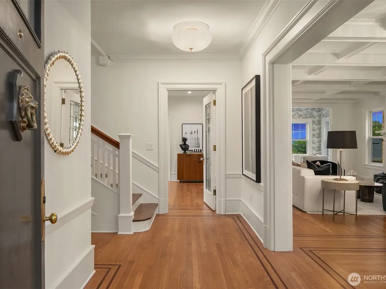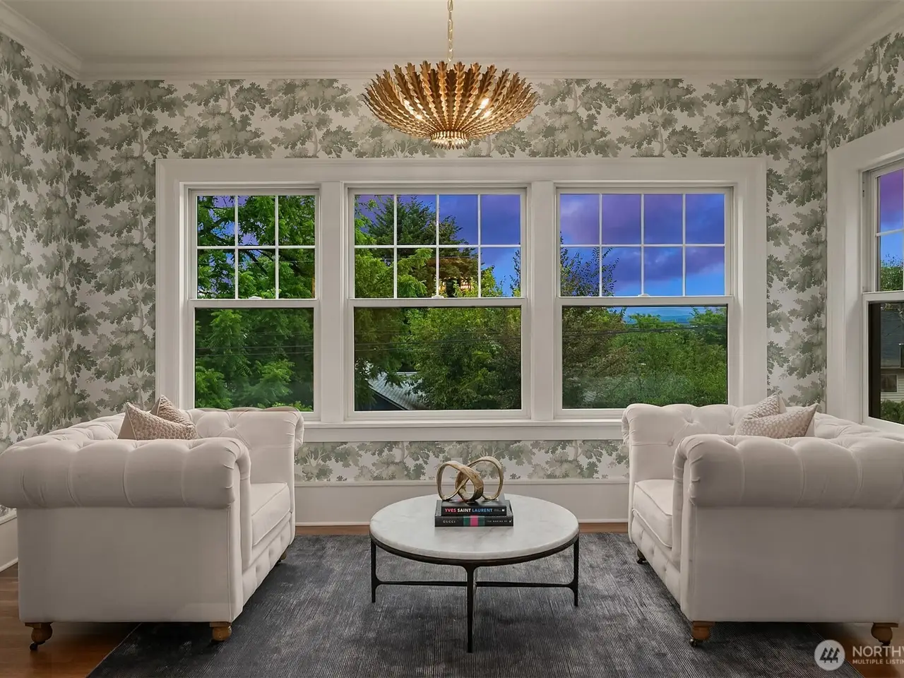 Historic North Capitol Hill residence seamlessly balances timeless charm with modern luxury. Thorough renovation showcases exquisite craftsmanship and careful attention to preserving home’s character. Sun-drenched interior spaces highlighted by views of Lake Washington and Cascades. Expansive living/formal dining area provides the stage for effortless entertaining. Culinary enthusiasts will enjoy open chef's kitchen with premier appliances and finishes. True sanctuary offered by spacious primary bedroom suite including soaking tub. Finished lower level is bright with large media room and guest bedroom suite. Covered patios overlook backyard with high hedges for privacy. Near parks and amenities of North Capitol Hill.