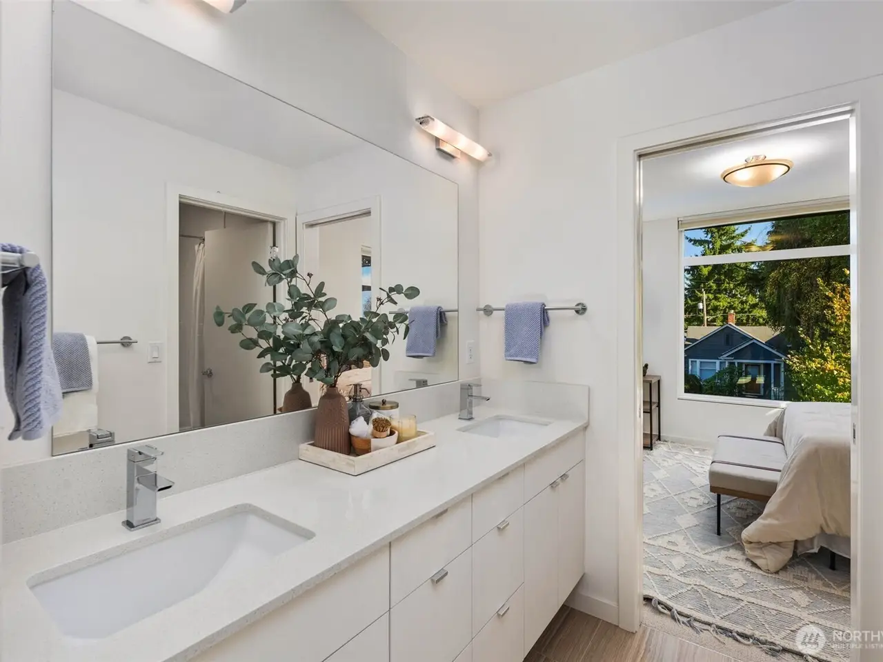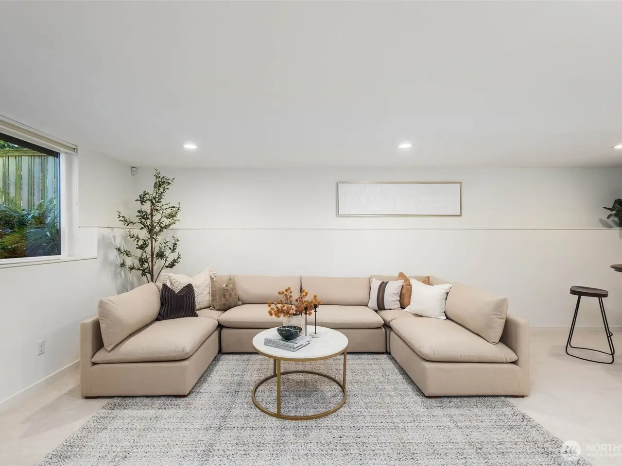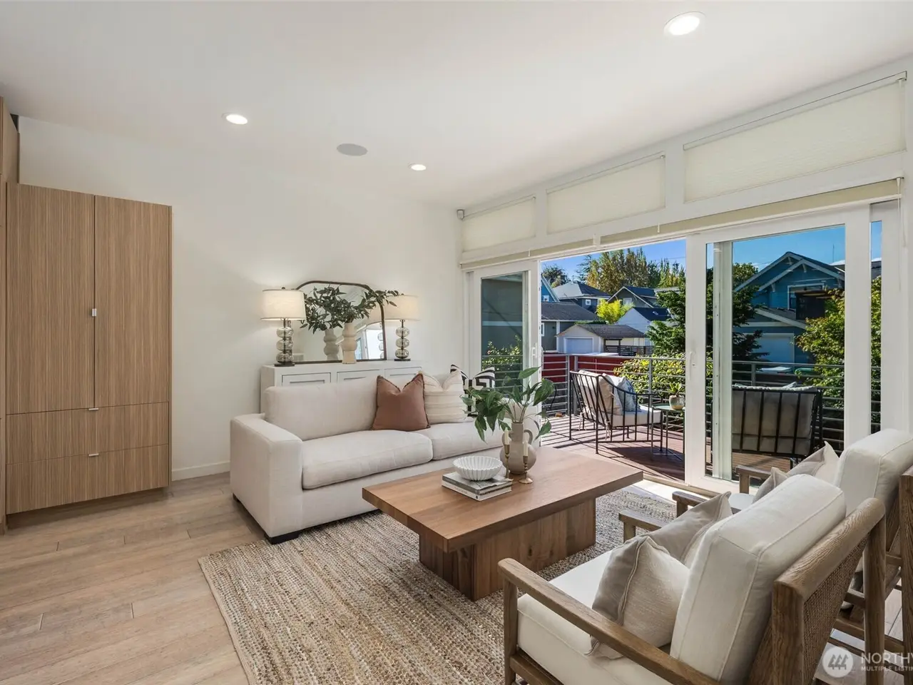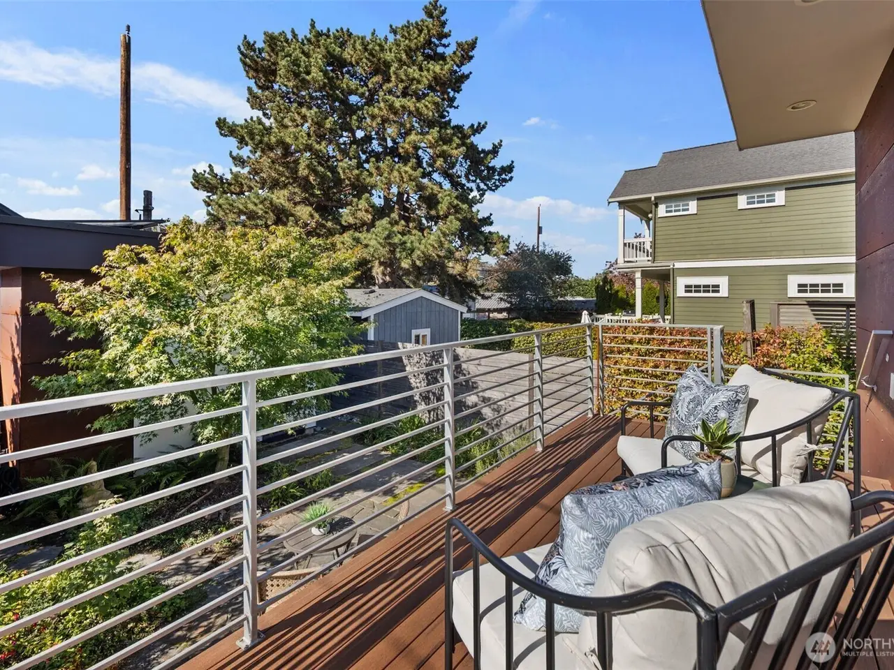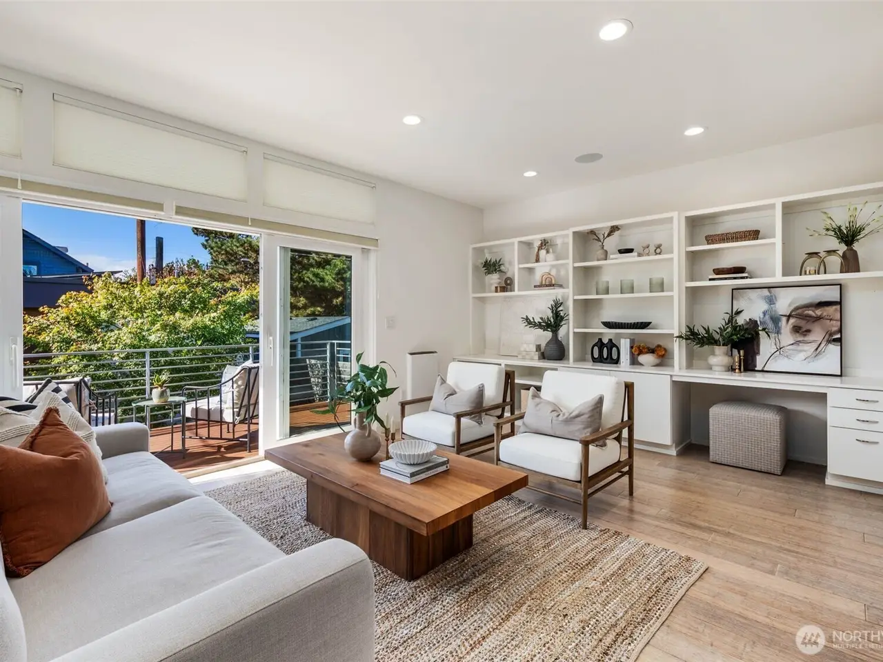 Modern industrial design meets prime top of Queen Anne living in this stunning home. The main floor boasts an open-concept great room with a beautiful gas fireplace, flowing seamlessly into a chef's kitchen with premium appliances and a striking 13ft island. A dining/family area opens to a west-facing deck, perfect for entertaining. Upstairs, the spacious primary suite features a spa-inspired bath, addt'l two bedrooms plus a full bath, and laundry. The daylight lower level offers a versatile media/playroom, two more bedrooms, and ¾ bath. Enjoy the mature native plant garden year round. Single car garage w EV ready wiring + 1 addt'l park space complete this rare find in one of Seattle's most sought-after neighborhoods.