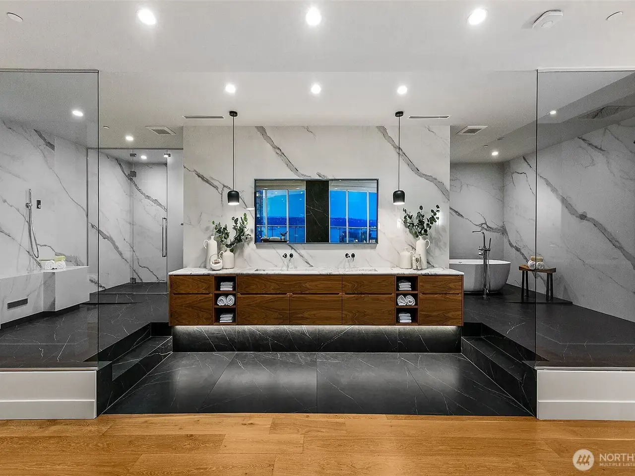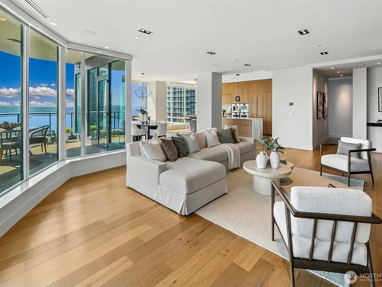 Welcome to the ultimate in luxury living - the Escala Penthouse. This newly redesigned 4,522 sq ft southwest corner masterpiece offers expansive, unobstructed views of the iconic Seattle skyline, Elliott Bay, and the majestic Olympic Mountains. With 4 parking spaces, 2 private vestibules ensures ultimate privacy and security- your own elevator opens directly into this elegant sanctuary. 2 storage units, 3 Bedrooms, 3.5 bath, laundry room, library, 2 terraces, 500 sqft & 220 sqft - bbq, fire tables allowed -this is truly a one-of-a-kind residence. Exclusive State-of-the-Art Kitchen,Expansive Living Areas,Fully Automated Lutron Lighting & Shading: Enjoy a perfect ambiance with the touch of a button. Every detail has been carefully curated.
