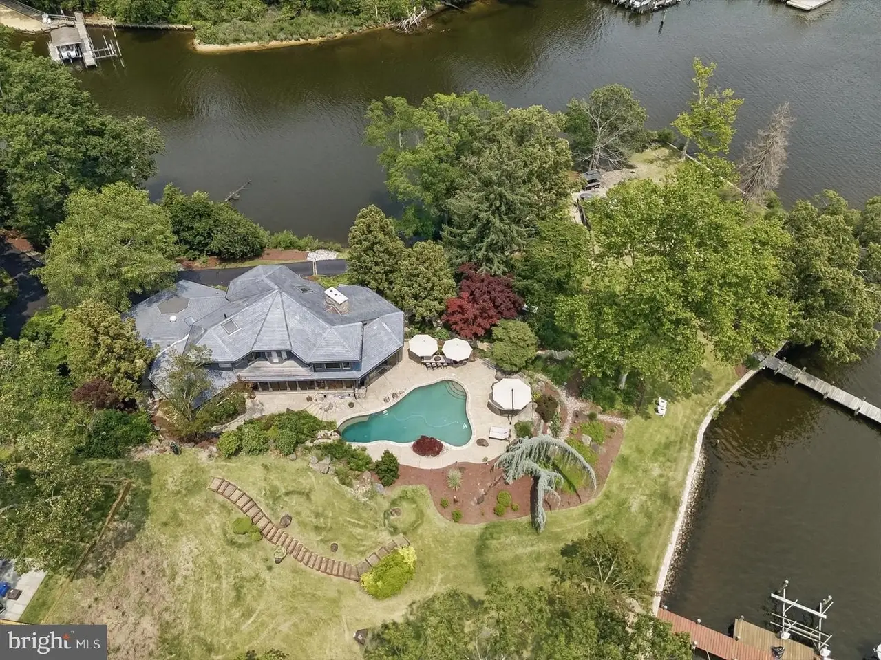 This Severna Park home is a rare find and presents a luxurious waterfront retreat with 109 feet of frontage on the desirable Severn River, featuring deep water (8+ feet) ideal for sail and power boating and the pier equipped with electric and water. The contemporary, multi-level home spans almost 6000 square feet, 6+ bedrooms, 5.5 bathrooms, boasting soaring ceilings, gourmet kitchen, floor-to-ceiling windows, and expansive water views from both inside and out. The interior includes 2 stone wood-burning fireplaces, a luxury master suite, and a large private den/library perfect for a quiet home office. With ample space to accommodate an in-law or au pair suite, this home offers versatility and comfort. Outdoor amenities include a swimming pool with waterfalls, a hot tub overlooking the water and western exposure for stunning sunsets. Located in highly sought-after Severna Park, this home nestled in a serene setting has so many features and an opportunity you don't want to miss!