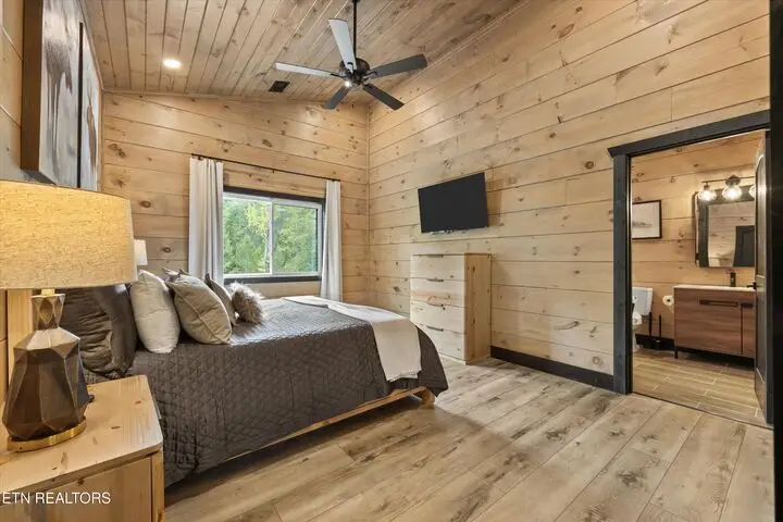 Discover your perfect creek side mountain retreat. Stunning two-story Modern new construction home. Located just moments from the parkway, this property offers convenient access to Sevierville, Pigeon Forge, Gatlinburg, and the world-renowned Dollywood, making it ideal for both full-time living and vacation getaways. Key Features: •Spacious Living: 4,350 Sq' 4 well-appointed bedrooms and 4 full bathrooms provide ample space and comfort for family and guests. . Comfortable accommodations: the home is designed to sleep 16 to 18 guests comfortably perfect for large families or vacation rental. •Entertainment Paradise: Enjoy movie nights in your private theater room, perfect for creating unforgettable experiences. An indoor pool allows for year round enjoyment. •Chef's Dream Kitchen: An oversized kitchen with modern appliances and abundant counter space ensures cooking and entertaining are a joy. •Cozy Ambiance: Gather around the inviting fireplace that serves as the focal point of the main living area. •Natural Beauty: A serene creek borders the subdivision, offering a peaceful outdoor experience and beautiful views and walking trails. •Low Maintenance: Built with durable hand hewn looking concrete siding. This home ensures easy upkeep for years to come. This property seamlessly combines luxury, convenience, and natural beauty. Don't miss this opportunity to make it your own and enjoy all that the Smoky Mountain area has to offer!